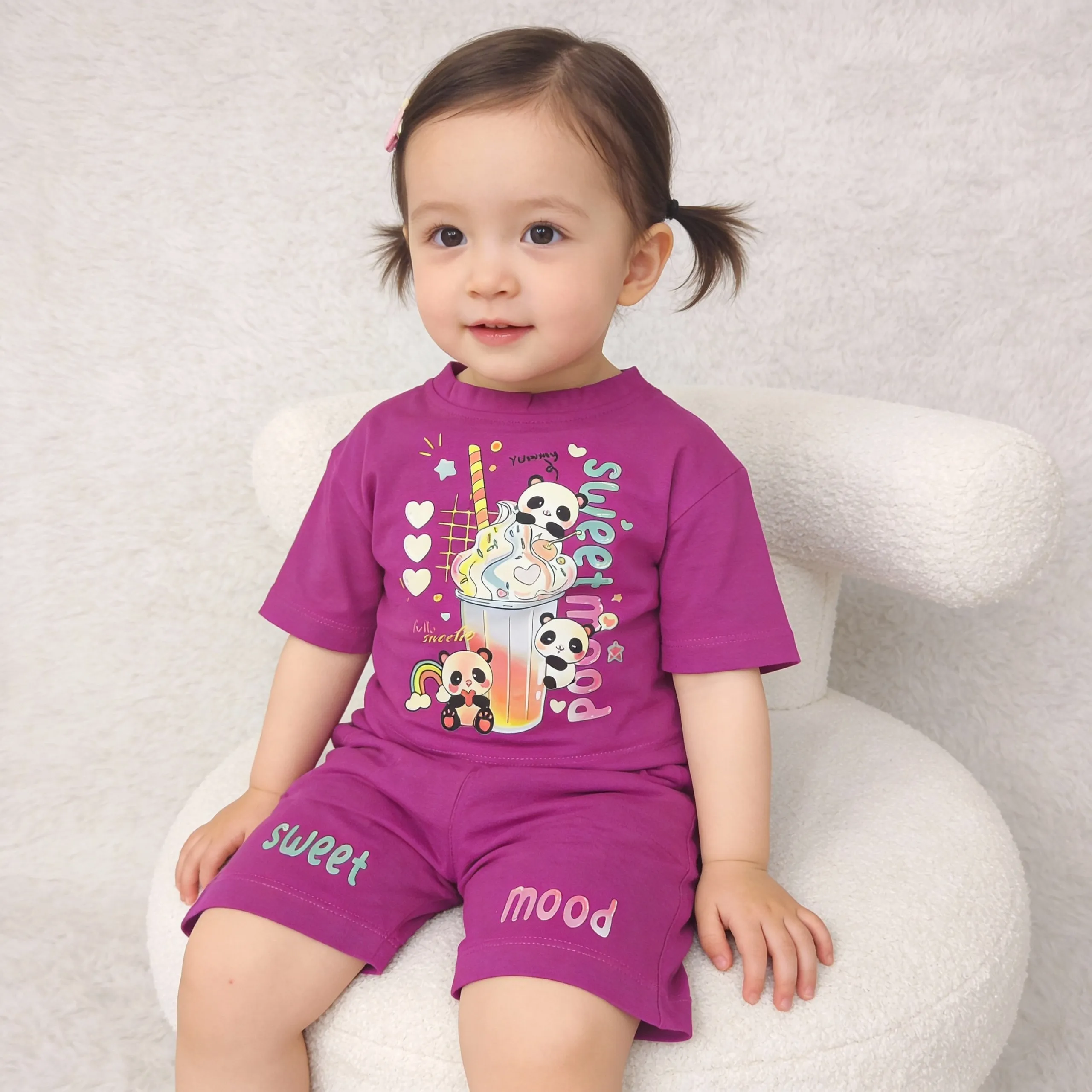تیشرت و شورتک طرح پاندا دخترانه پنبه سوپر مناسب 1 تا 3 سال
