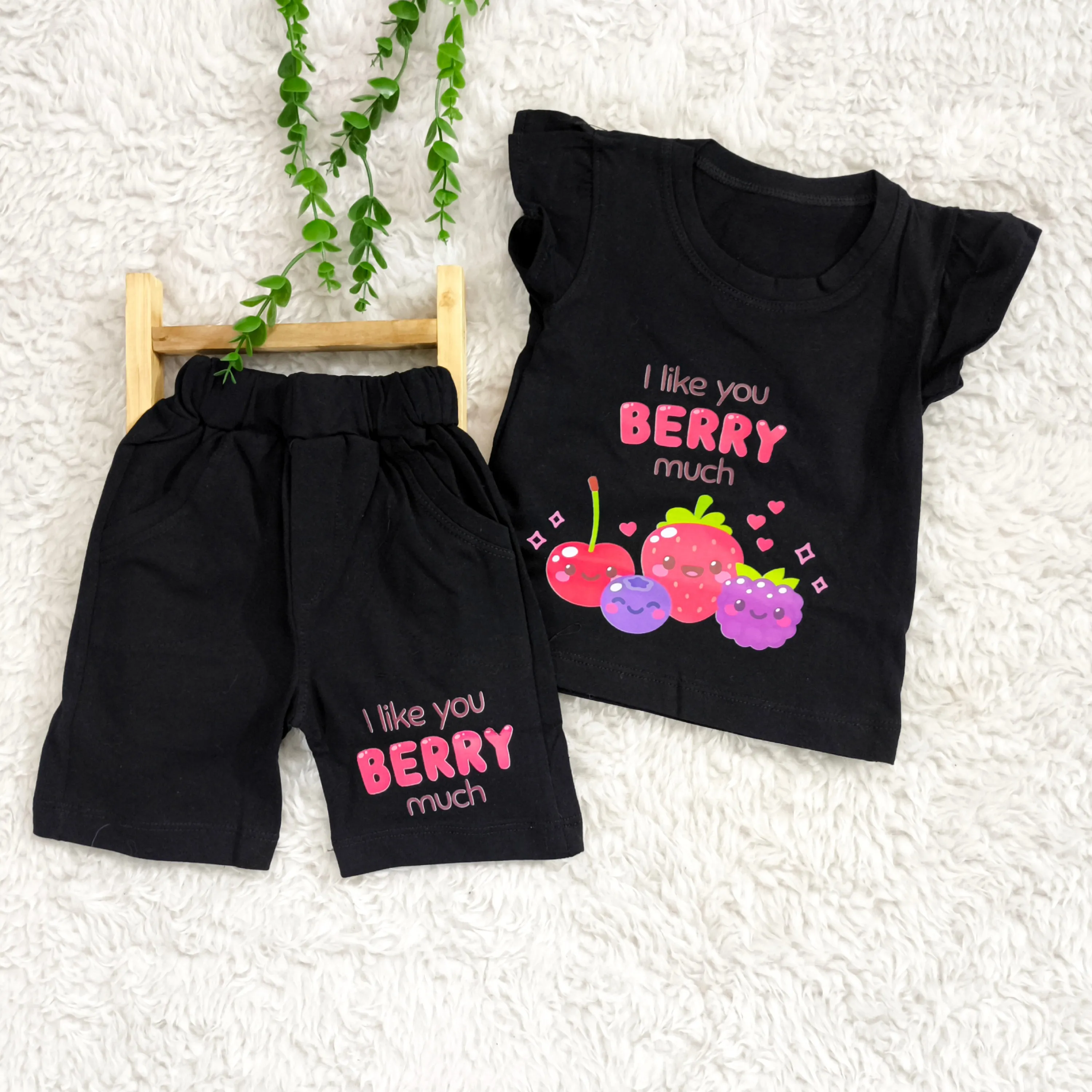 ست تاپ و شلوارک بچگانه طرح بری مشکی پنبه سوپر