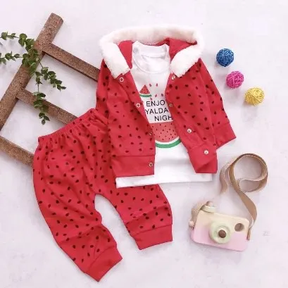 ست سه تیکه سوییشرت و تیشرت و شلوار طرح یلدا هندوانه ای نوزادی دخترانه پسرانه