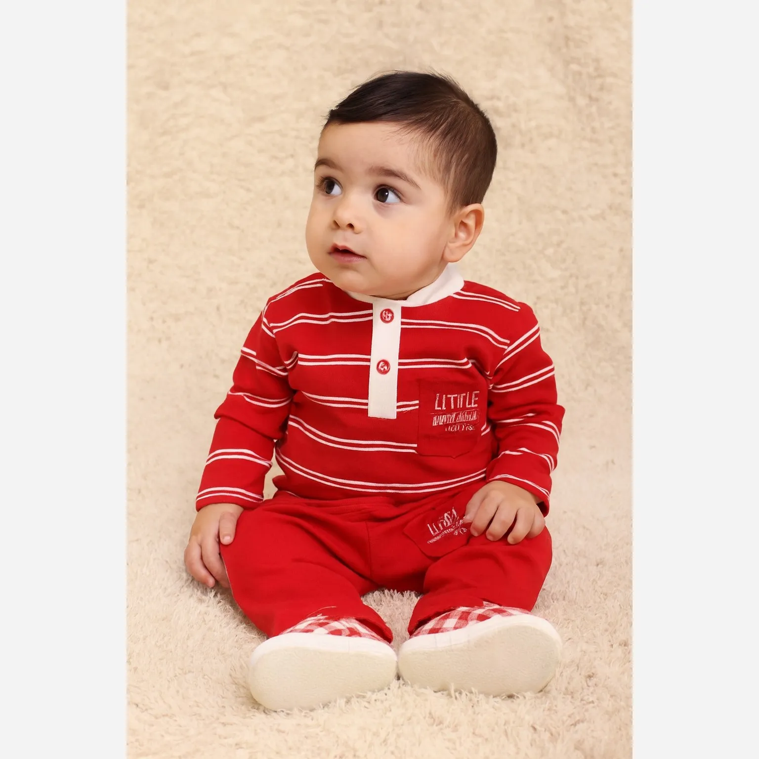 بلوز شلوار پسرانه طرح دار نخی یلدایی مناسب 3 ماه تا 3 سال