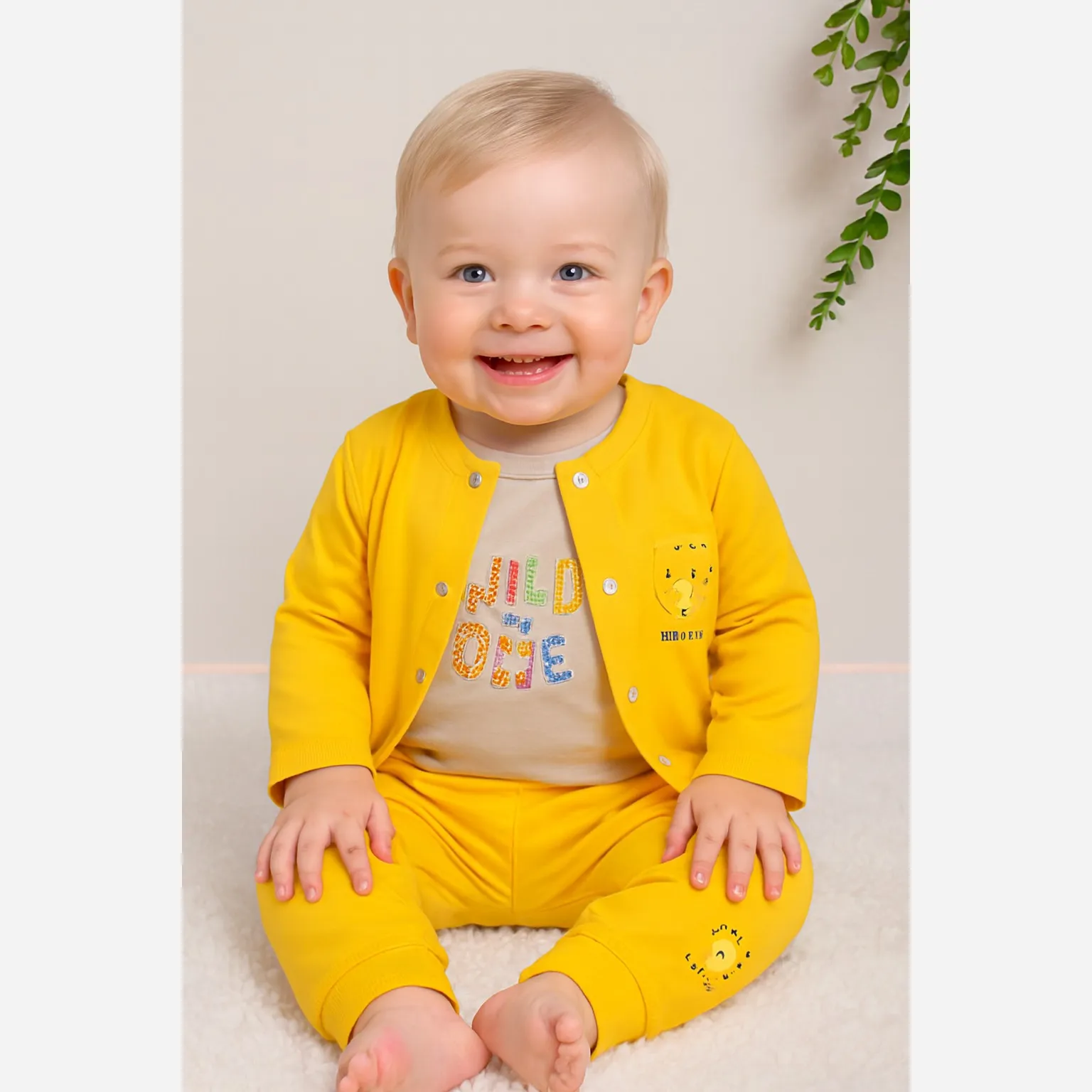 ست بلوز شلوار و کلاه نوزادی طرح Good Morning جنس پنبه بیسکوئیتی با کیفیت