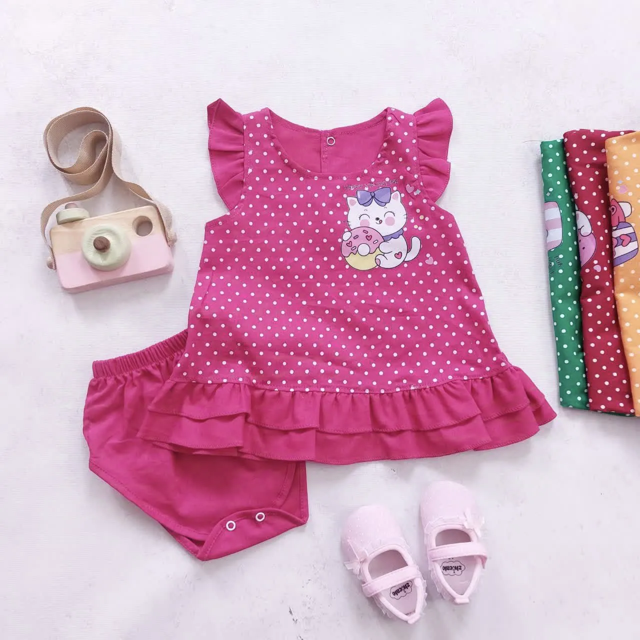 ست سارافون و شورت دخترانه طرح گربه خالدار نخی خنک