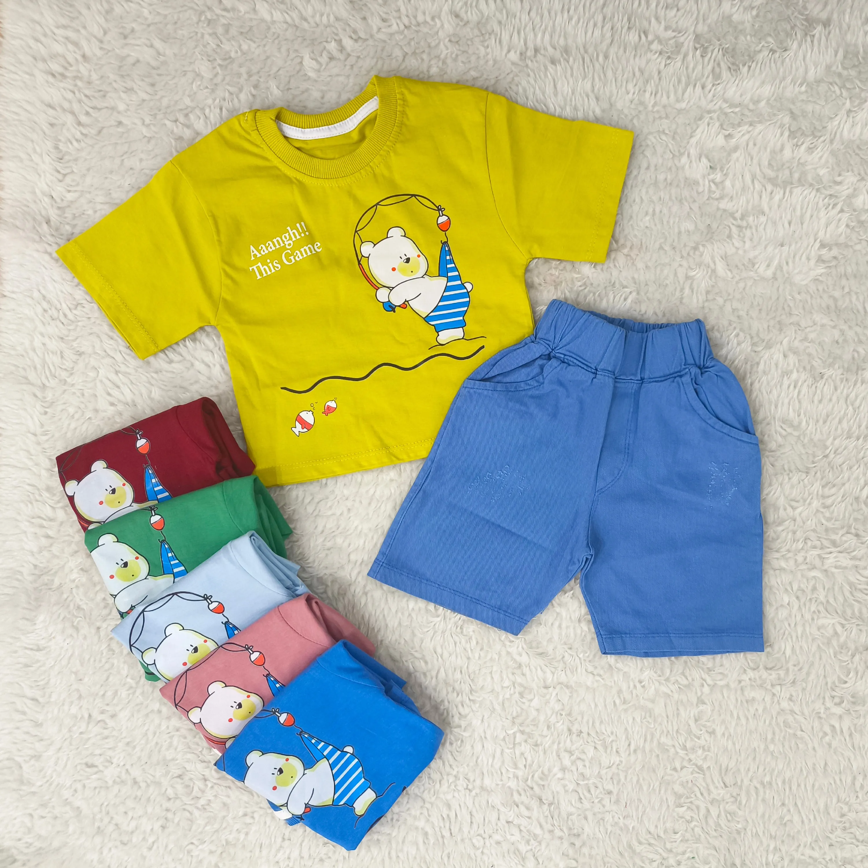 ست تیشرت و شورت پسرانه طرح خرس ماهیگیر | لباس راحتی کودک | پنبه سوپر و کتان