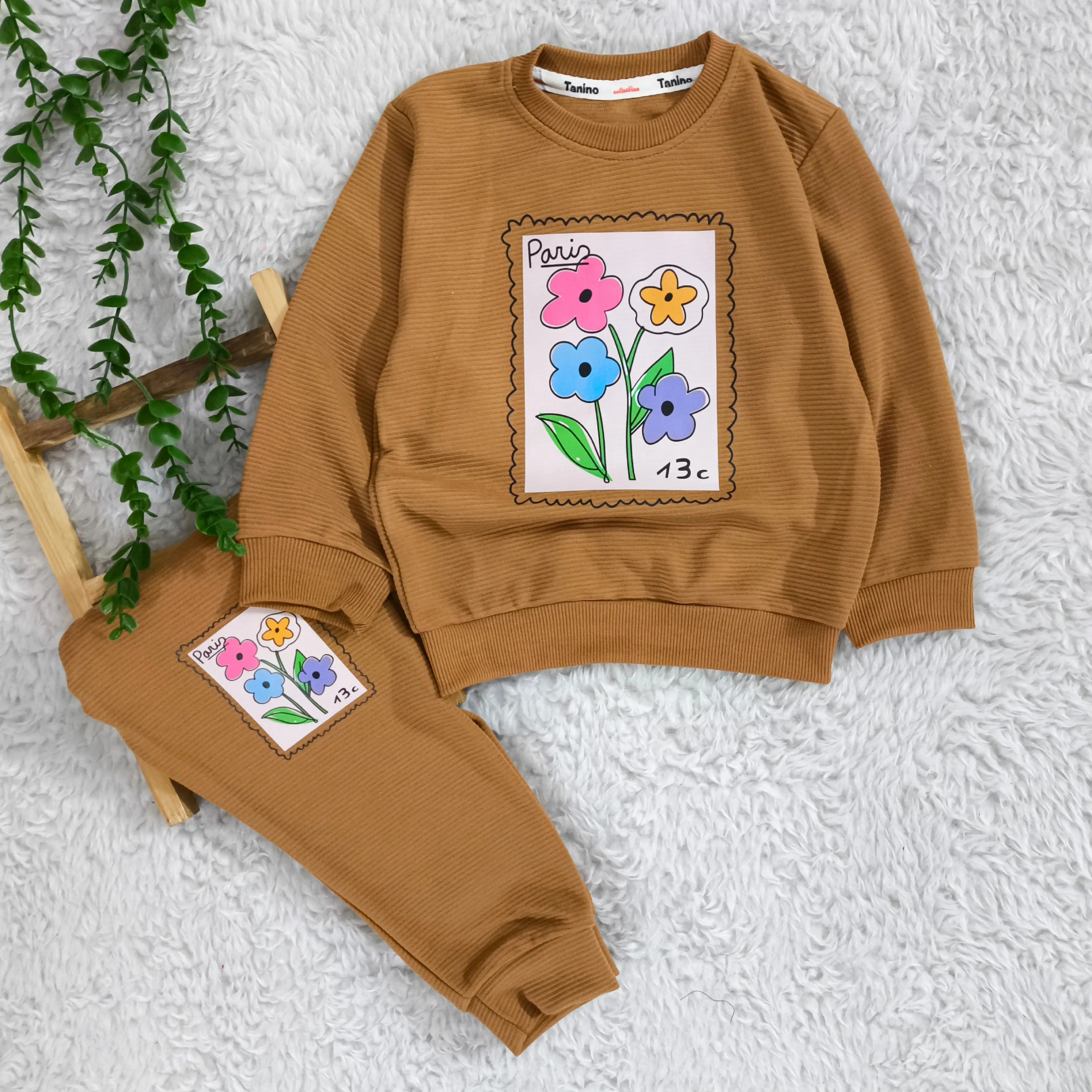 بلوز شلوار دخترانه طرح گل پاریس جنس پنبه نرم و لطیف مناسب 2 تا 4 سال