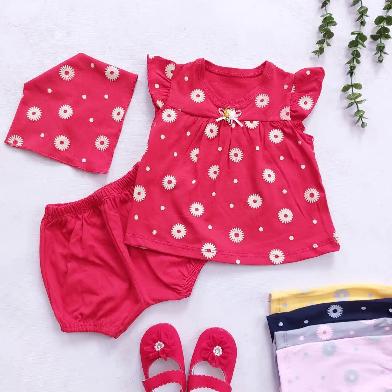 ست بلوز شورت و هدبند نوزادی طرح بابونه | لباس راحتی دخترانه پنبه ای