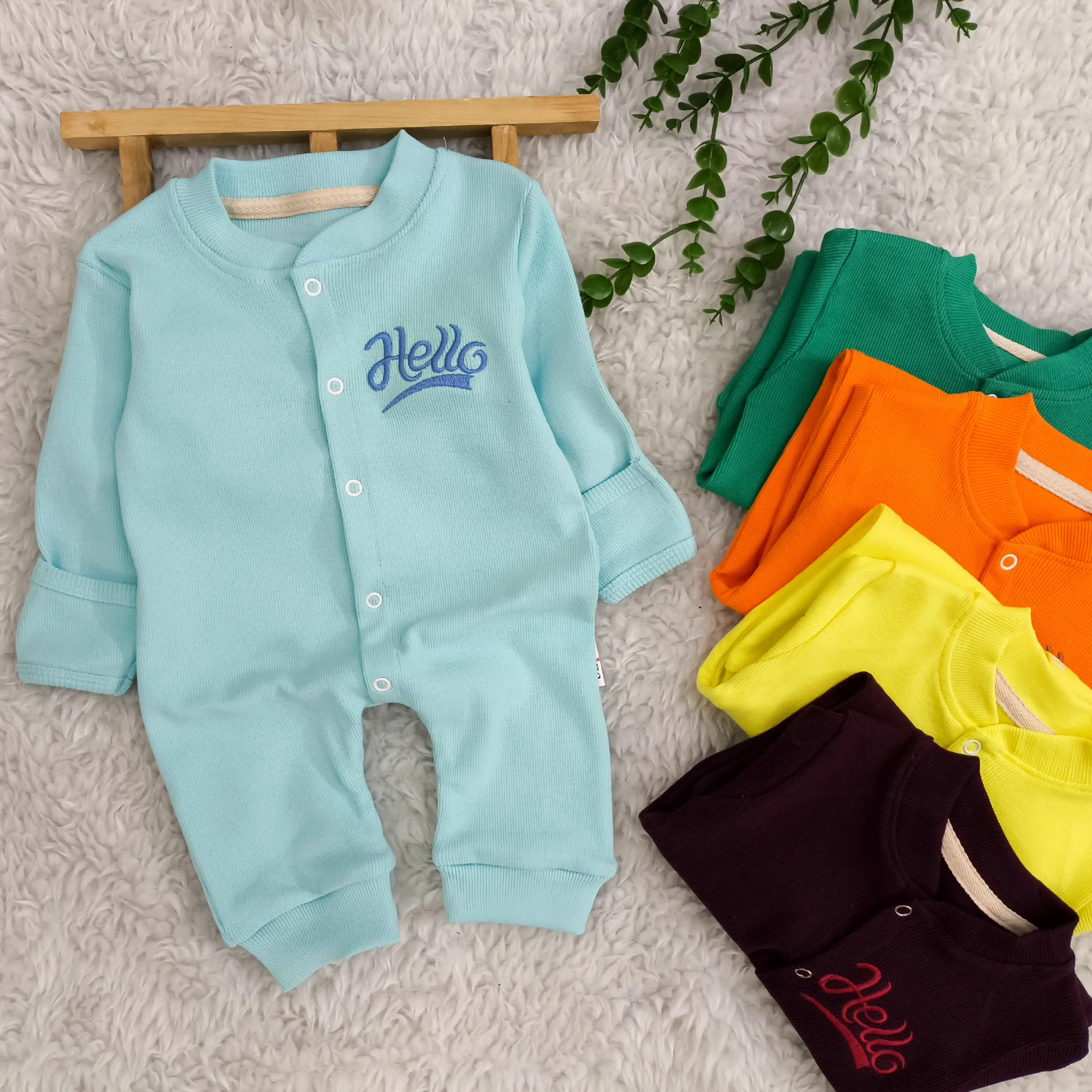 سرهمی کبریتی نوزاد Hello، جنس پنبه، دستکش دار، سایز 3 تا 9 ماه