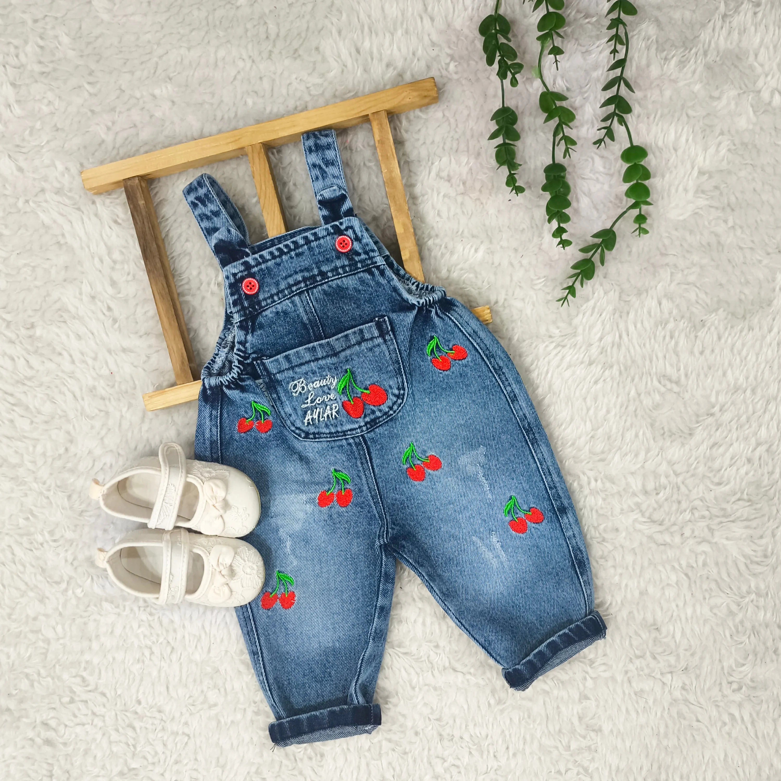 بیلر جین گلدوزی آلبالو نوزادی دخترانه عیدانه پیشبندی لی