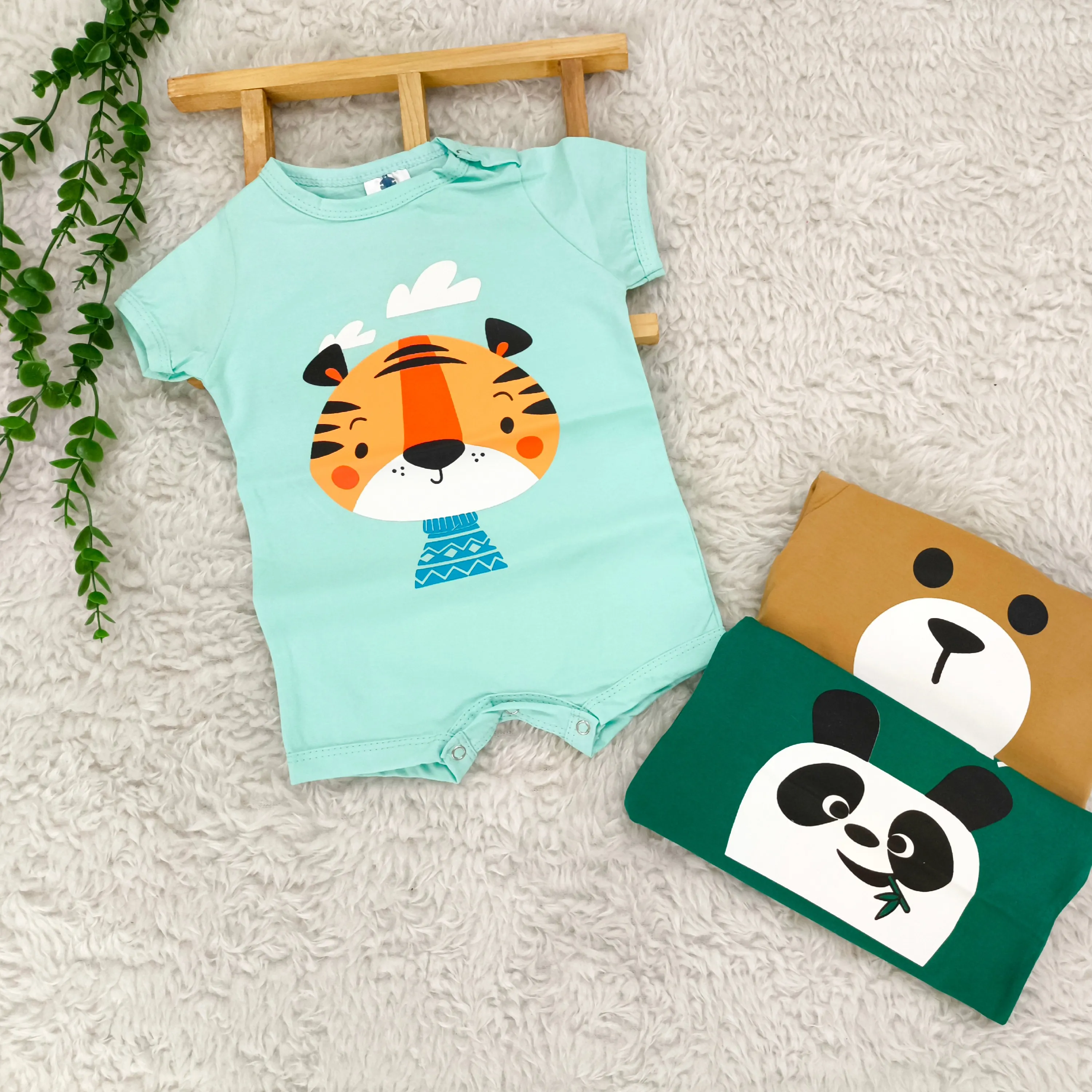 رامپر نوزادی آستین کوتاه طرح حیوانات بامزه | جنس پنبه اعلا | مناسب 6 تا 36 ماه