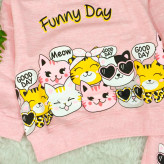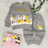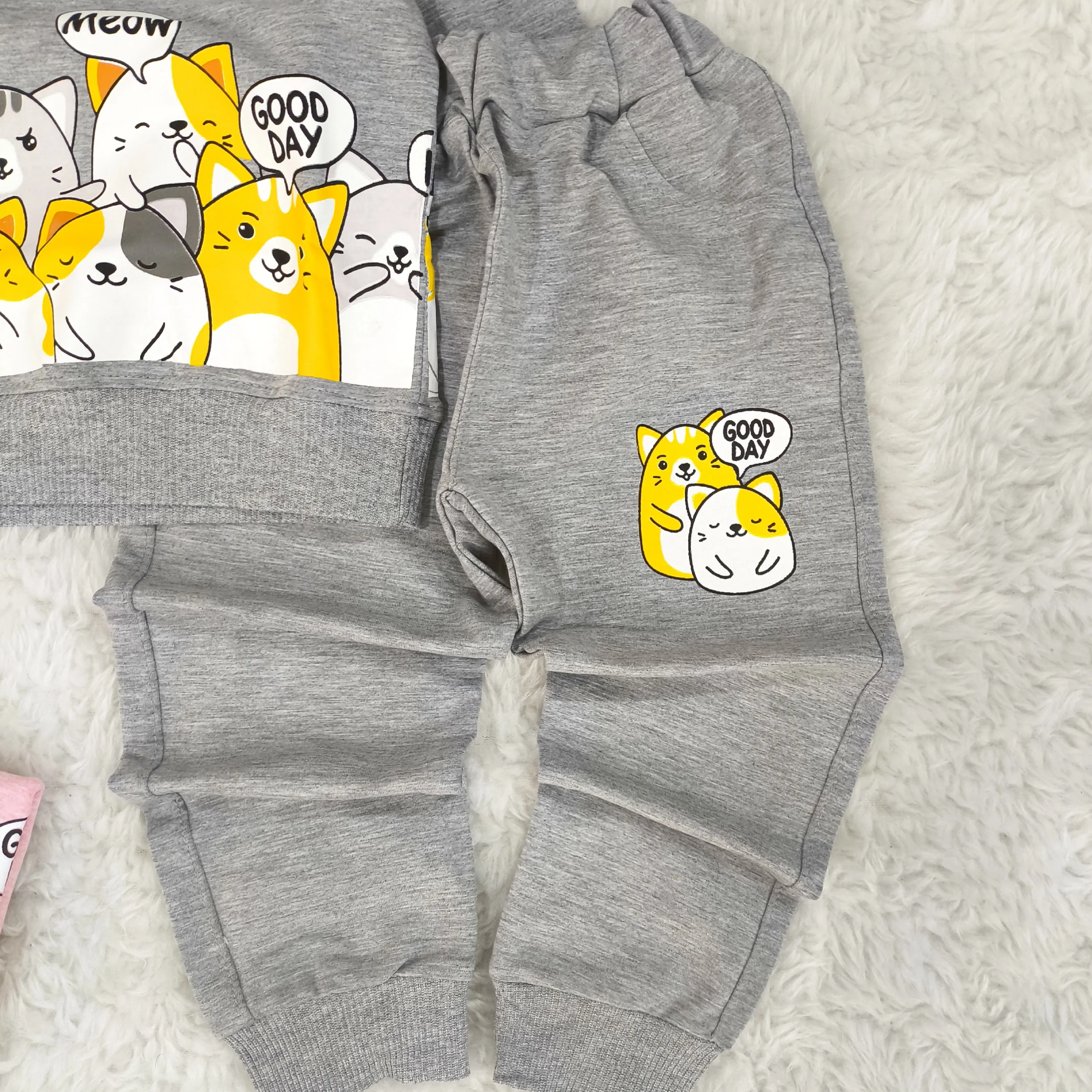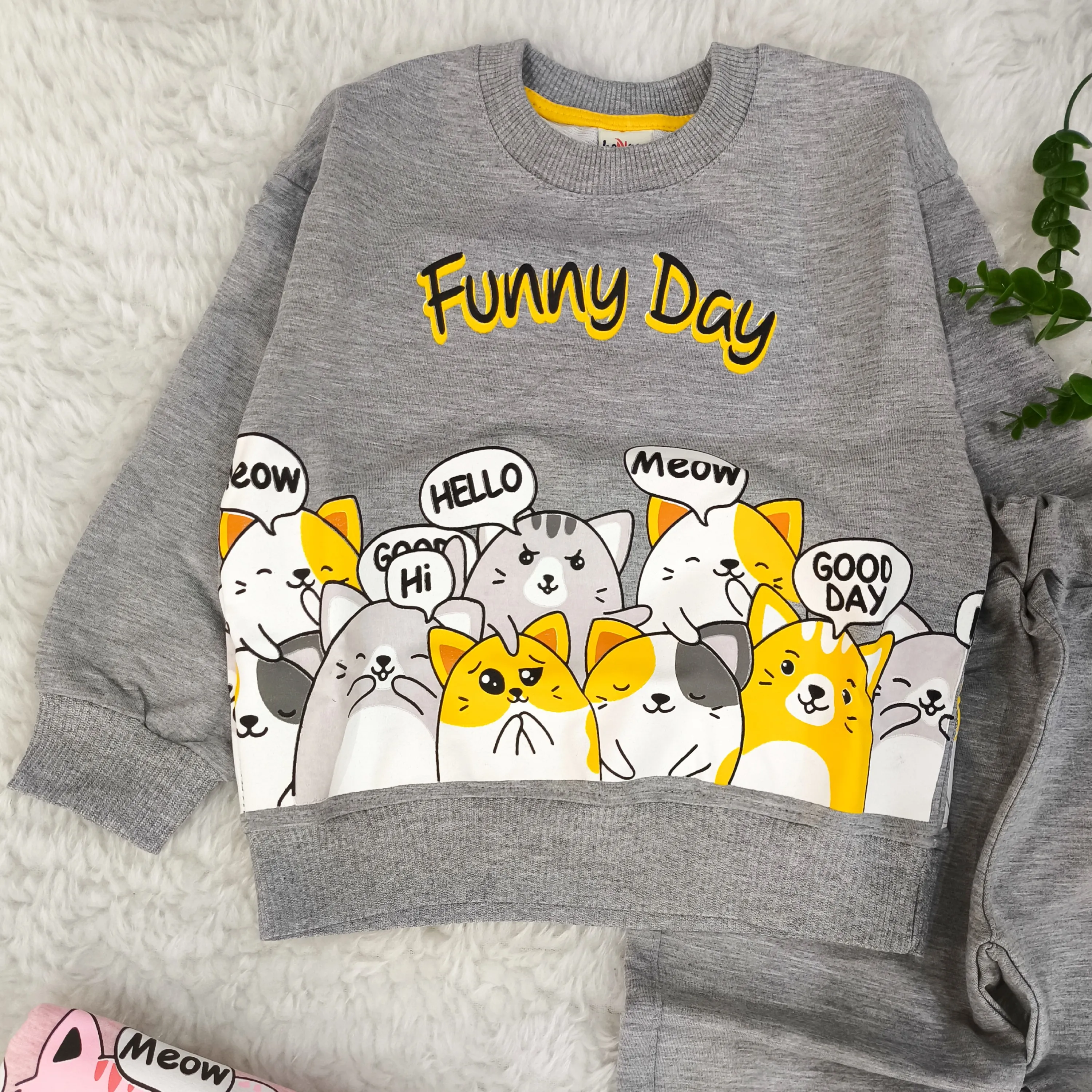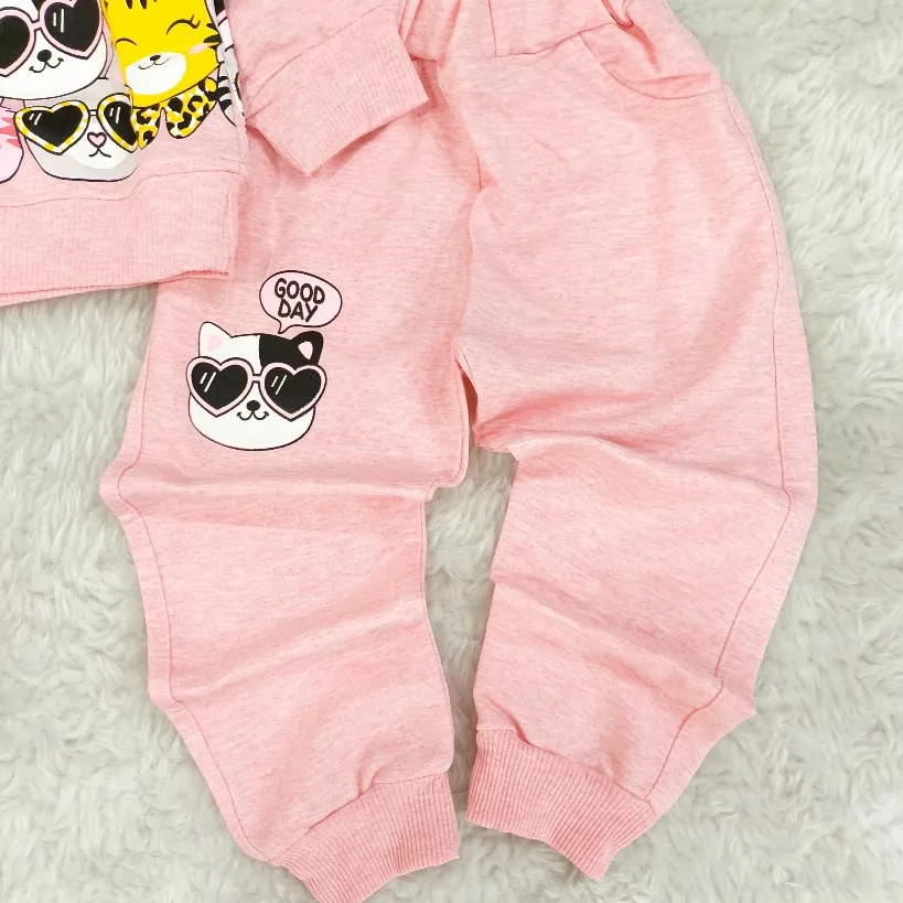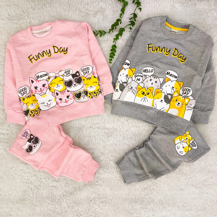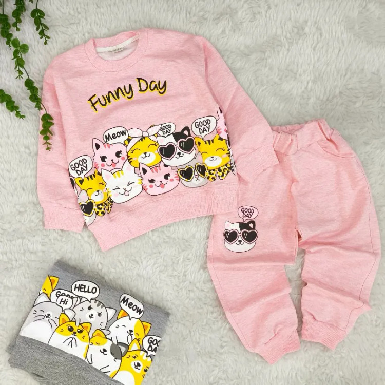 ست بلوز شلوار دخترانه گربه ملانژ با طرح فانتزی و جذاب مناسب 2 تا 4 سال