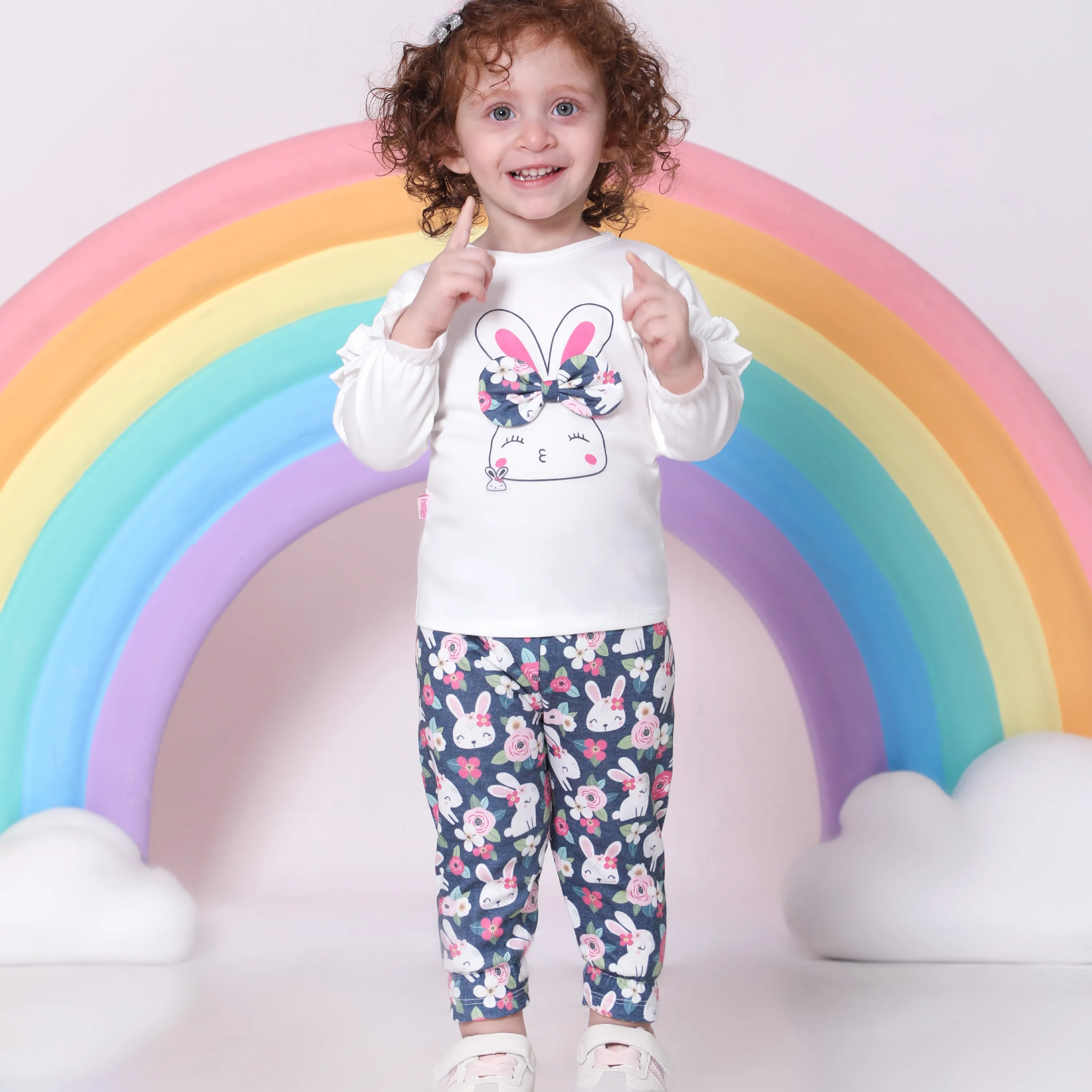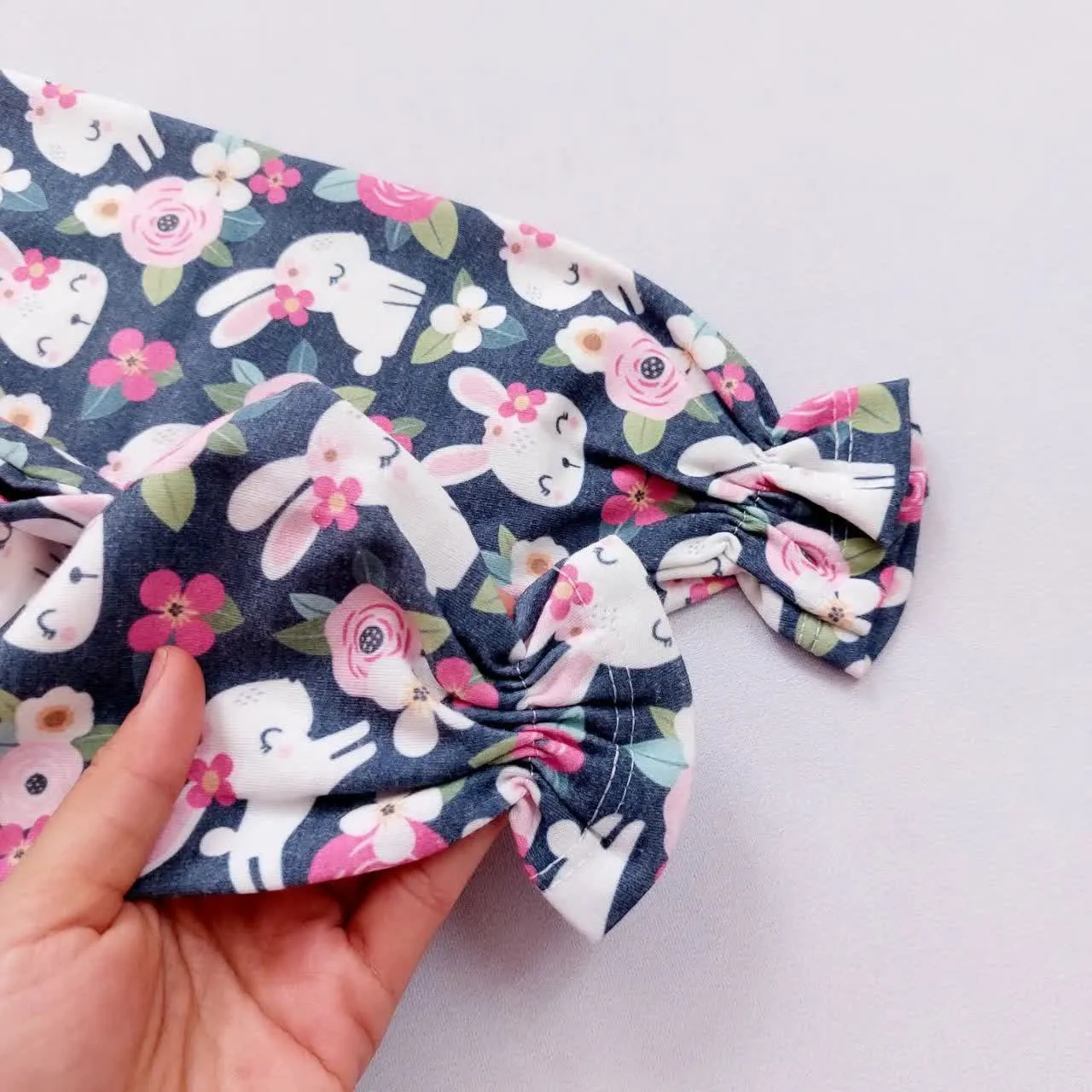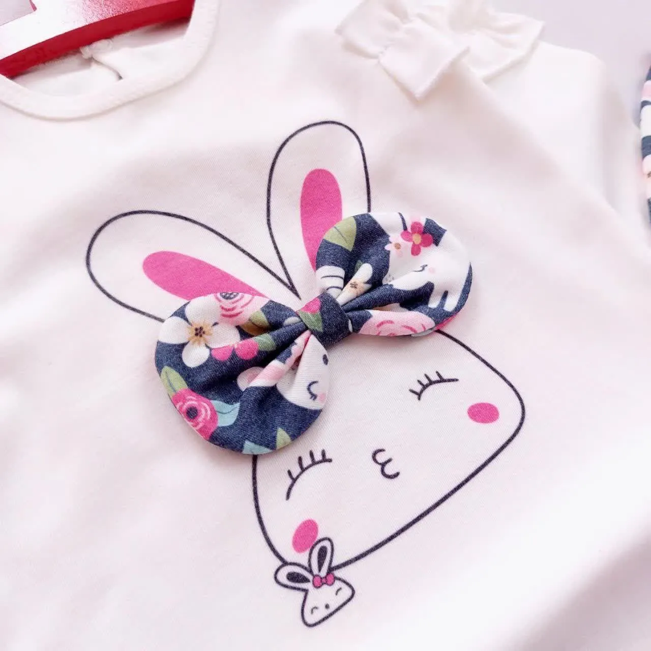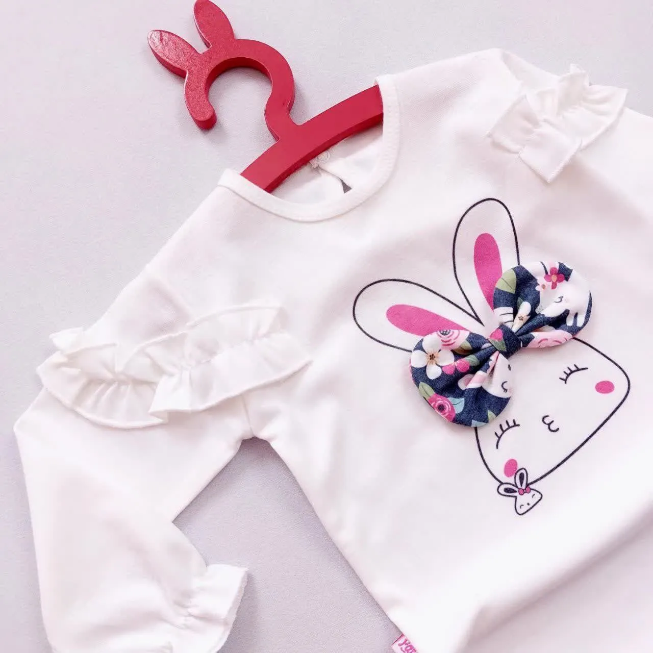**بلوز شلوار دخترانه طرح خرگوش پاپیونی آستین چین دار جنس پنبه لطیف**