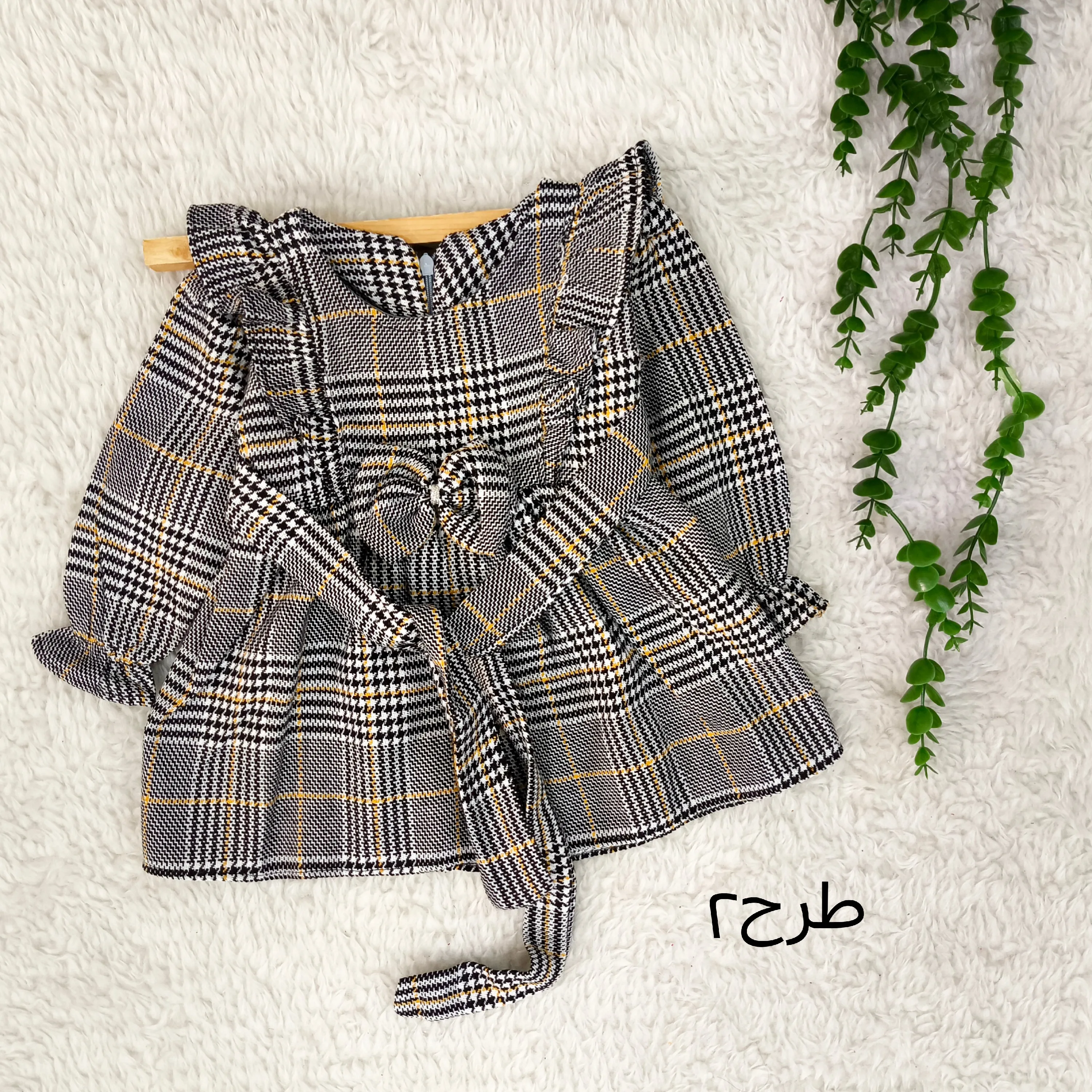 **پیراهن کشمیر چهارخانه دخترانه پاپیونی (مناسب 1 تا 4 سال)**