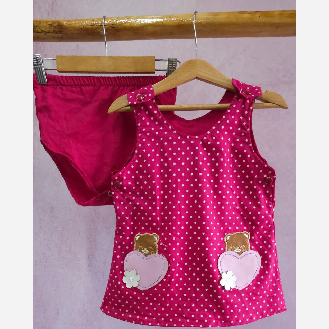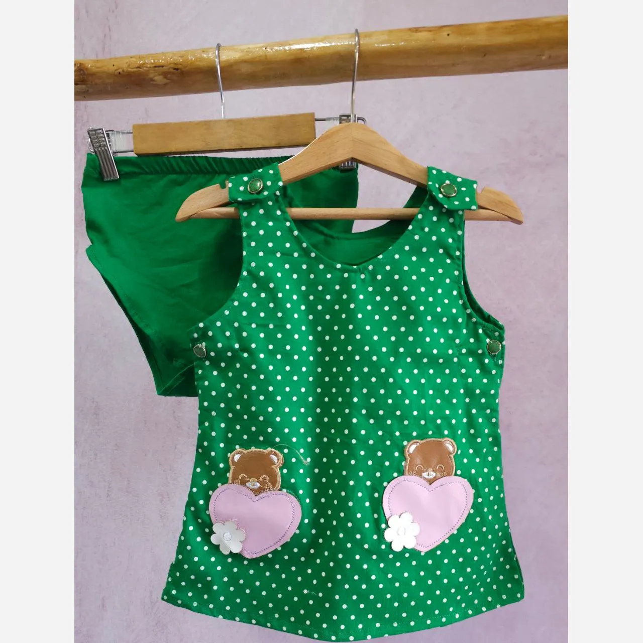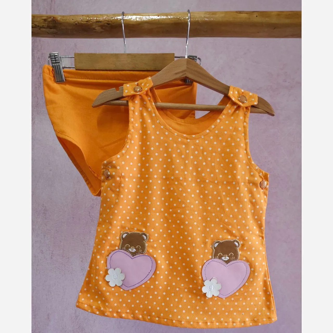 **ست سارافون و شورت نوزادی دخترانه طرح خرس و قلب: راحتی و زیبایی در تابستان**