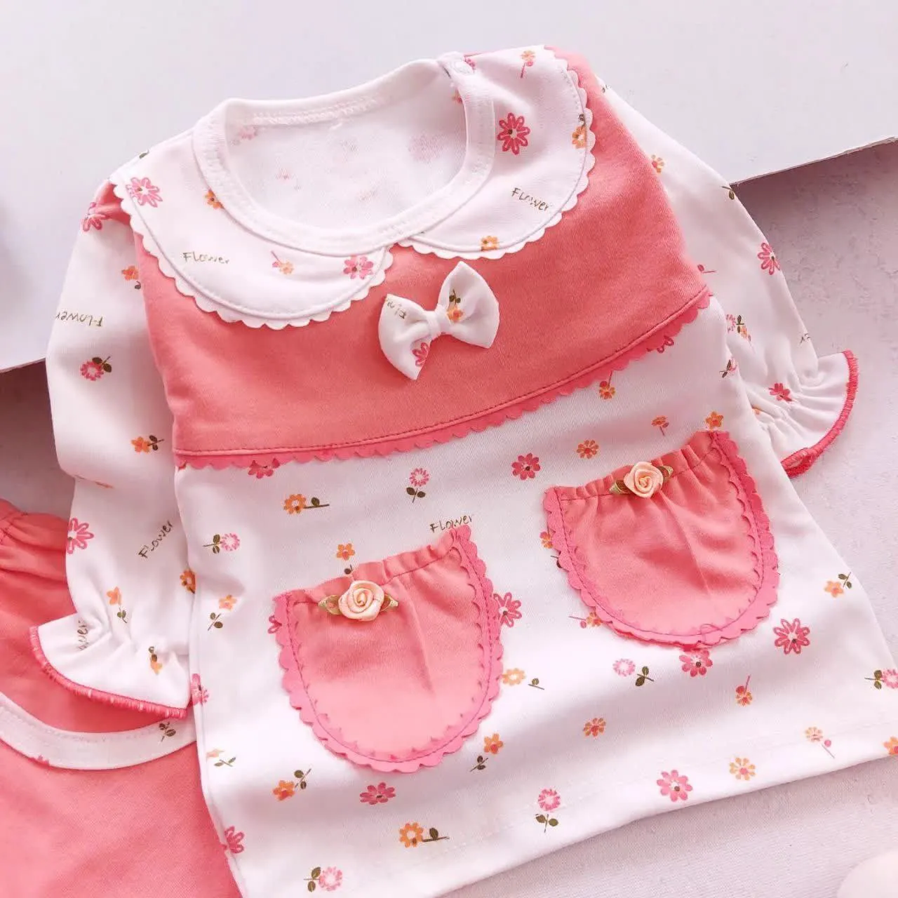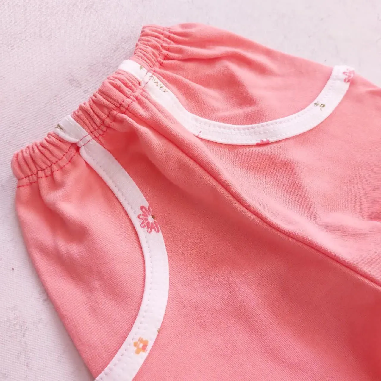 **بلوز شلوار دخترانه نخی گلبهی طرحدار - راحتی و زیبایی برای دلبند شما**