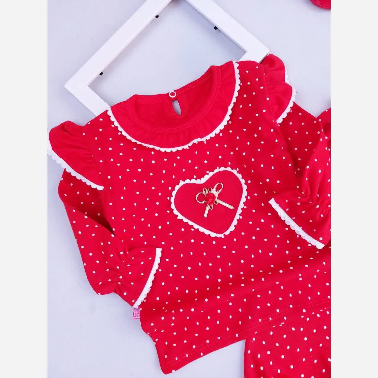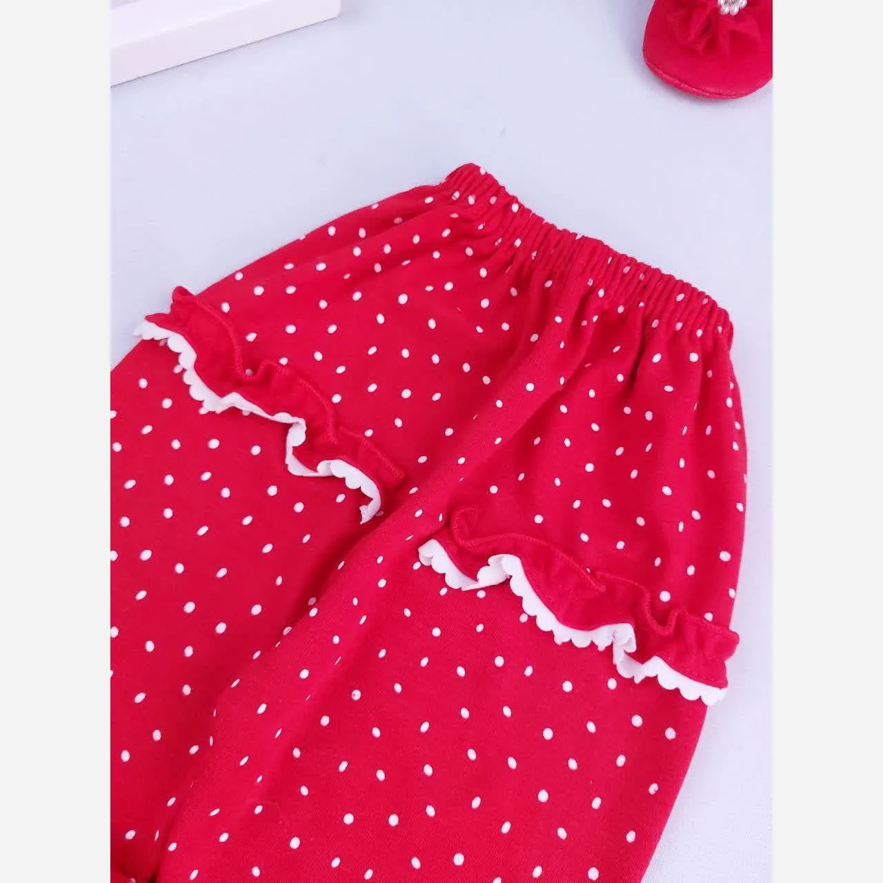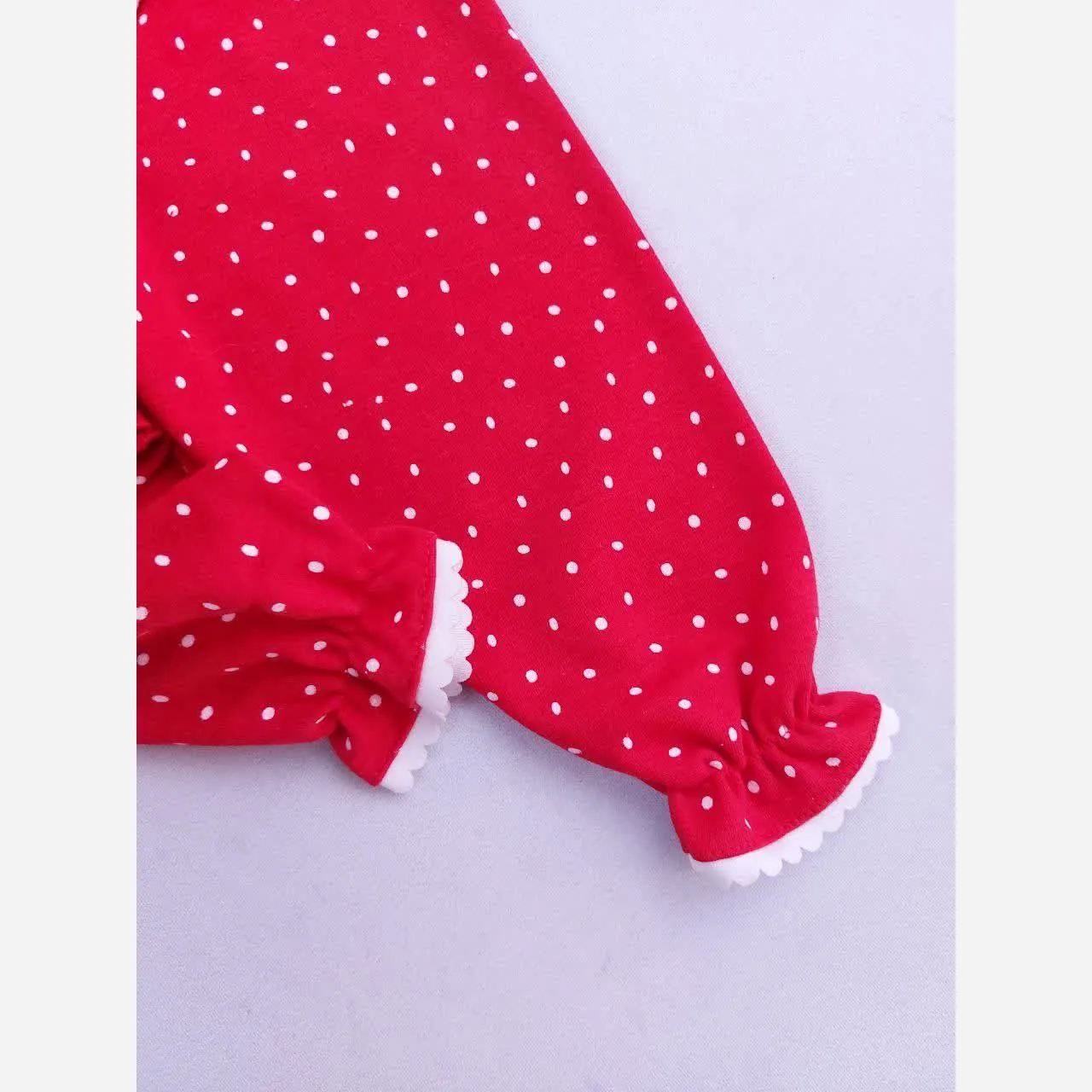 **بلوز شلوار نوزادی دخترانه طرح خالدار قرمز یلدایی - راحتی و زیبایی برای کوچولوهای شما**