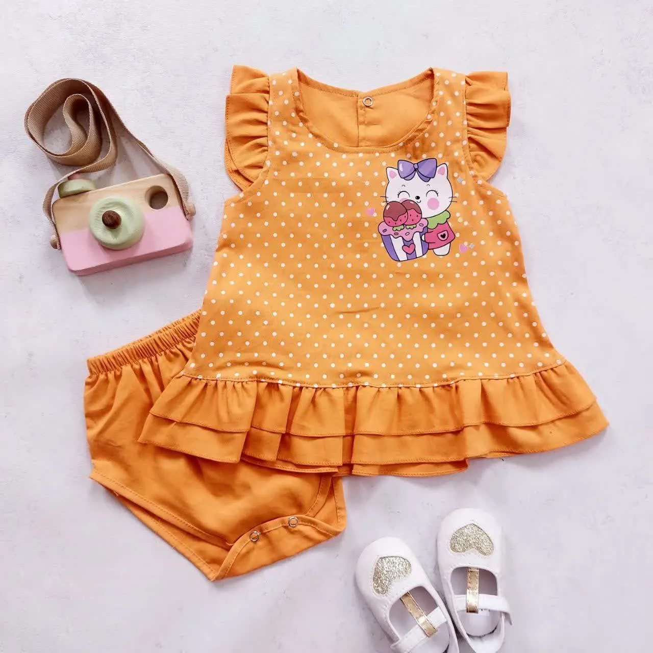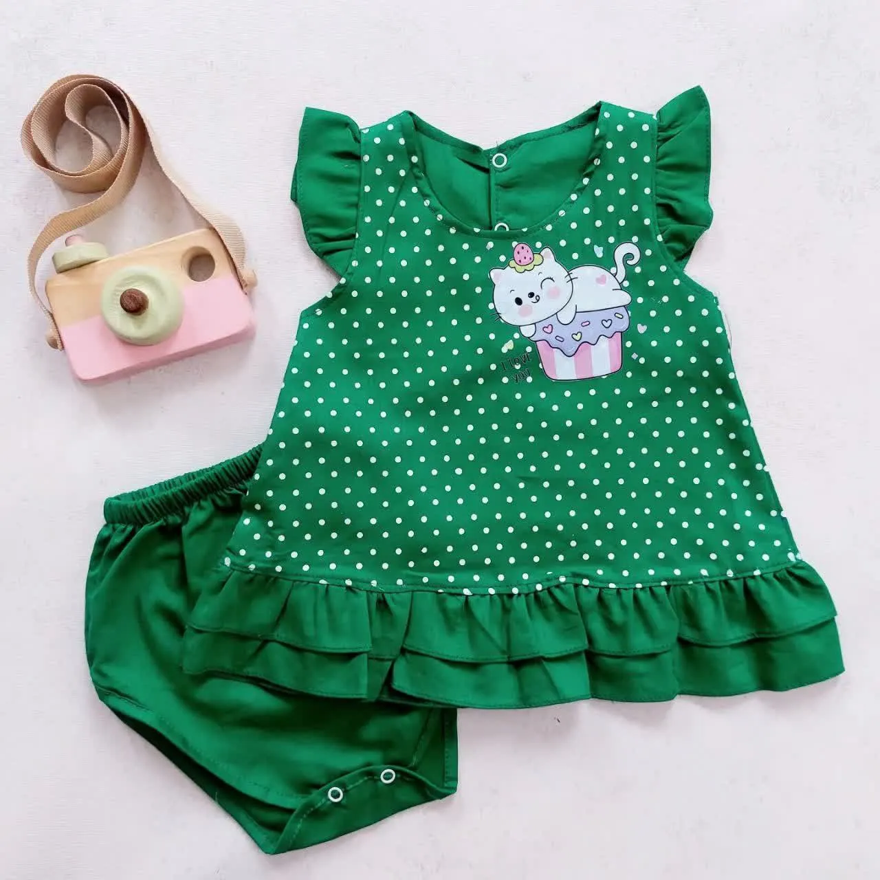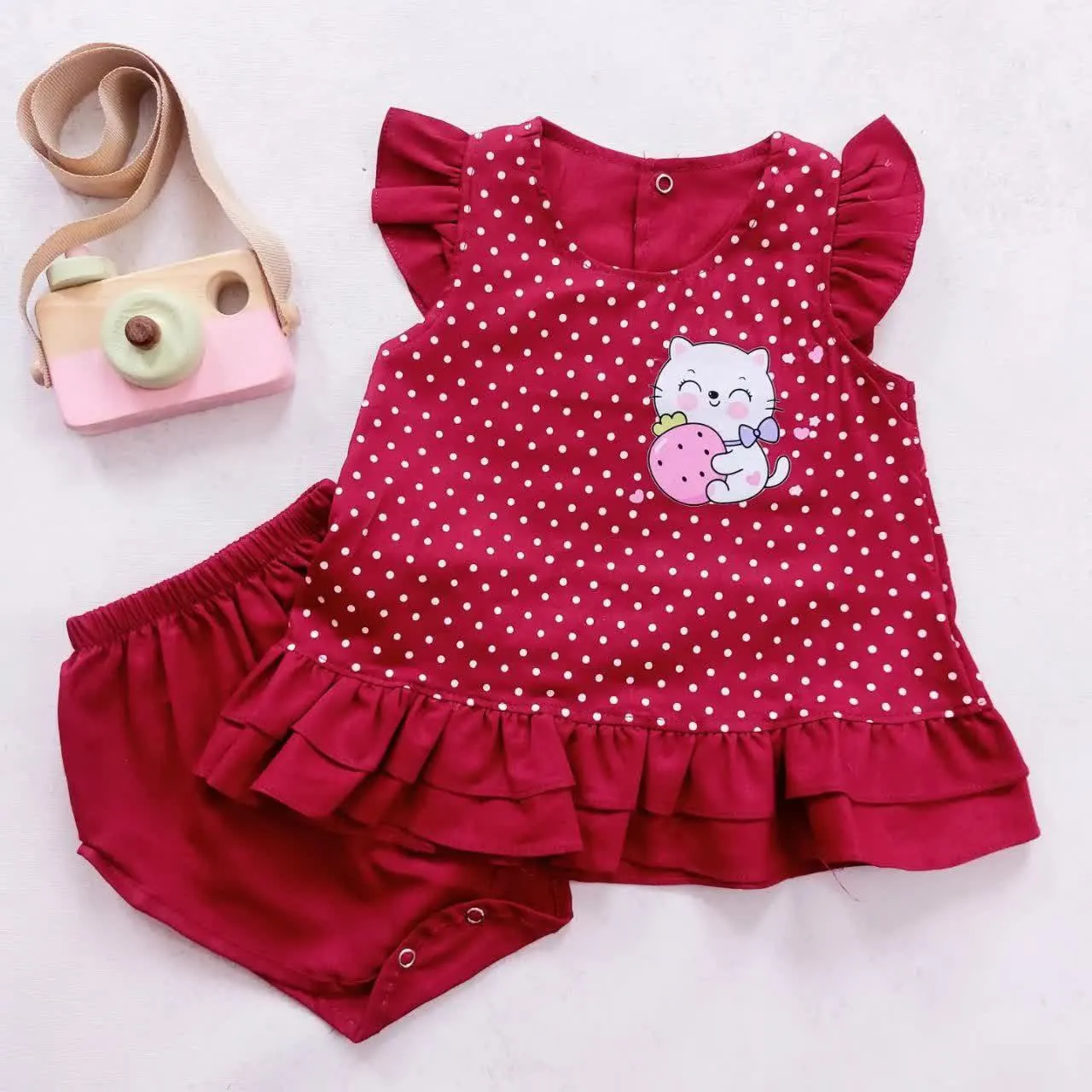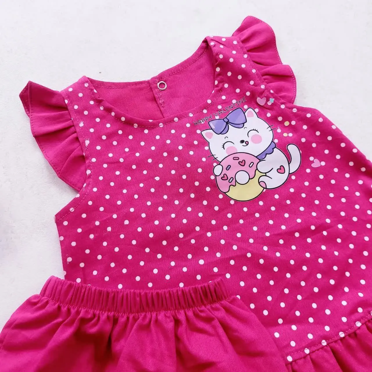 **ست سارافون و شورت دخترانه طرح گربه خالدار نخی خنک**