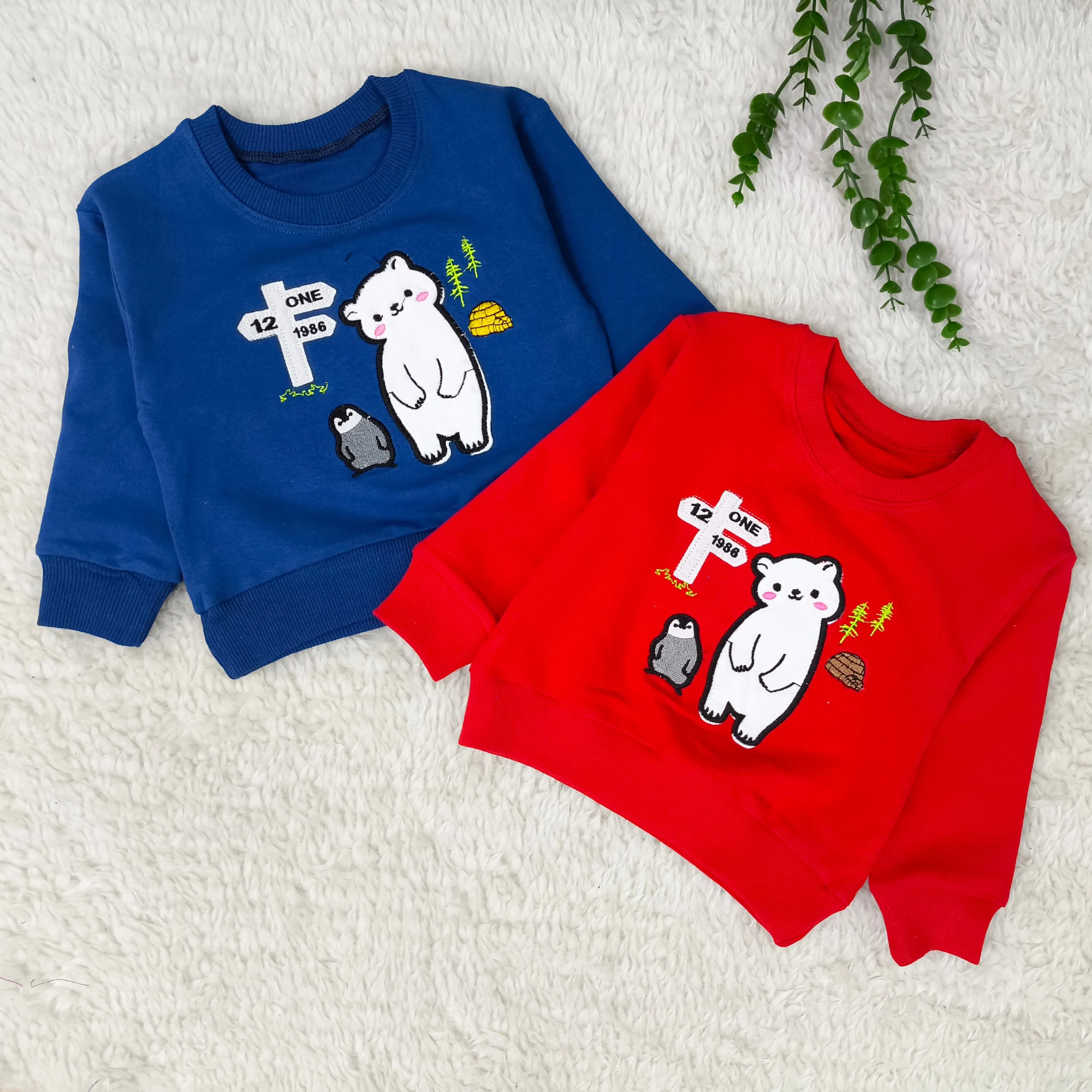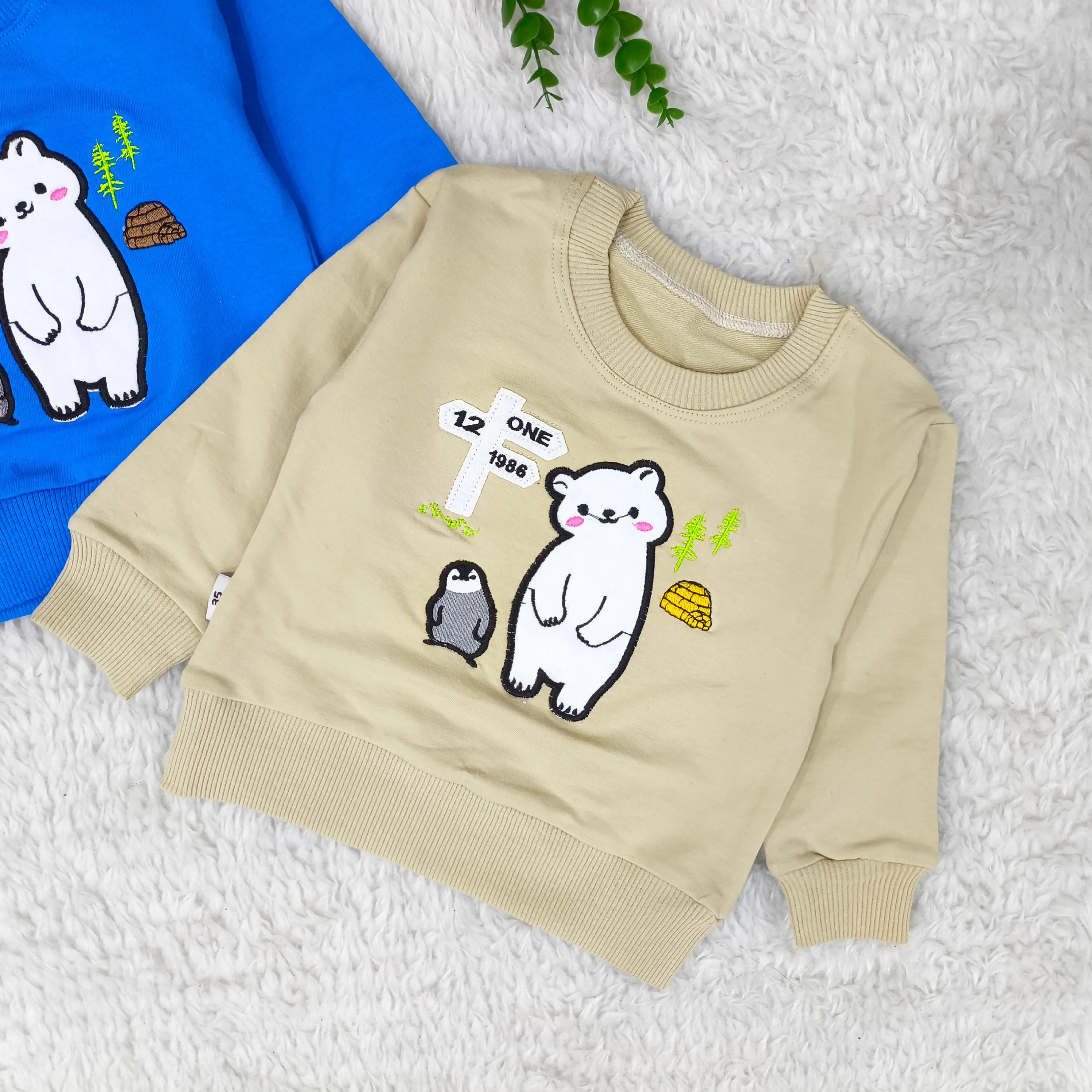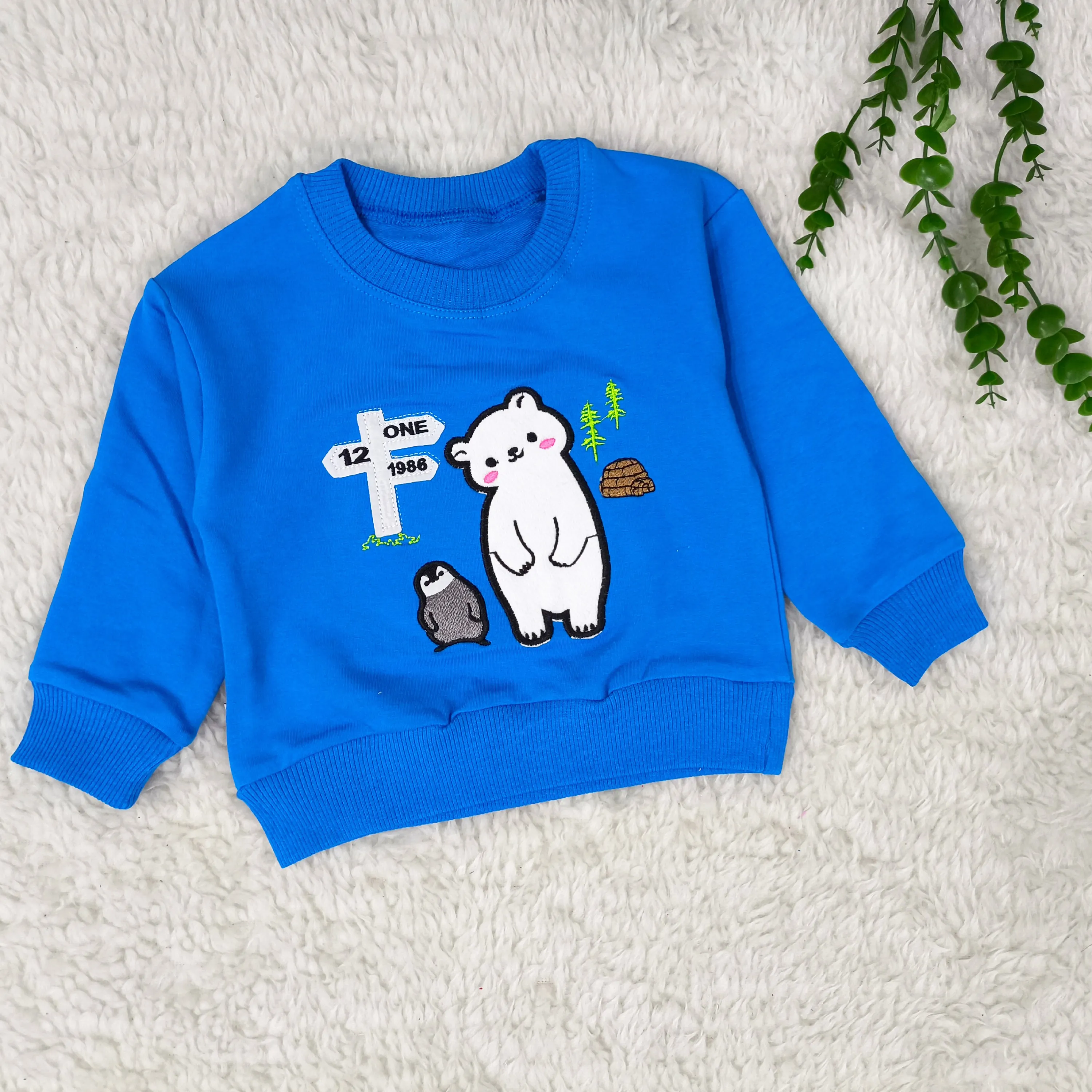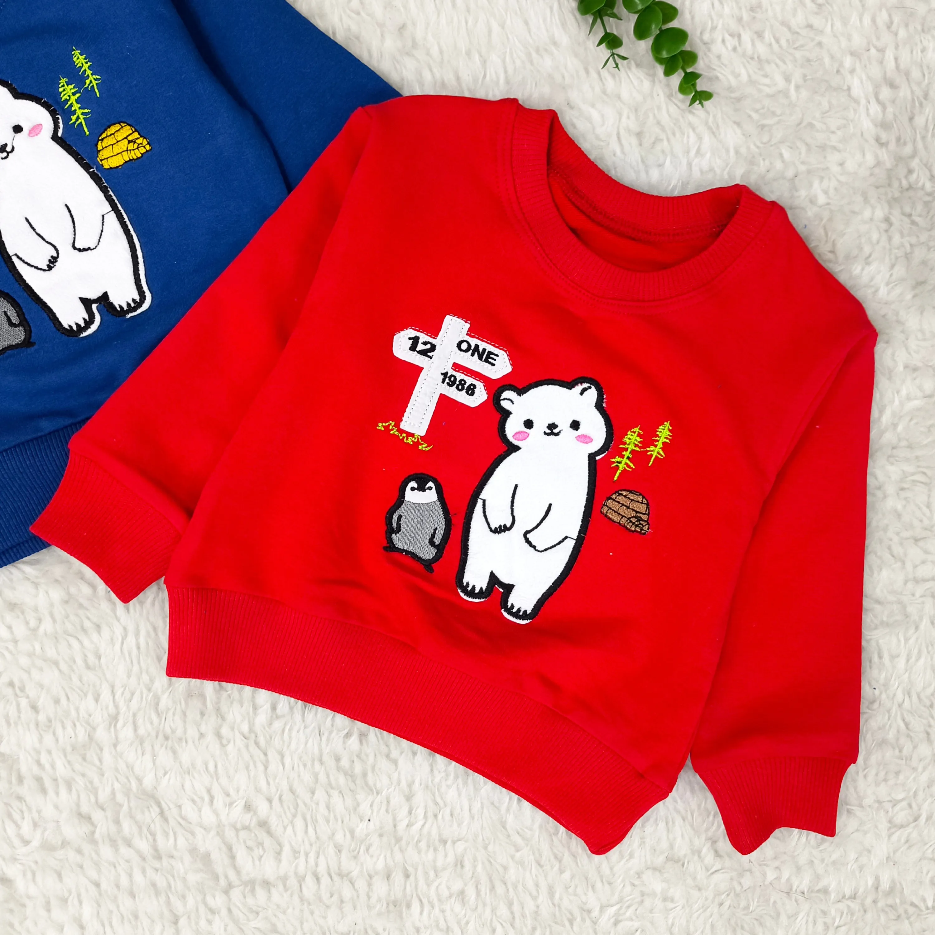 بلوز پسرانه طرح خرس و پنگوئن | دورس پنبه گلدوزی شده | مناسب 1 تا 3 سال