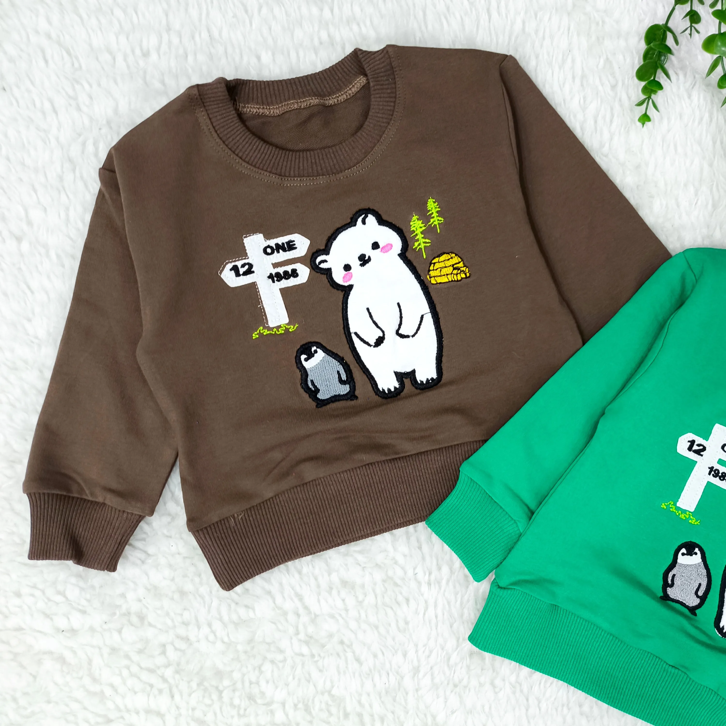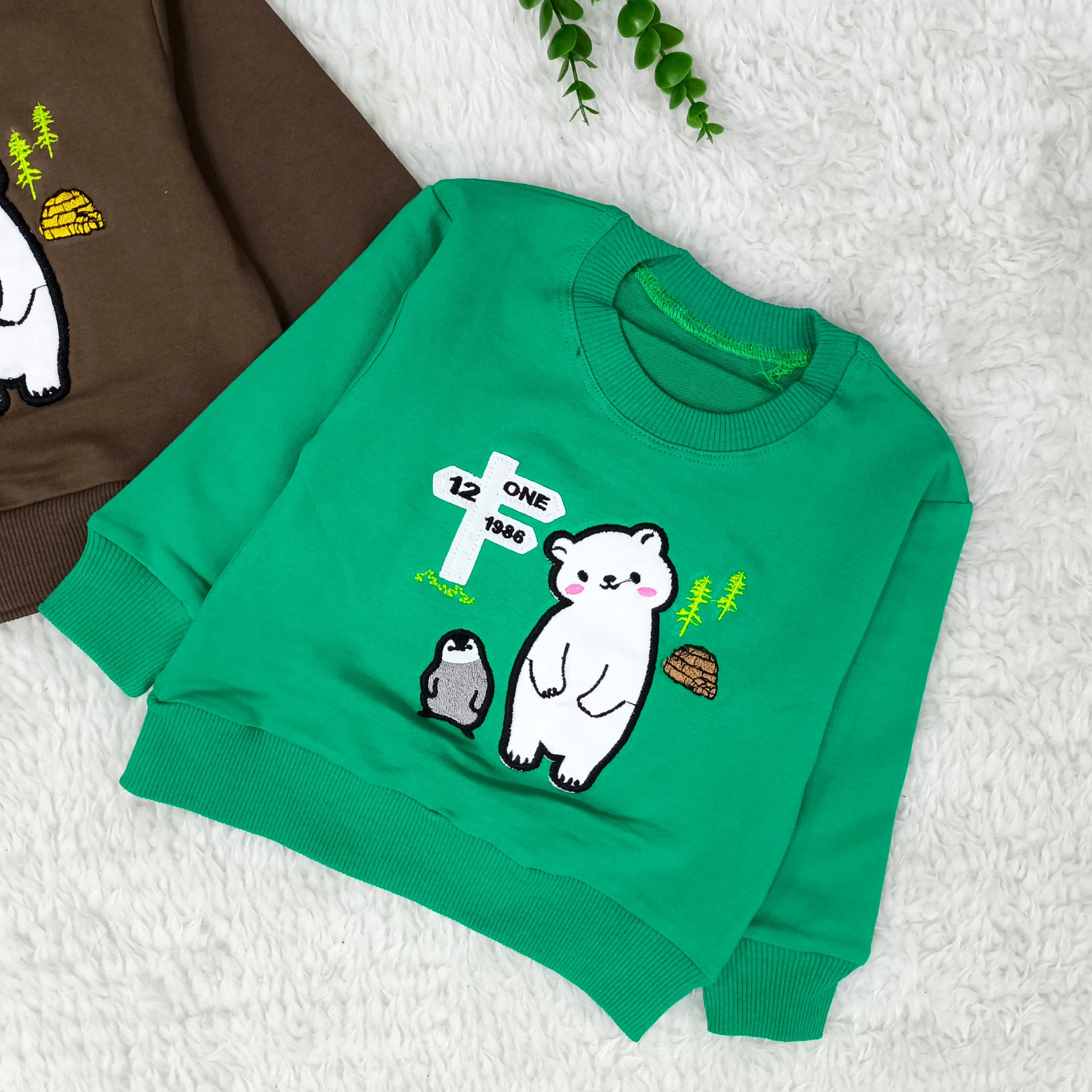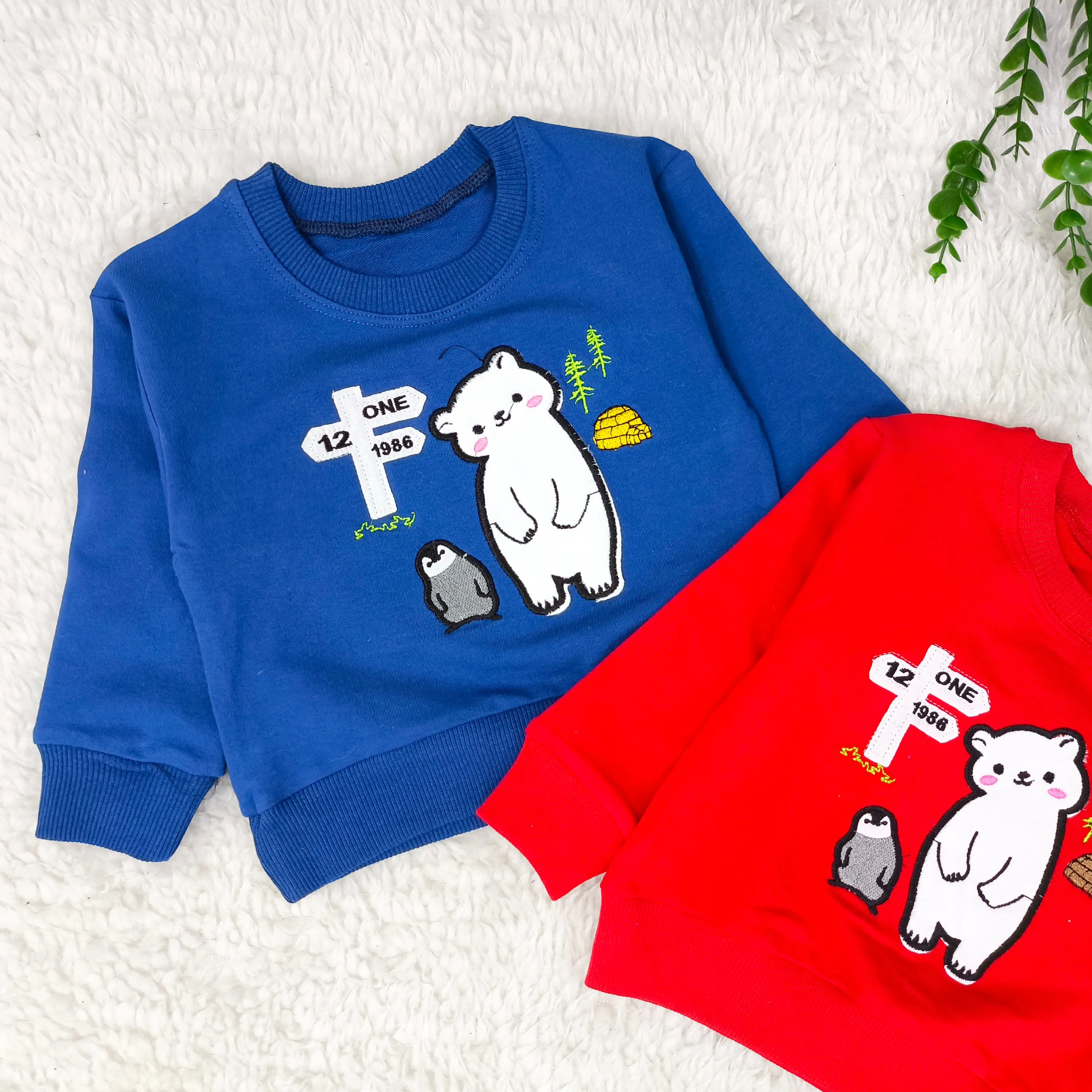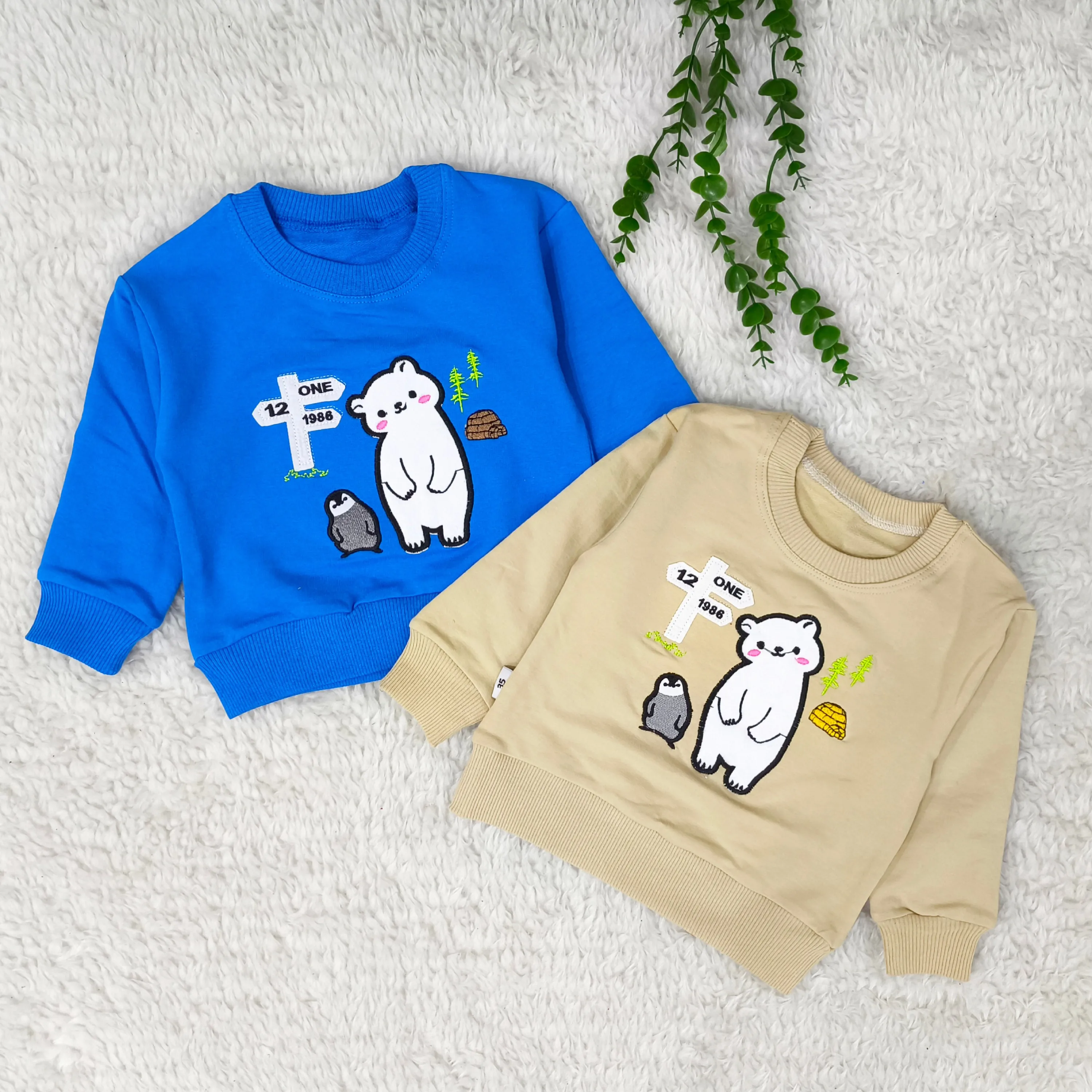 بلوز پسرانه طرح خرس و پنگوئن | دورس پنبه گلدوزی شده | مناسب 1 تا 3 سال