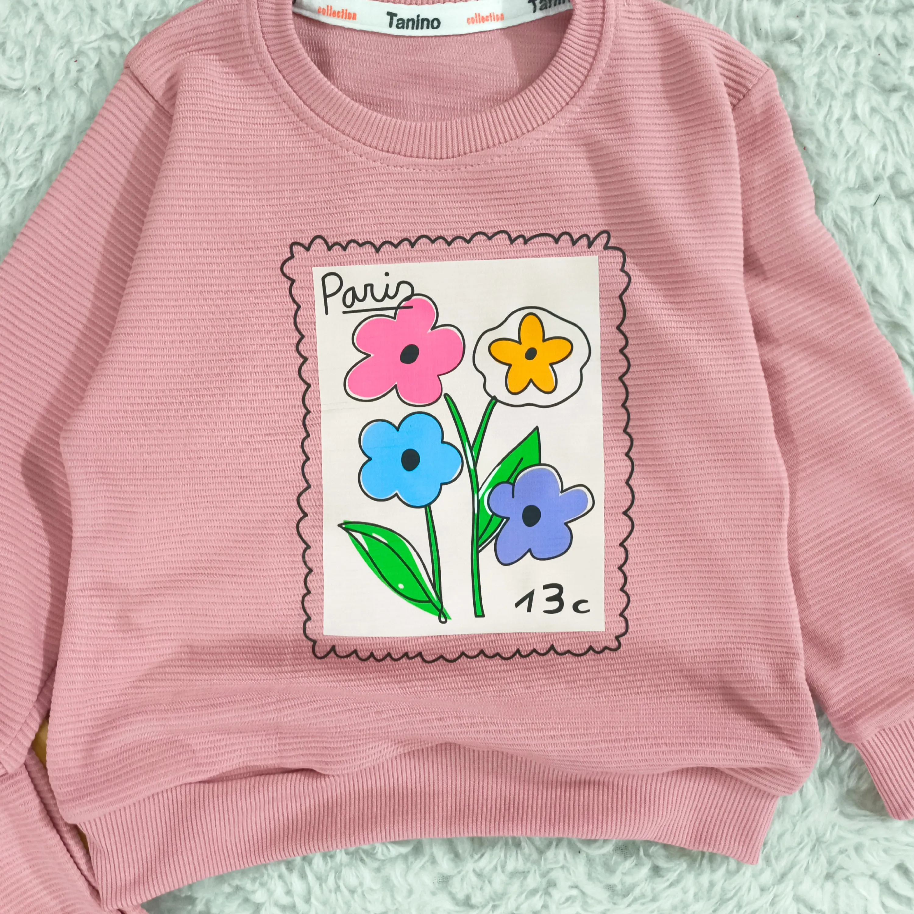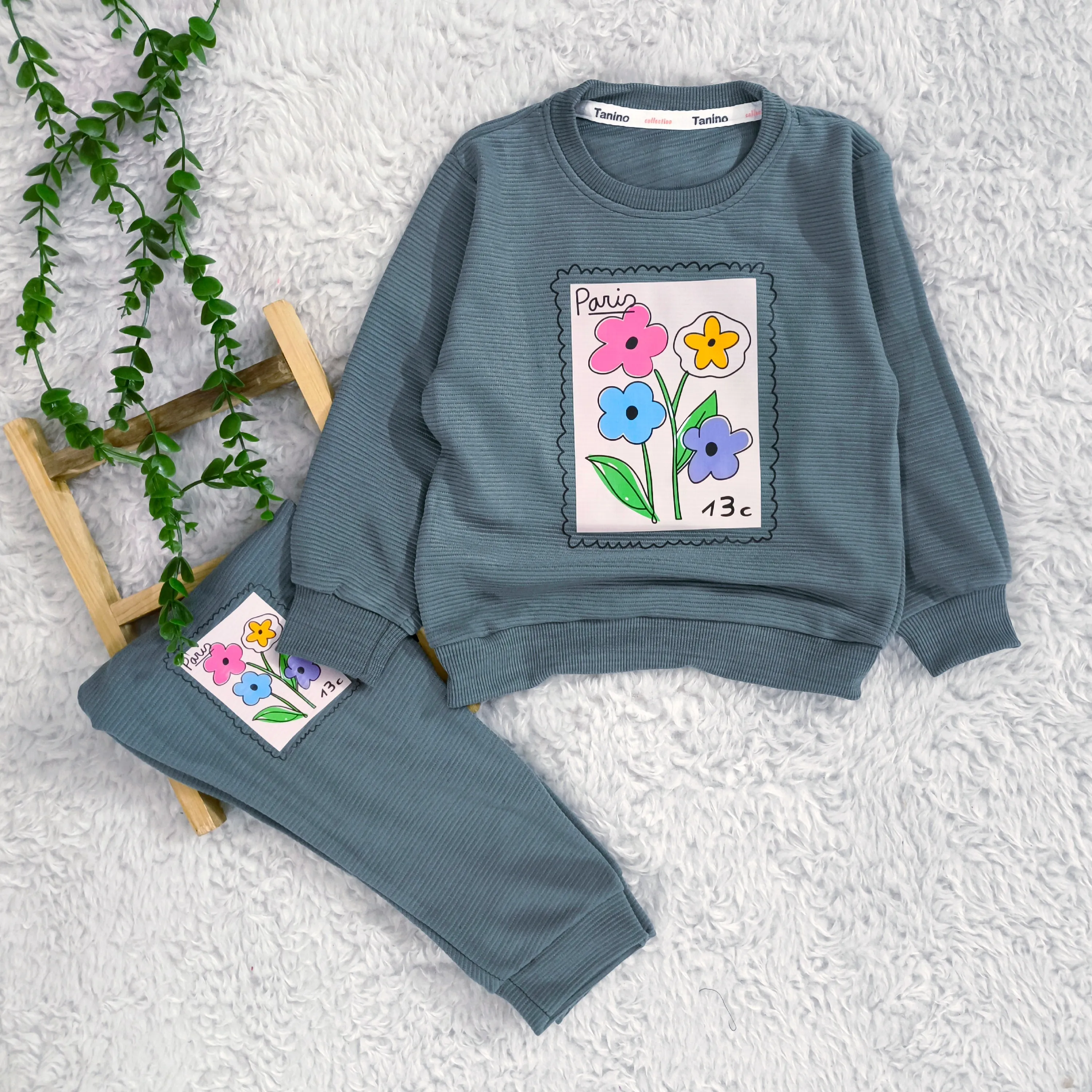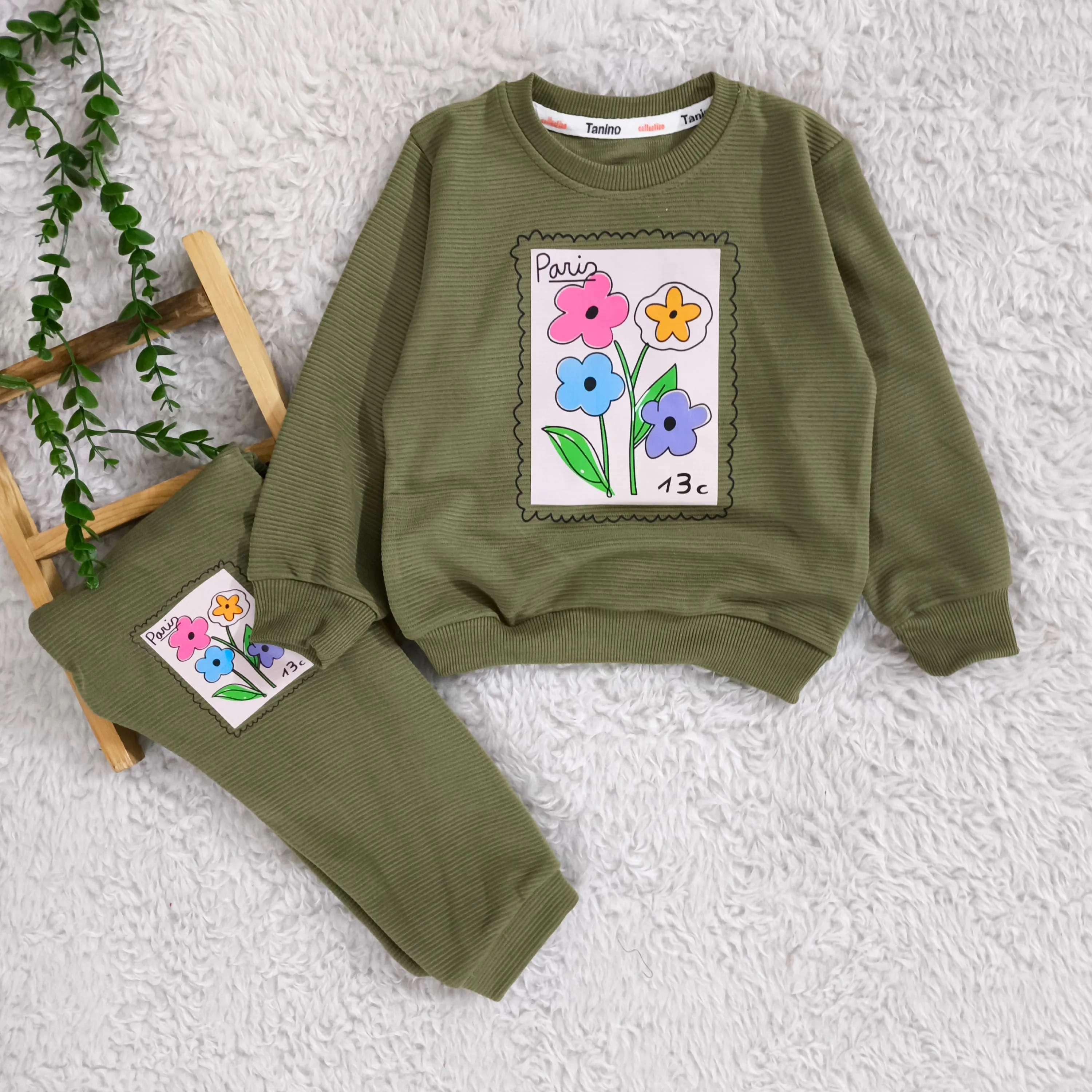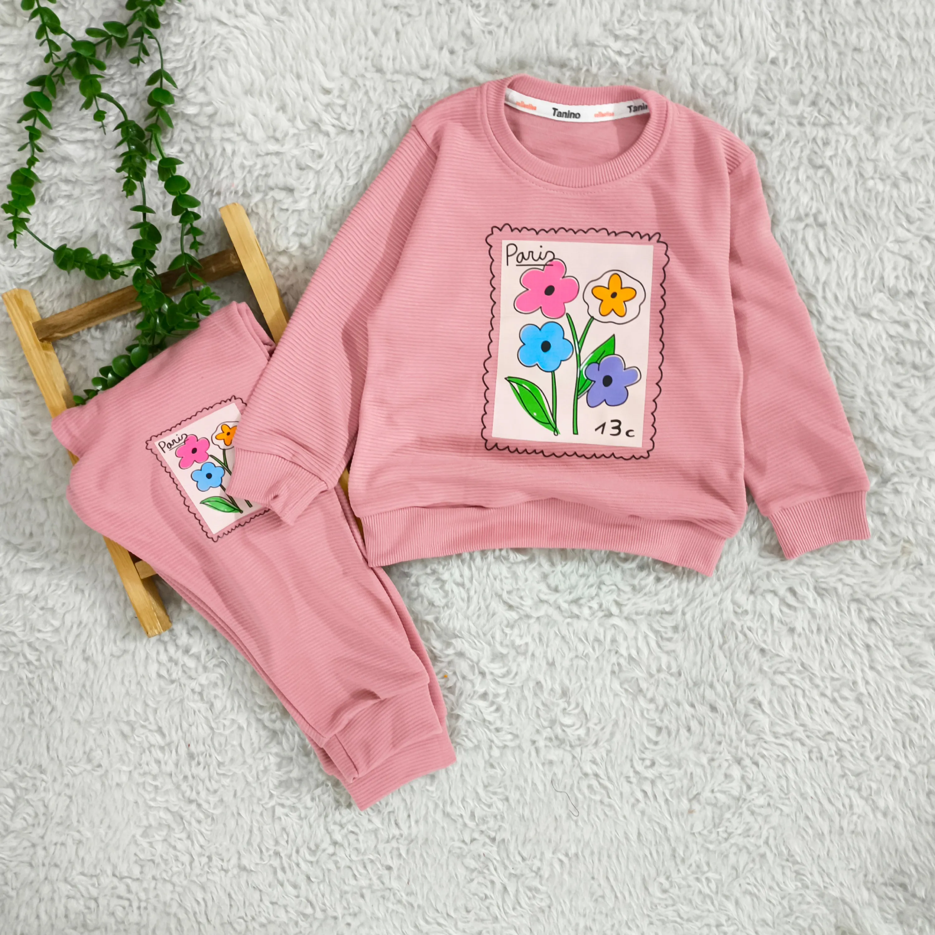 بلوز شلوار دخترانه طرح گل پاریس جنس پنبه نرم و لطیف مناسب 2 تا 4 سال
