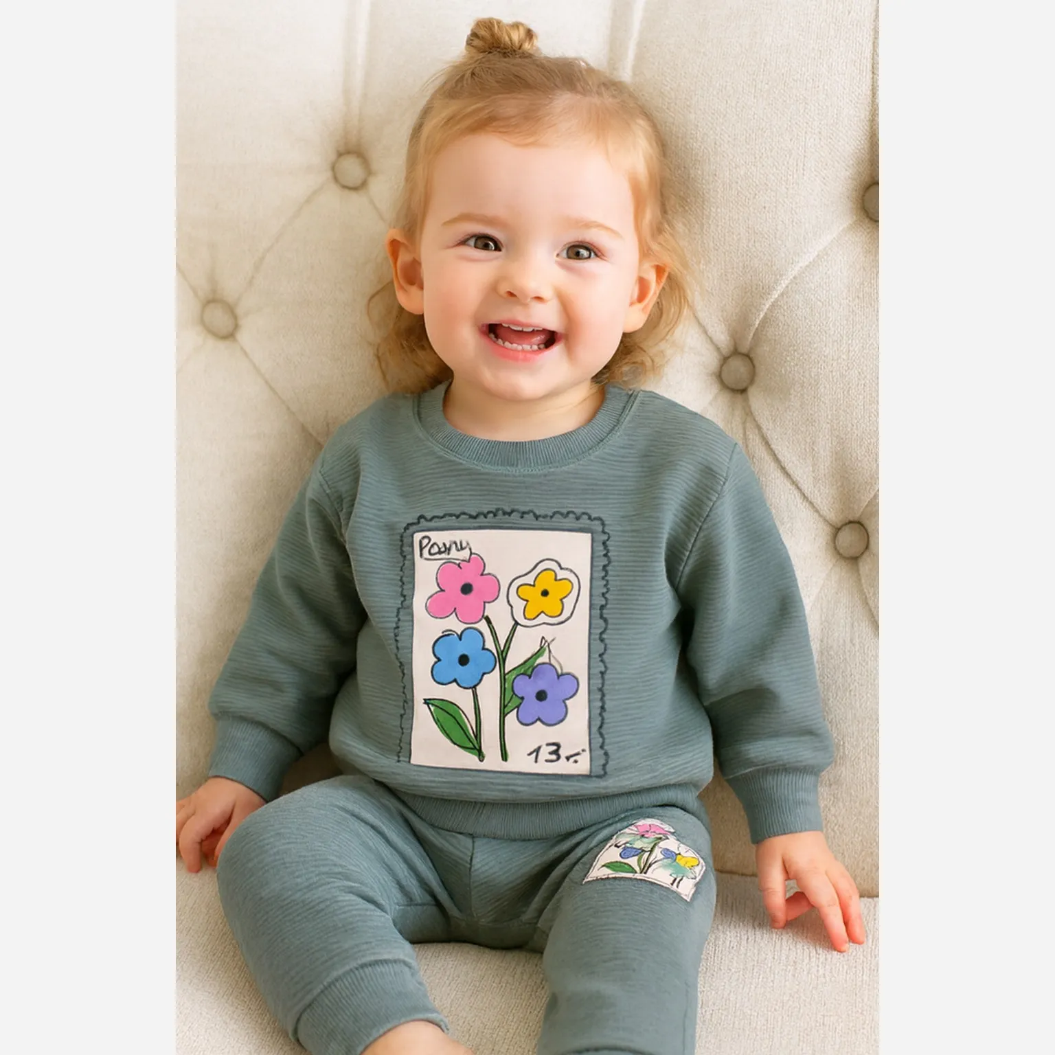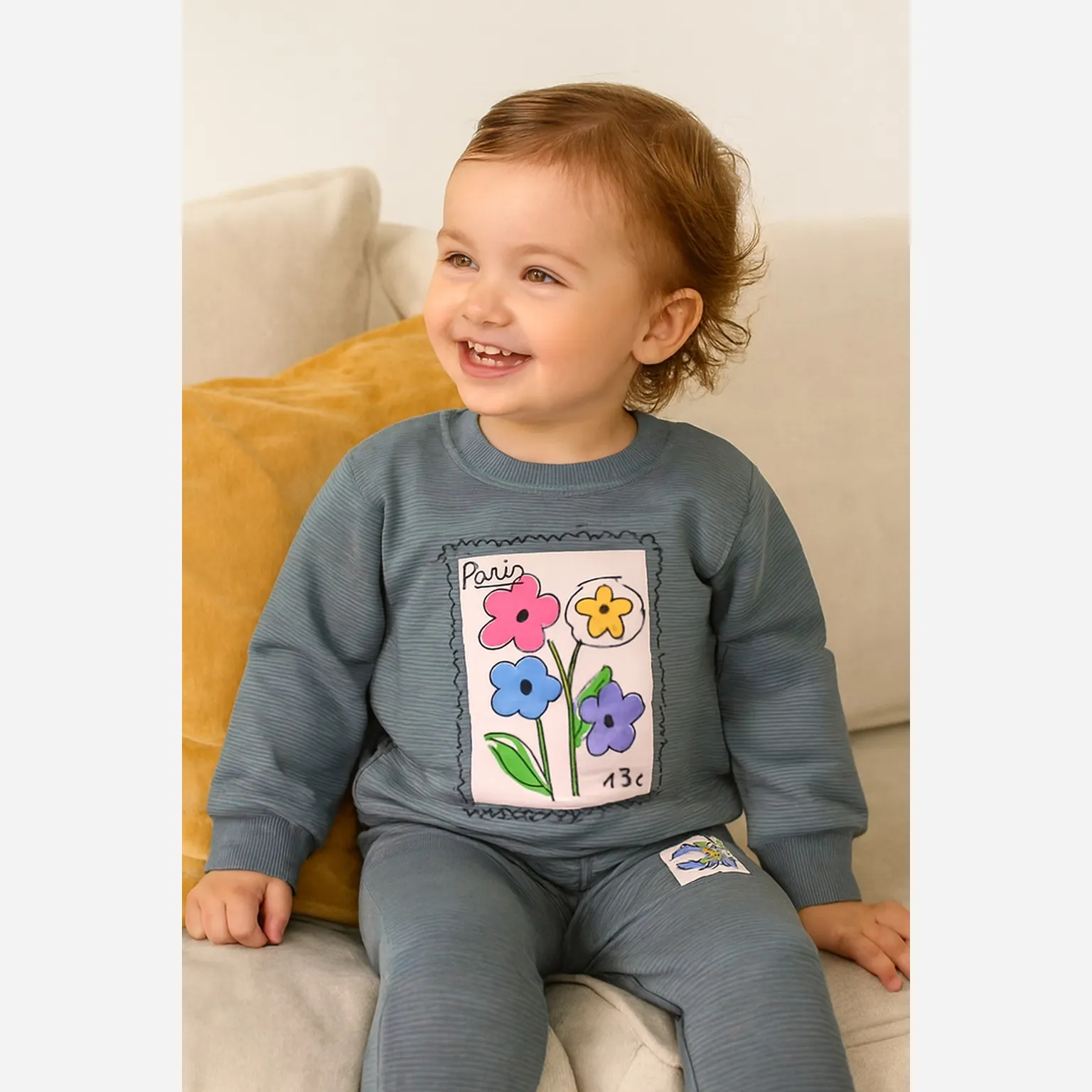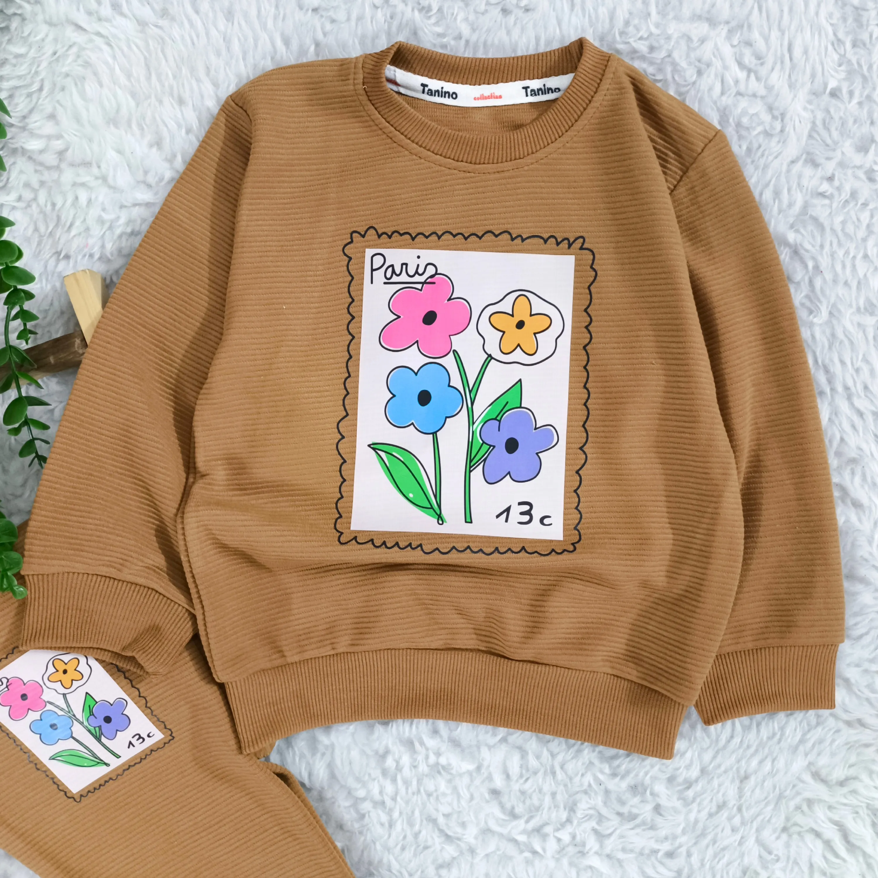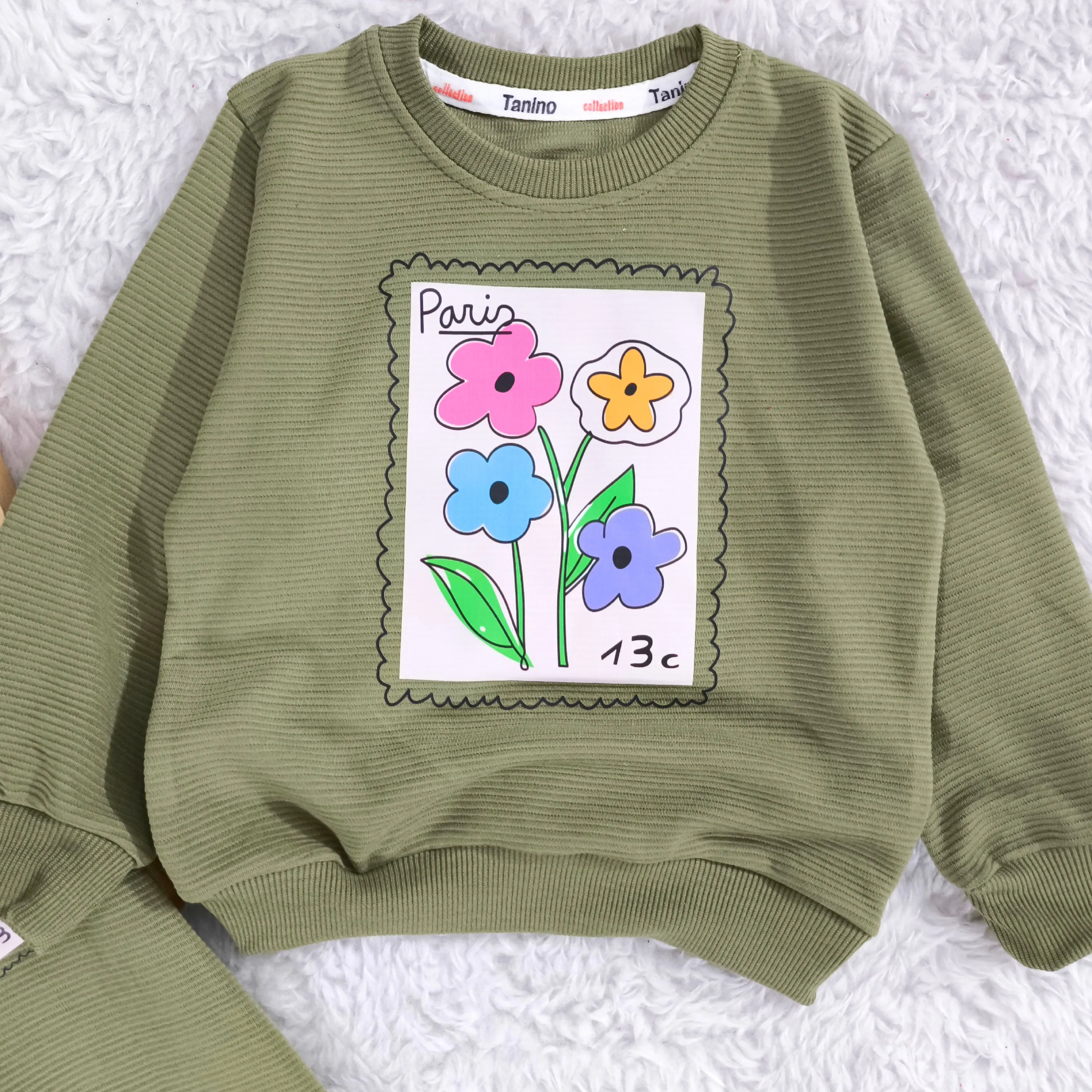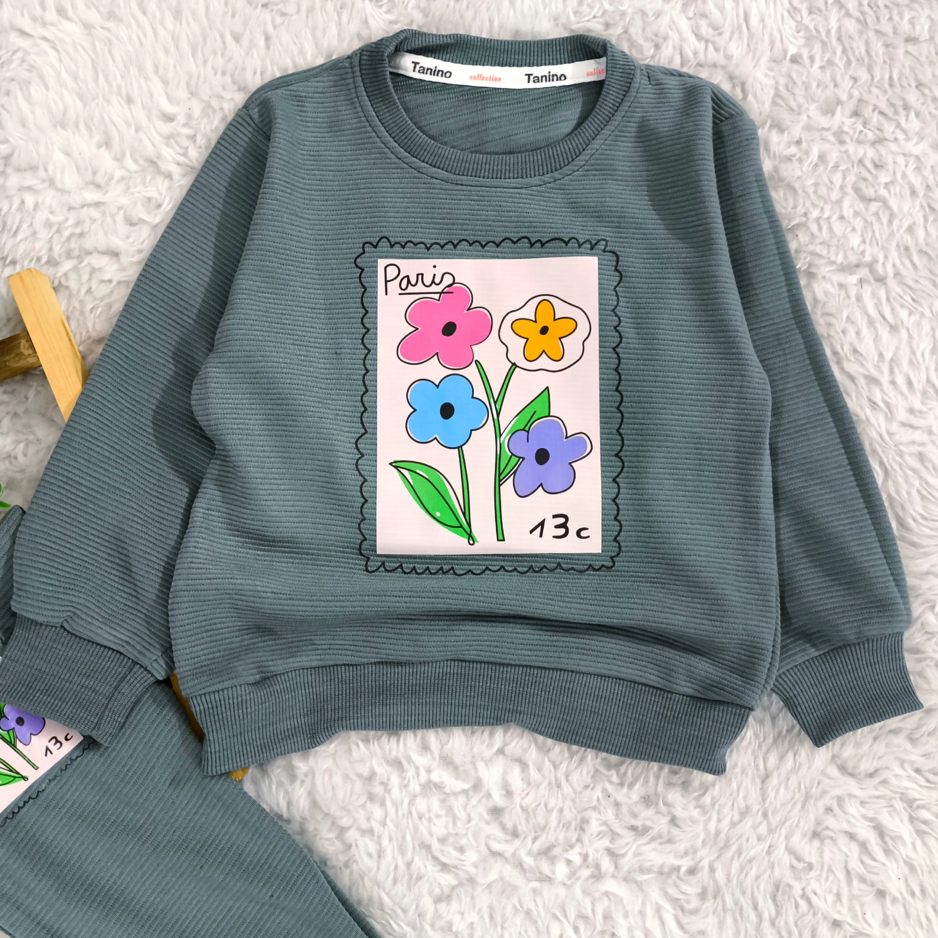 بلوز شلوار دخترانه طرح گل پاریس جنس پنبه نرم و لطیف مناسب 2 تا 4 سال