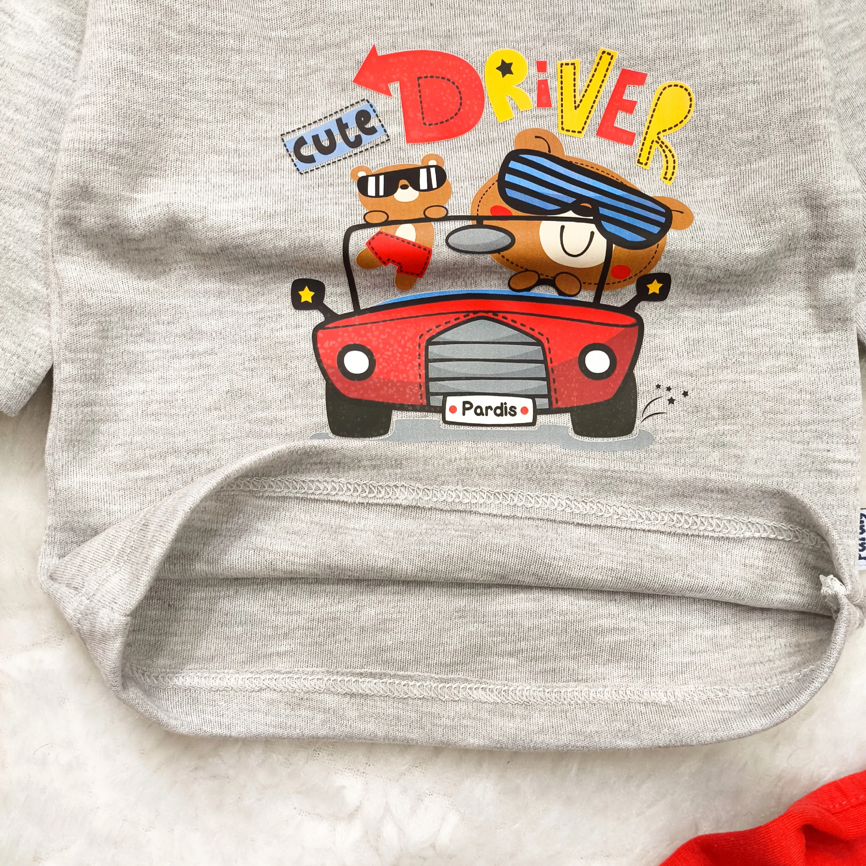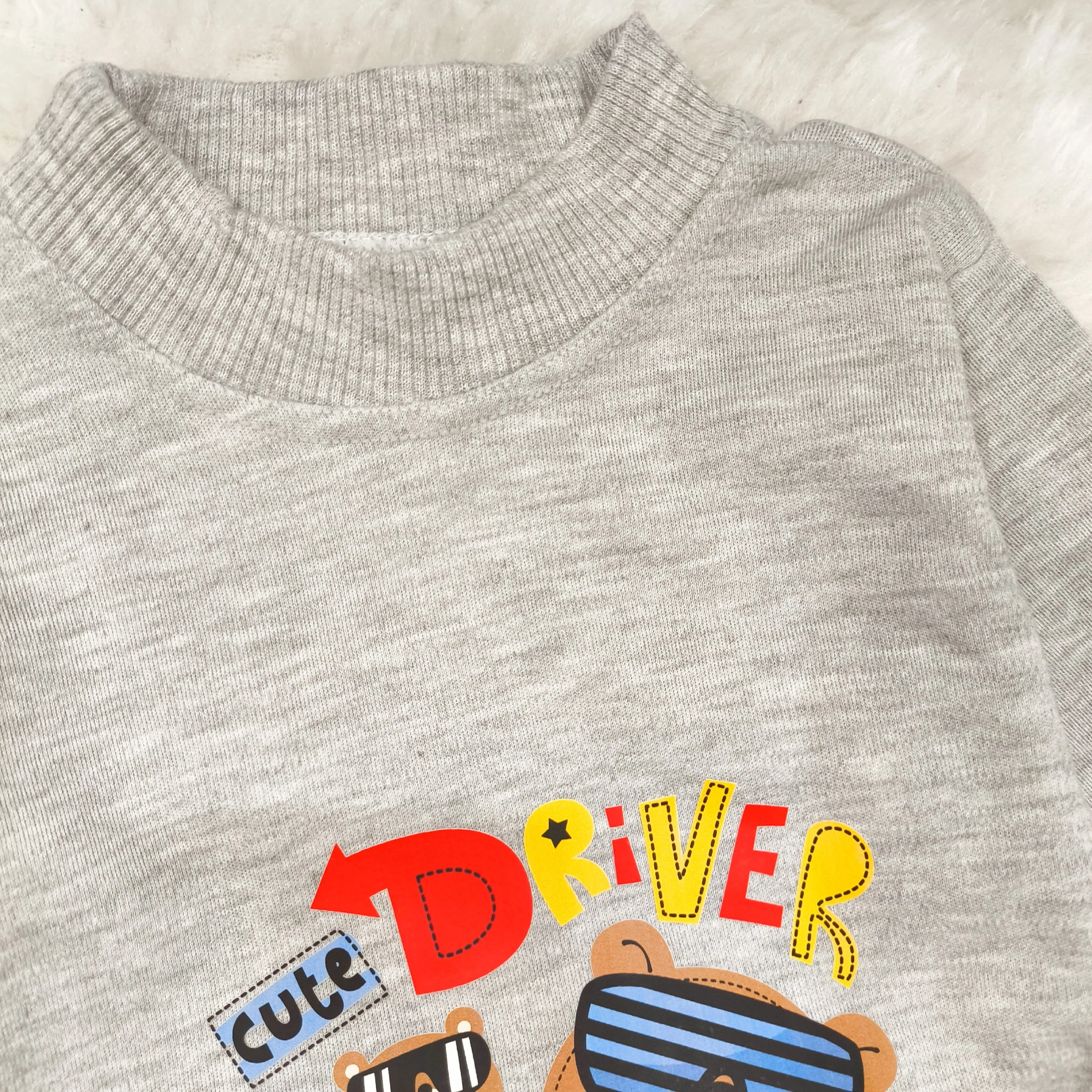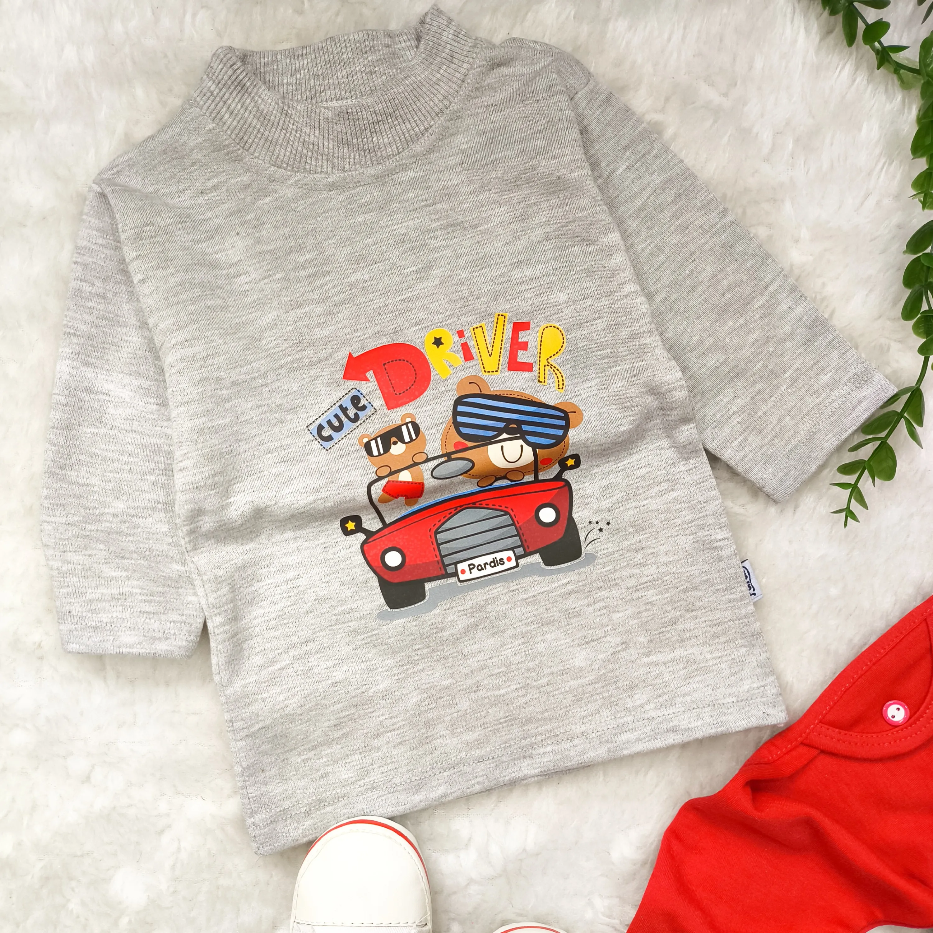 بلوز شلوار پسرانه طرح خرس راننده آستین بلند پنبه ای نخی مناسب 6 ماه تا 2 سال