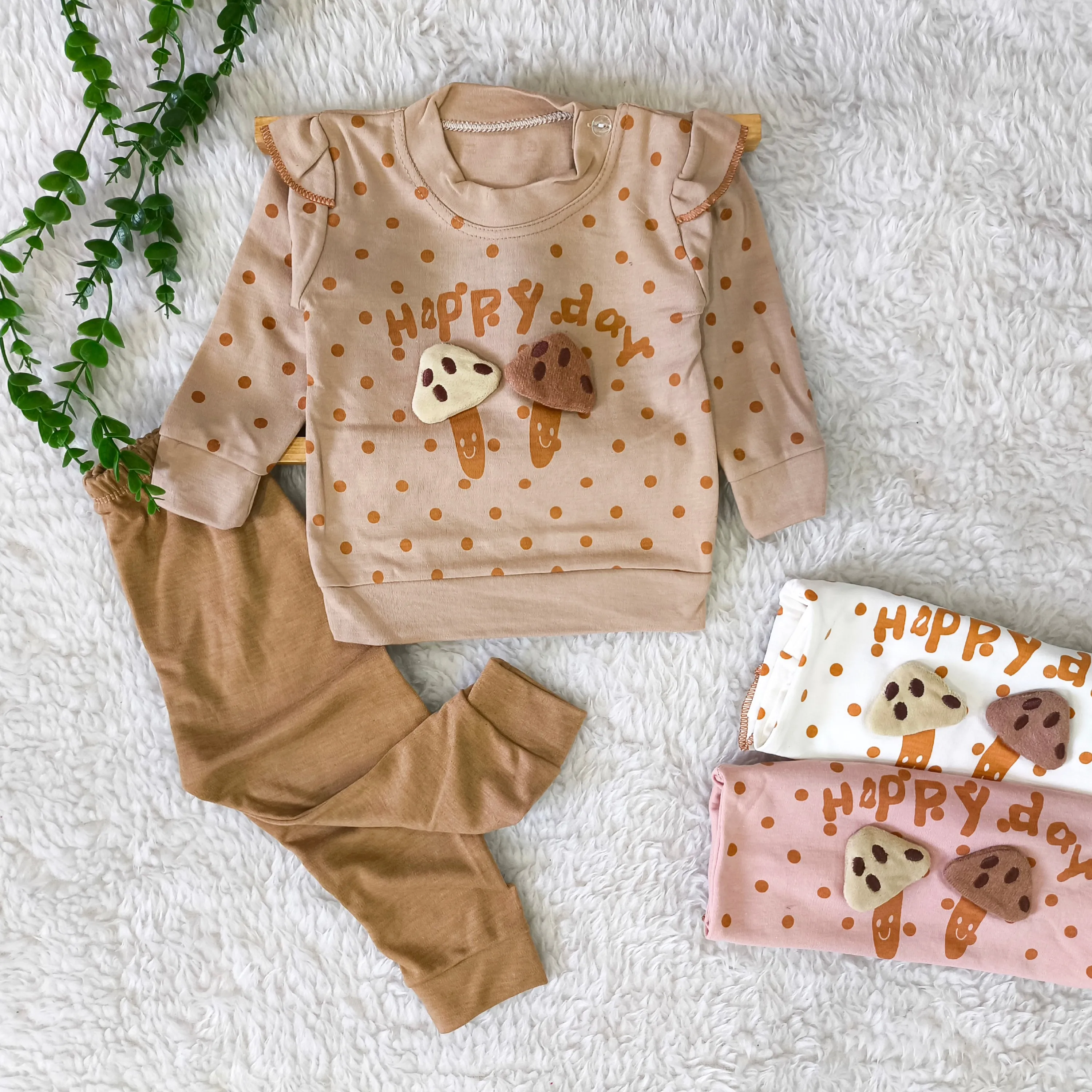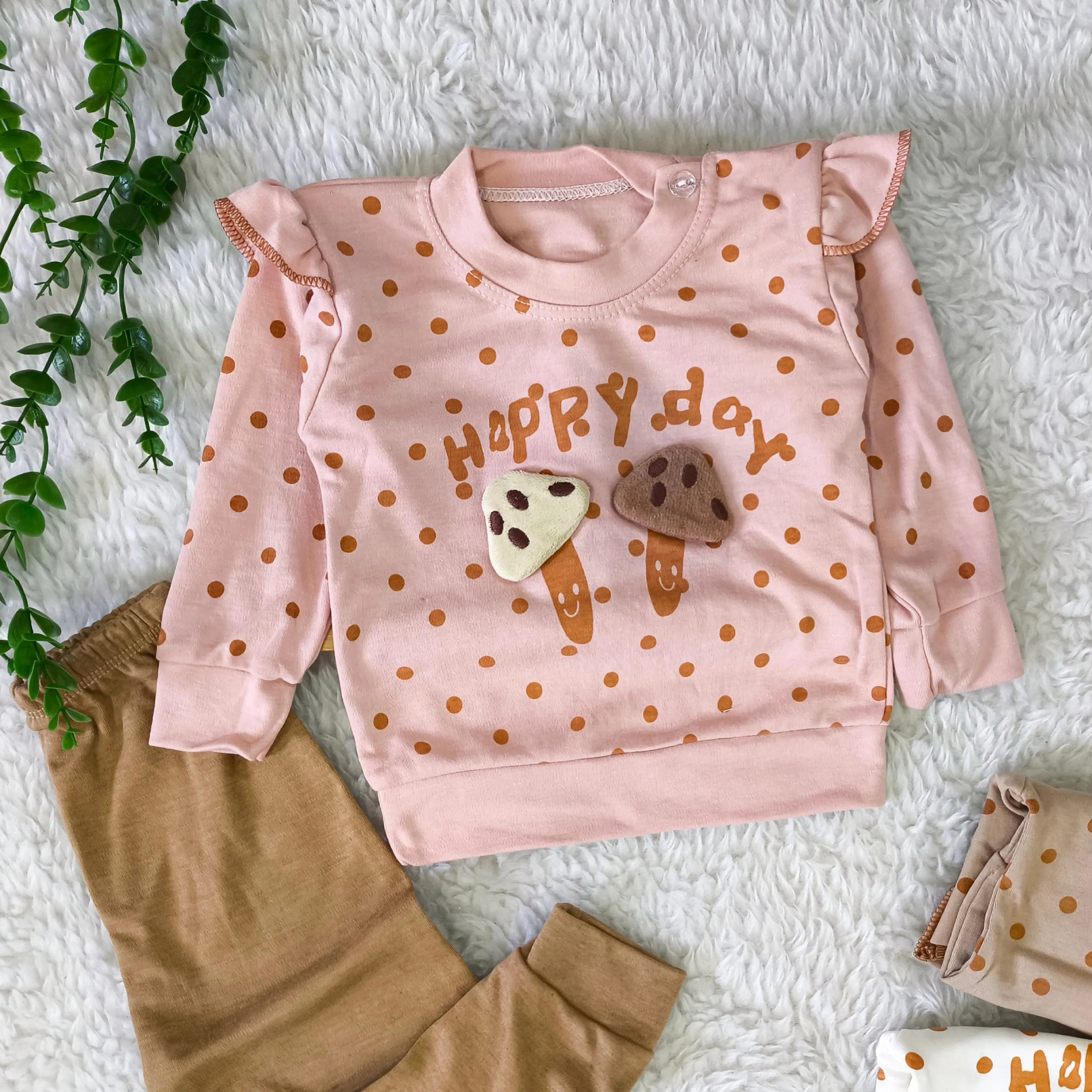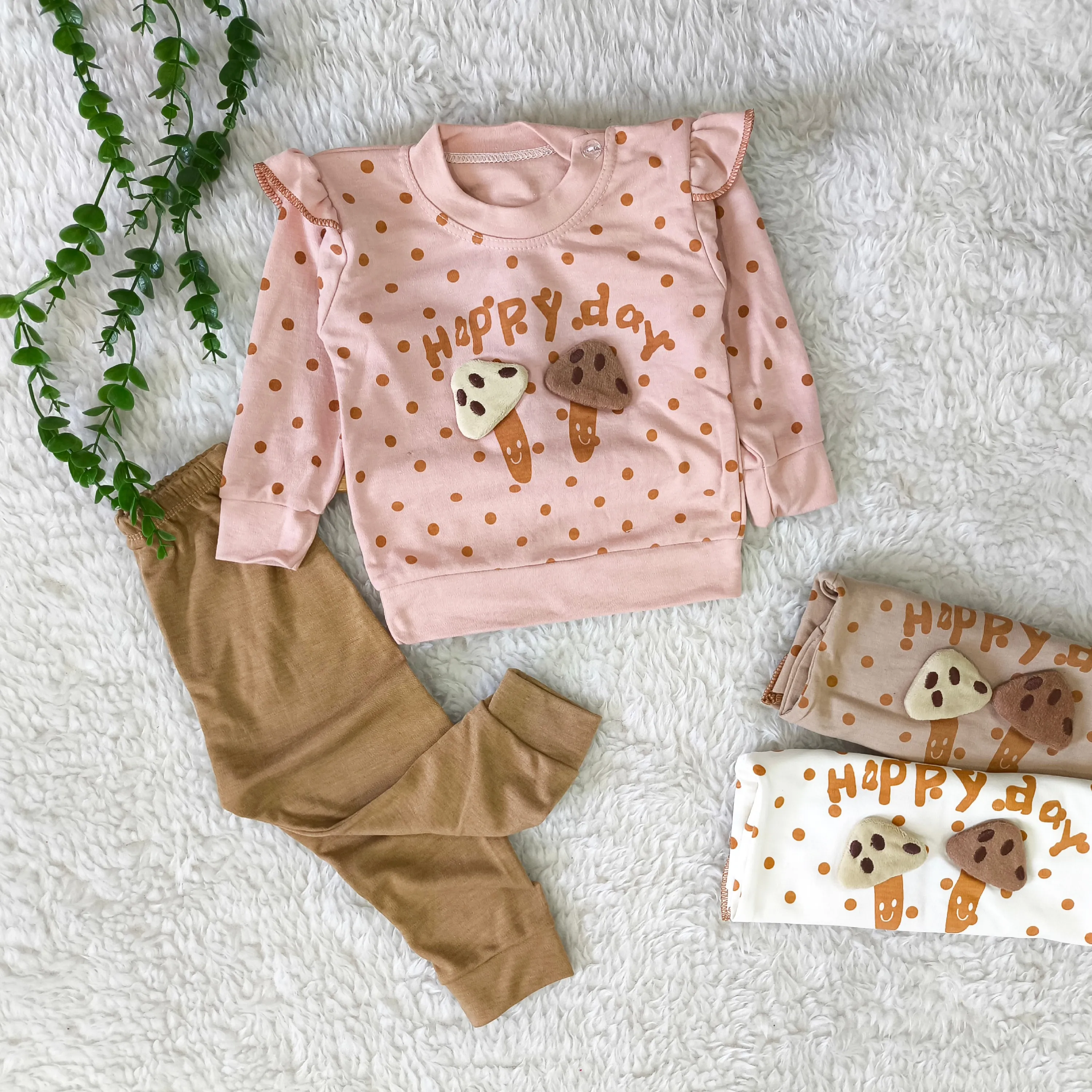 بلوز شلوار دخترانه طرح قارچ پولکی نوزادی و بچگانه