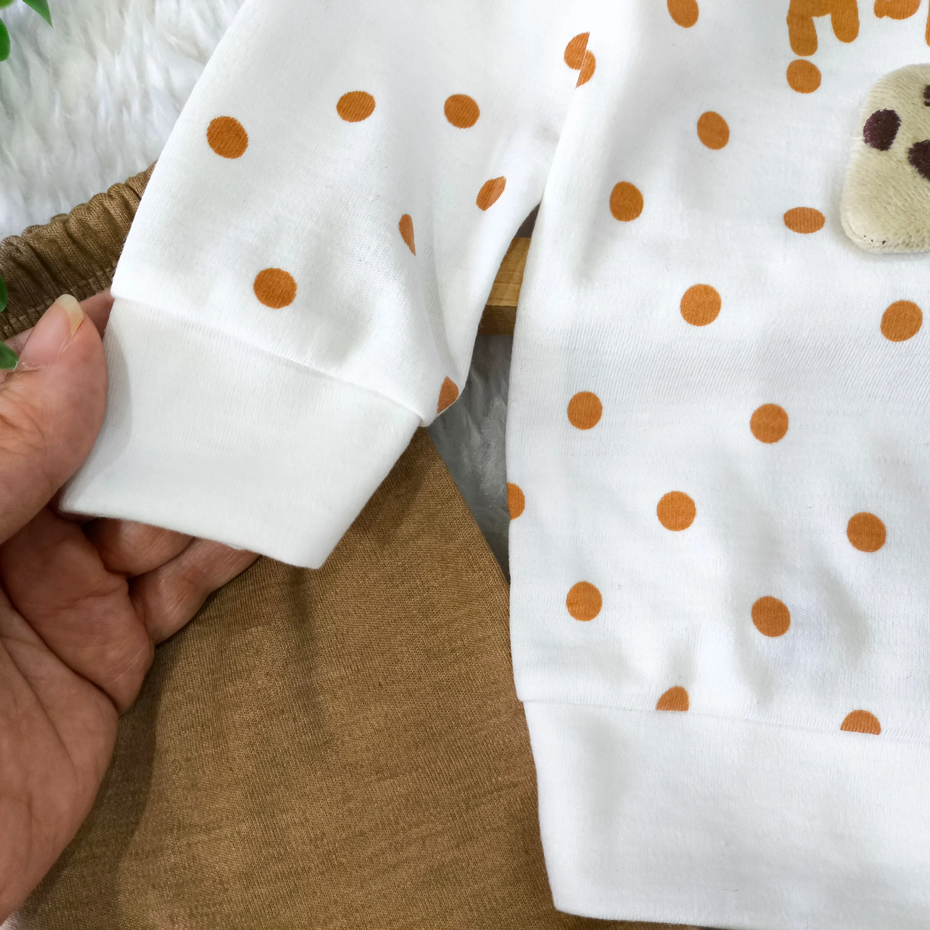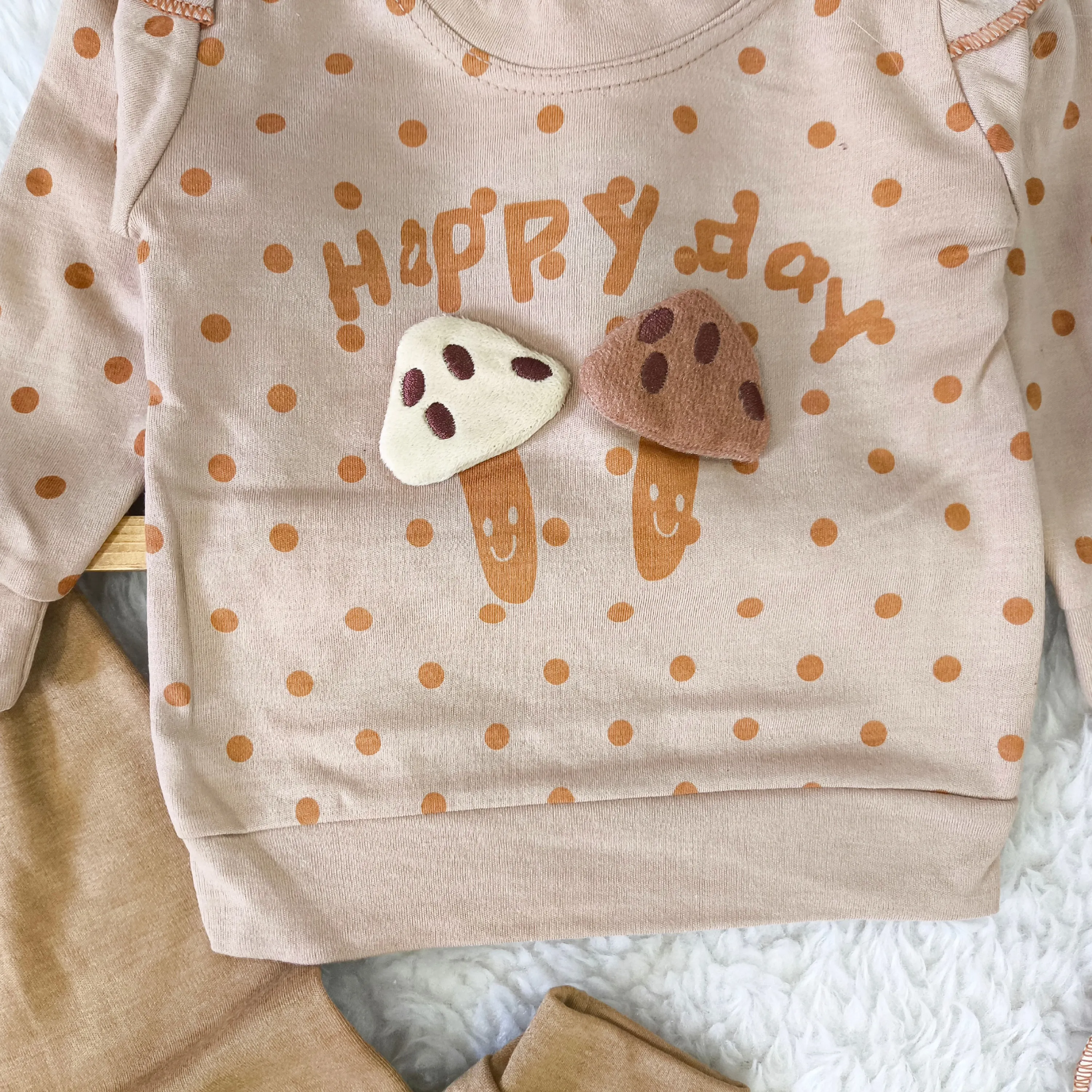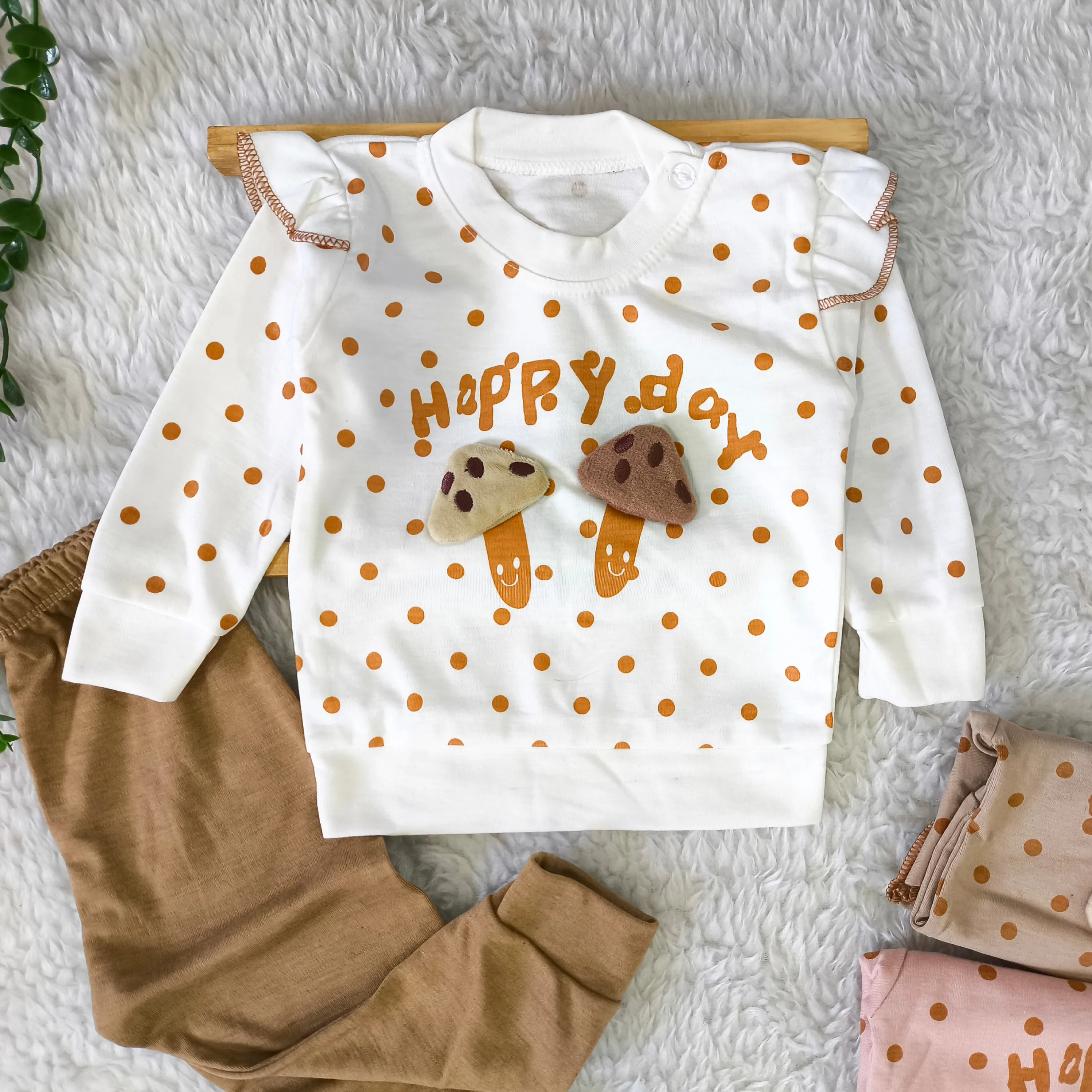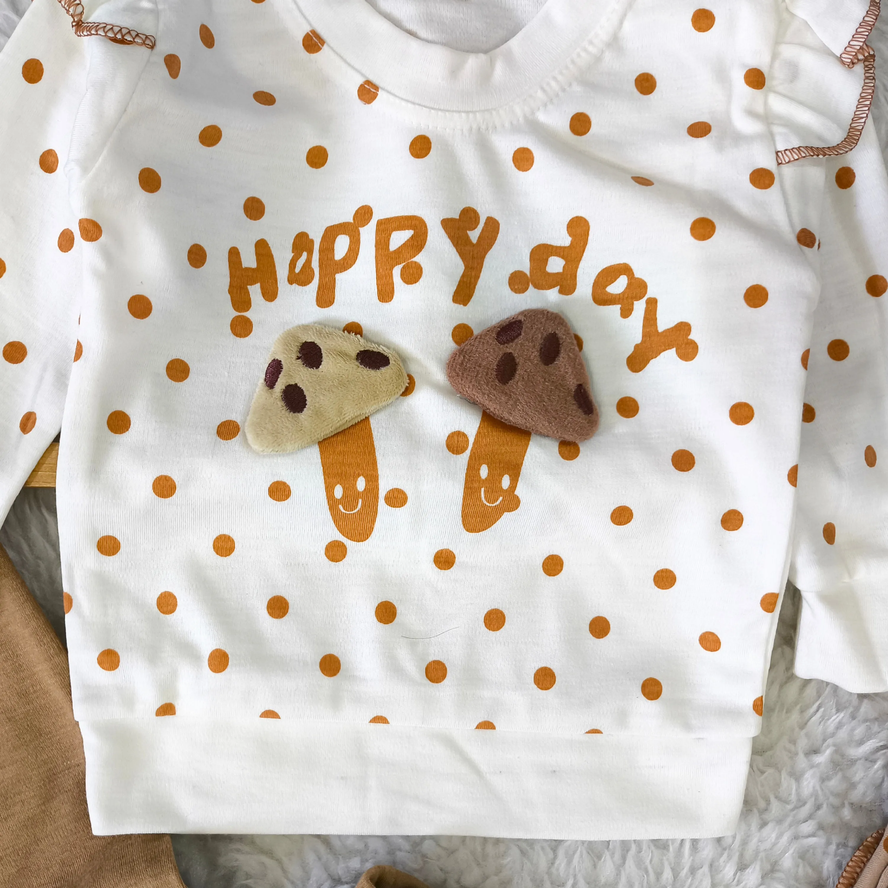 این ست بلوز شلوار دخترانه با طرح جذاب قارچ پولکی، انتخابی ایدهآل برای استایل روزمره دلبند شماست. جنس لطیف و باکیفیت این لباس، راحتی بینظیری را برای نوزادان و کودکان فراهم میکند.