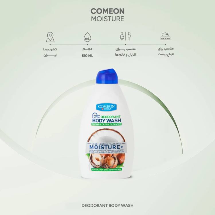شامپو بدن کامان مدل Moisture مناسب پوست خشک و معمولی حجم ۵۱۰ میلیلیتر