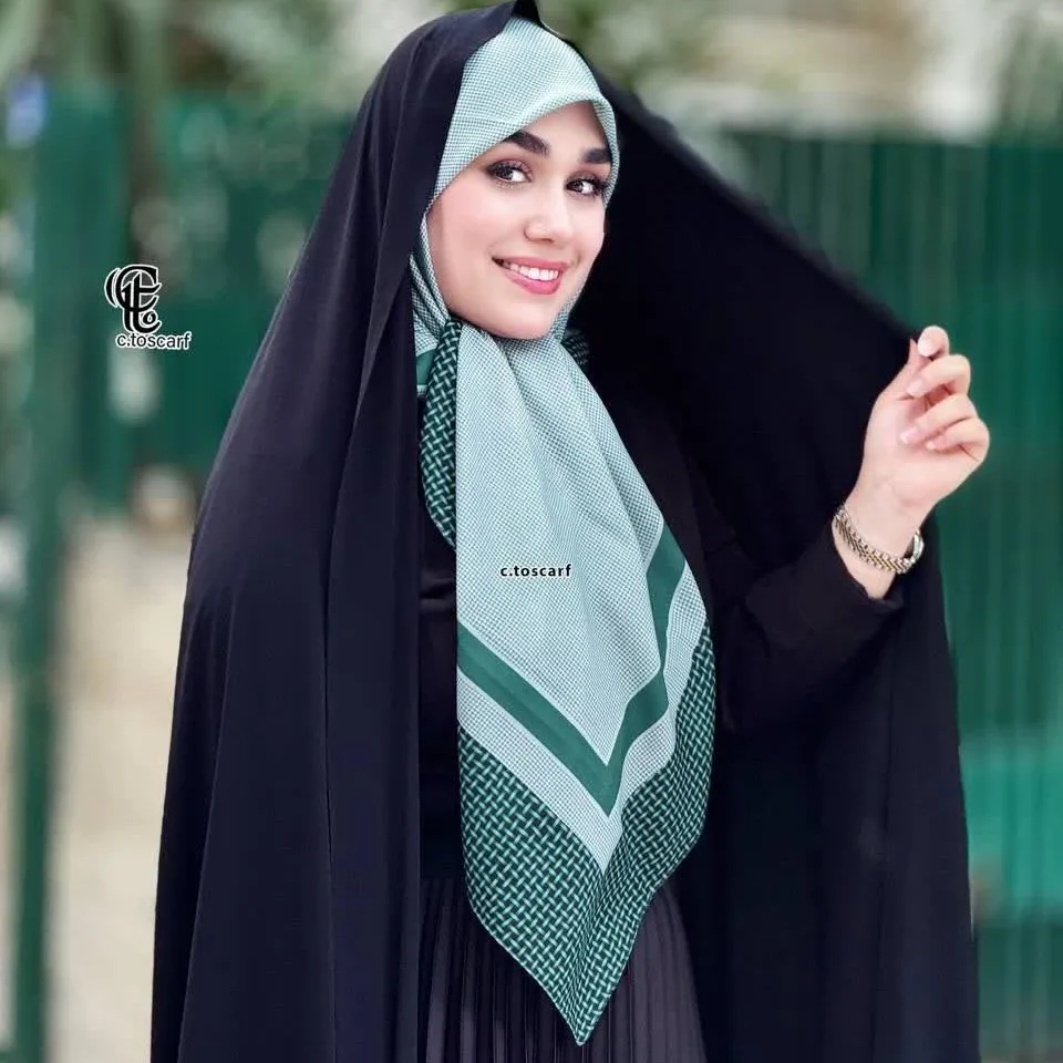 شال نخی طرح کاملیا سایز 140 رنگ کرم قهوه ای و سبز شیک و کاربردی