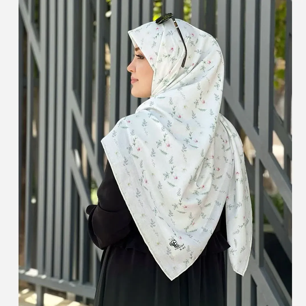 زیباترین روسری با زمینه سفید که میتوانید داشته باشید. این روسری با طرح گل سفید خود، انتخابی ایدهآل برای استفاده روزمره و مجالس است. همچنین، به دلیل جنس نخی و راحتی، برای استفاده هنگام نماز نیز مناسب میباشد.