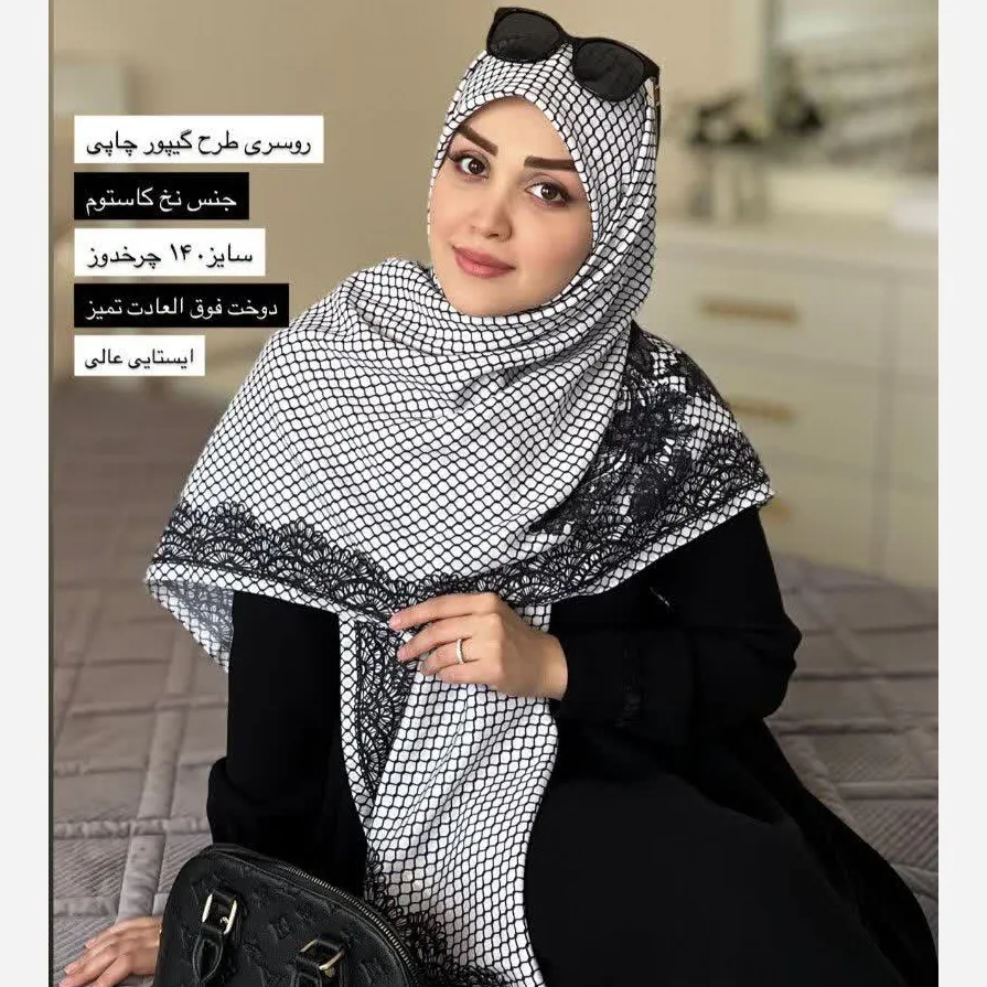 شال و روسری گیپور چاپی دورو طرح دار زنانه