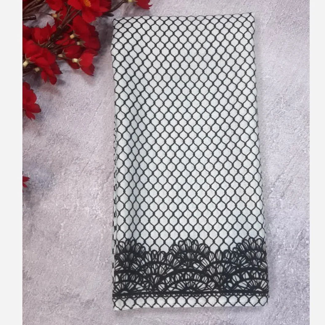- طرح گیپور چاپی: یک طرف روسری با طرح گیپور چاپی زیبا و چشمنواز تزئین شده است.