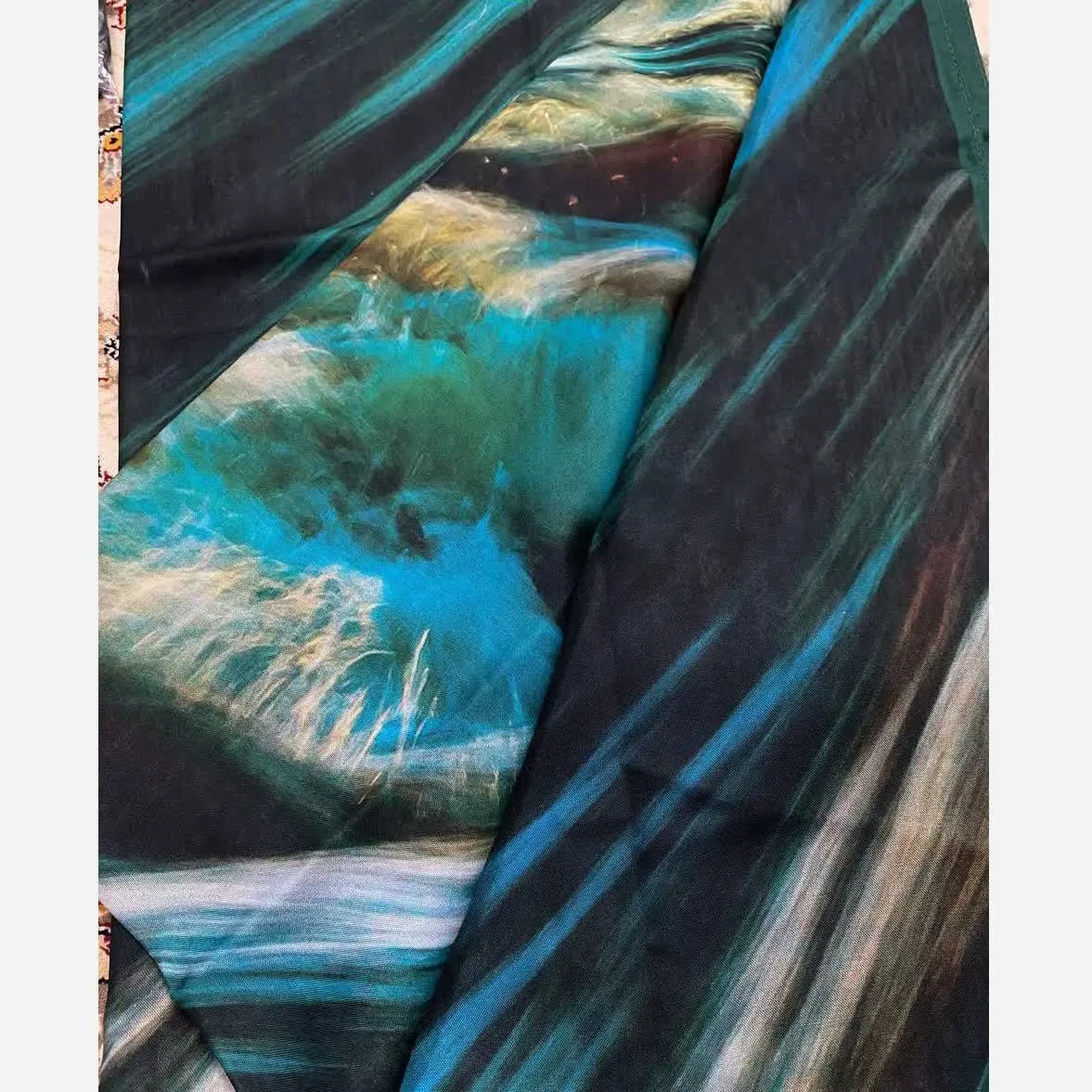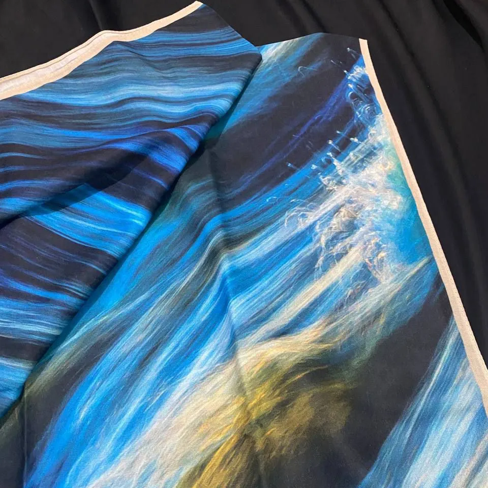 روسری طرح دریا نخ کاستوم سیتو قواره بزرگ 140 سانتیمتر چرخ دوز