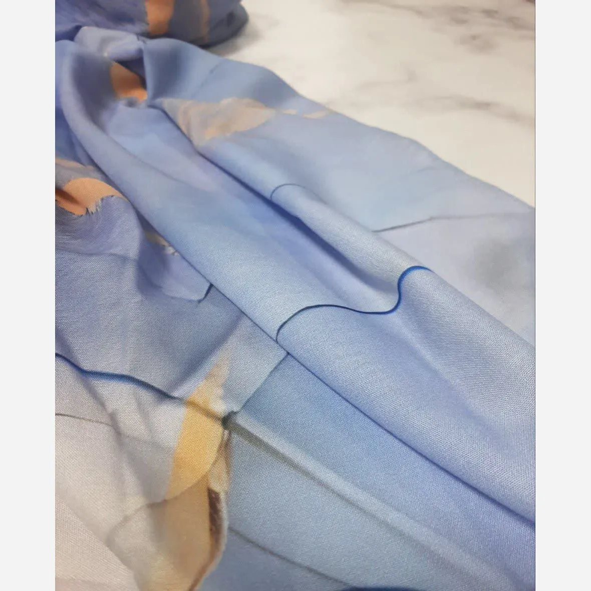 این شال زنانه با رنگ آبی آرامشبخش و طرحهای هنری شبیه به نقاشی آبرنگ، انتخابی عالی برای افزودن زیبایی و لطافت به استایل شماست. رنگ آبی ملایم این شال، حس خوبی را منتقل کرده و جلوهای خاص به ظاهر شما میبخشد.