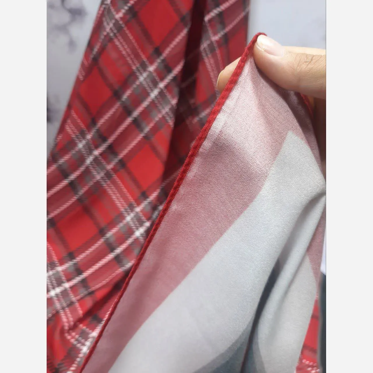 این روسری با طرح چهارخانه قرمز زیبا و رنگی خاص، انتخابی ایدهآل برای افزودن جلوهای شیک به استایل شماست. جنس نخی اعلا و دوخت چرخدوز آن، راحتی و دوام را برای استفاده روزمره و همچنین در مهمانیها تضمین میکند.