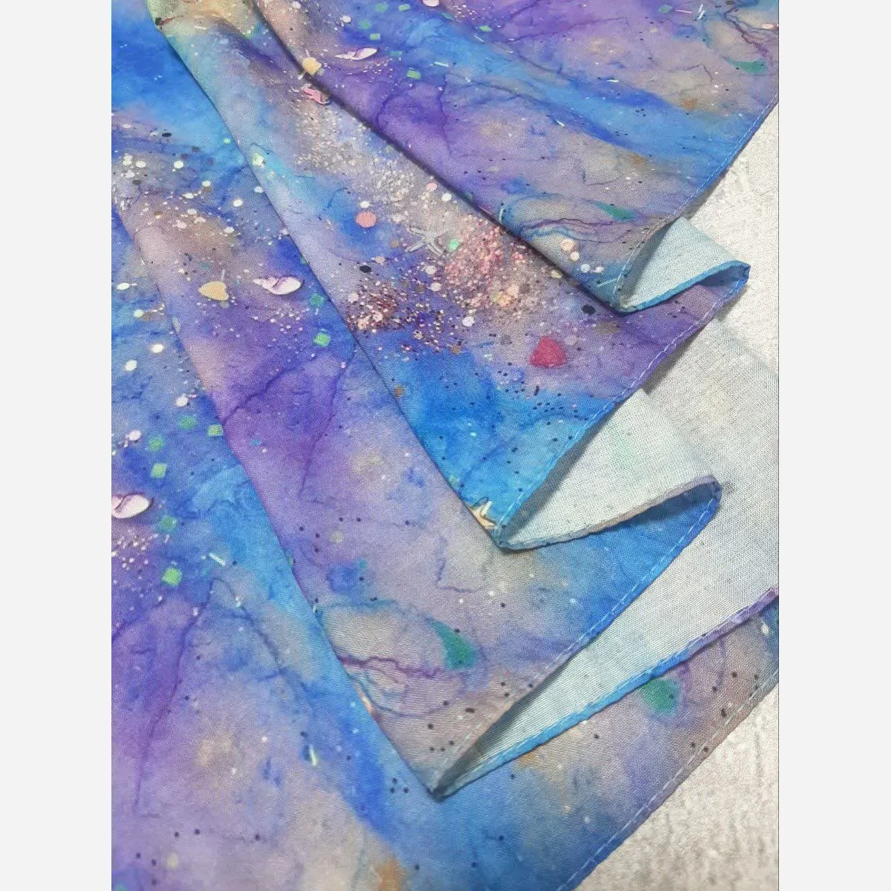 روسری طرح ساحل نخی سایز 140 | طرح کهکشانی و ستاره دریایی