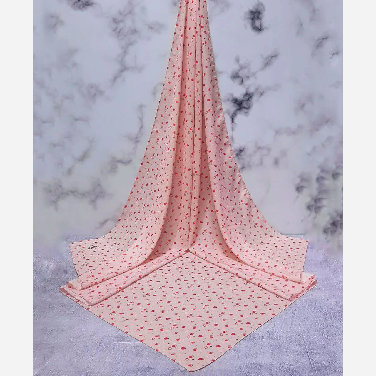 روسری نخی زنانه با طرحی فانتزی و جذاب از توت فرنگی و بابونه، انتخابی ایدهآل برای افزودن رنگ و شادابی به استایل شماست. زمینه صورتی این روسری، زیبایی طرح را دوچندان کرده و حسی از لطافت و دلنشینی را القا میکند.