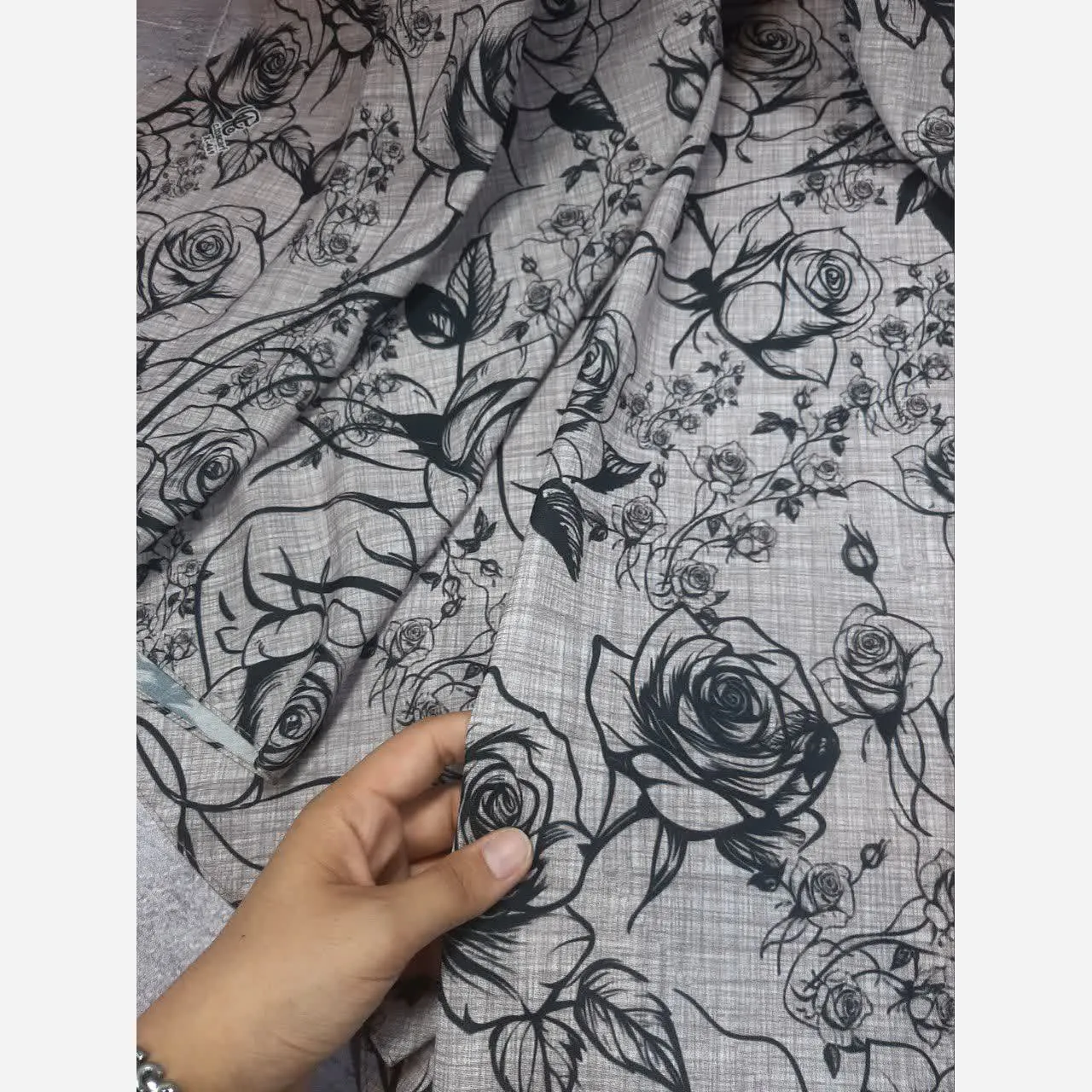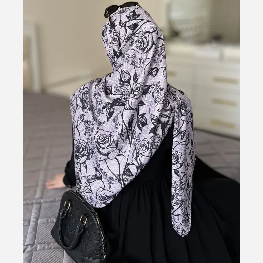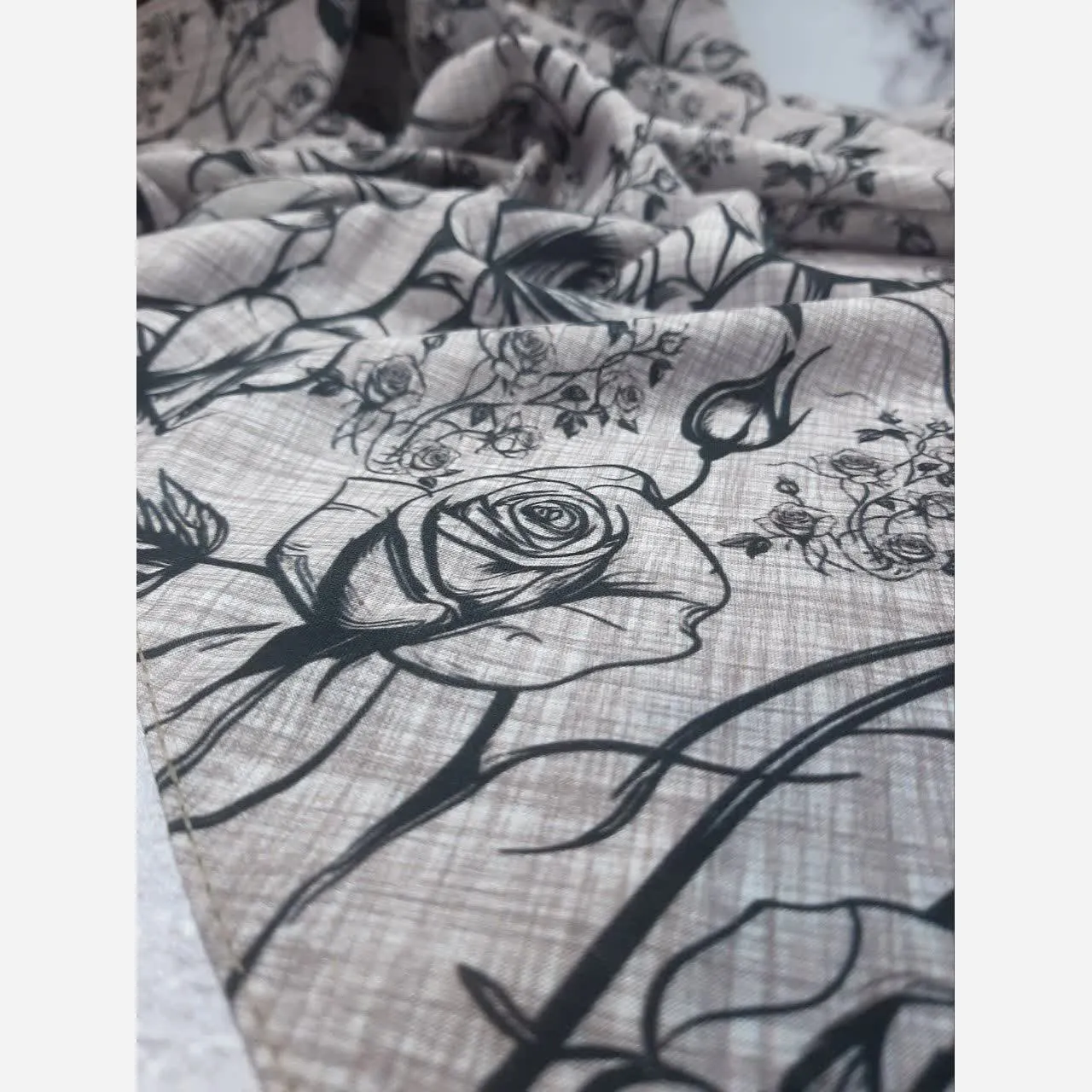 شال زنانه طرح گل رز مشکی طوسی شیک و خاص