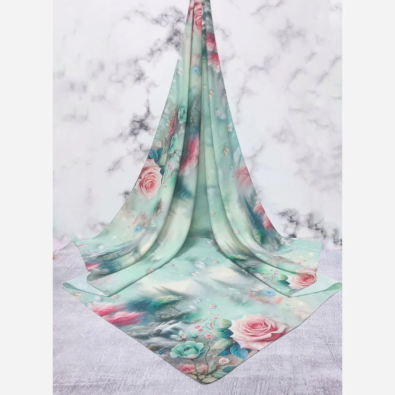 روسری طرح برکه زنانه، جنس نخ کاستوم، سایز 110، طرح گل و پروانه