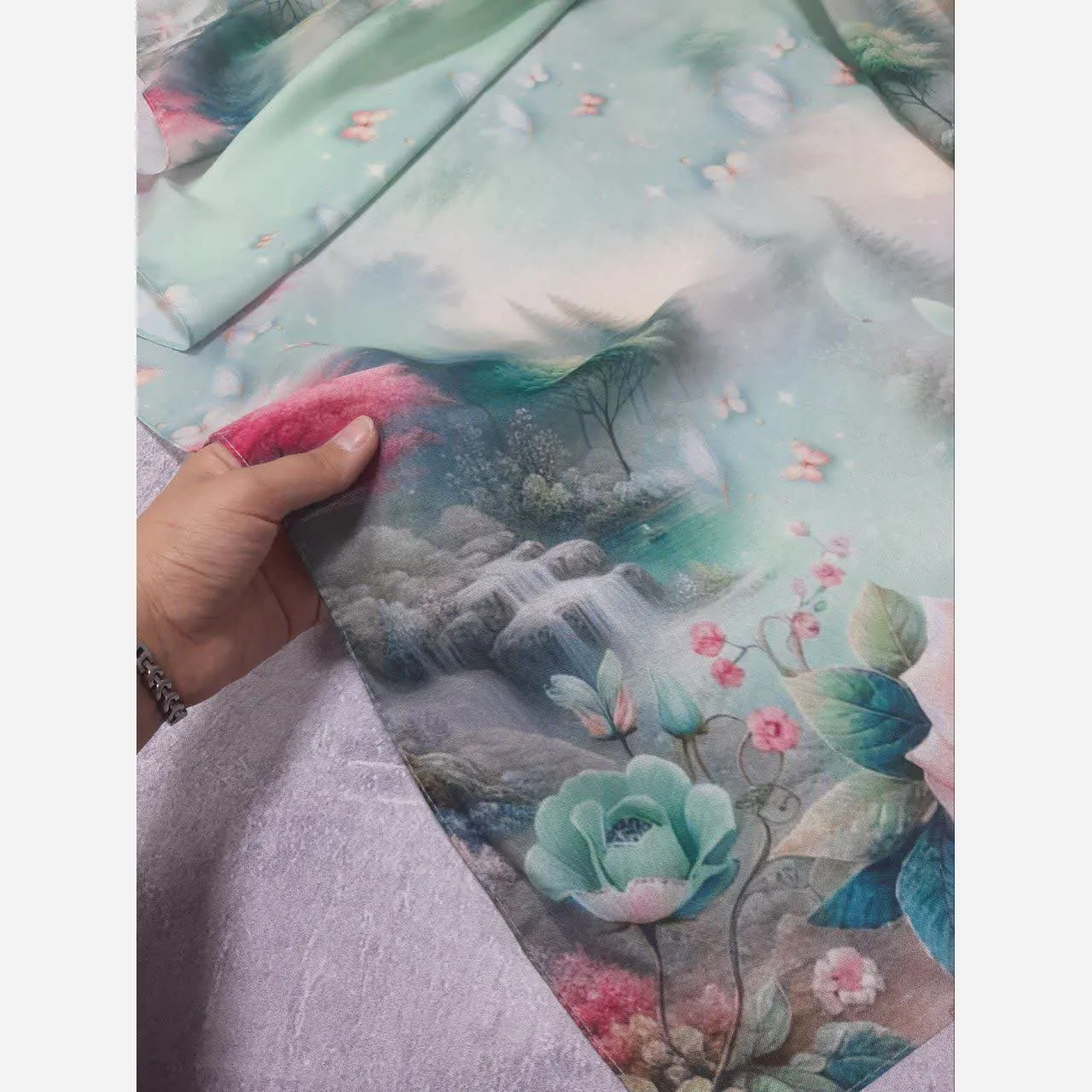 روسری طرح برکه زنانه، با طراحی منحصر به فرد و الهام گرفته از زیبایی طبیعت، انتخابی ایدهآل برای افزودن جلوهای رویایی به استایل شماست. این روسری با جزئیات دقیق و طرح گل و پروانه، تجربهای بصری دلنشین را ارائه میدهد که هر بار تماشای آن، حس تازهای را به شما منتقل میکند.