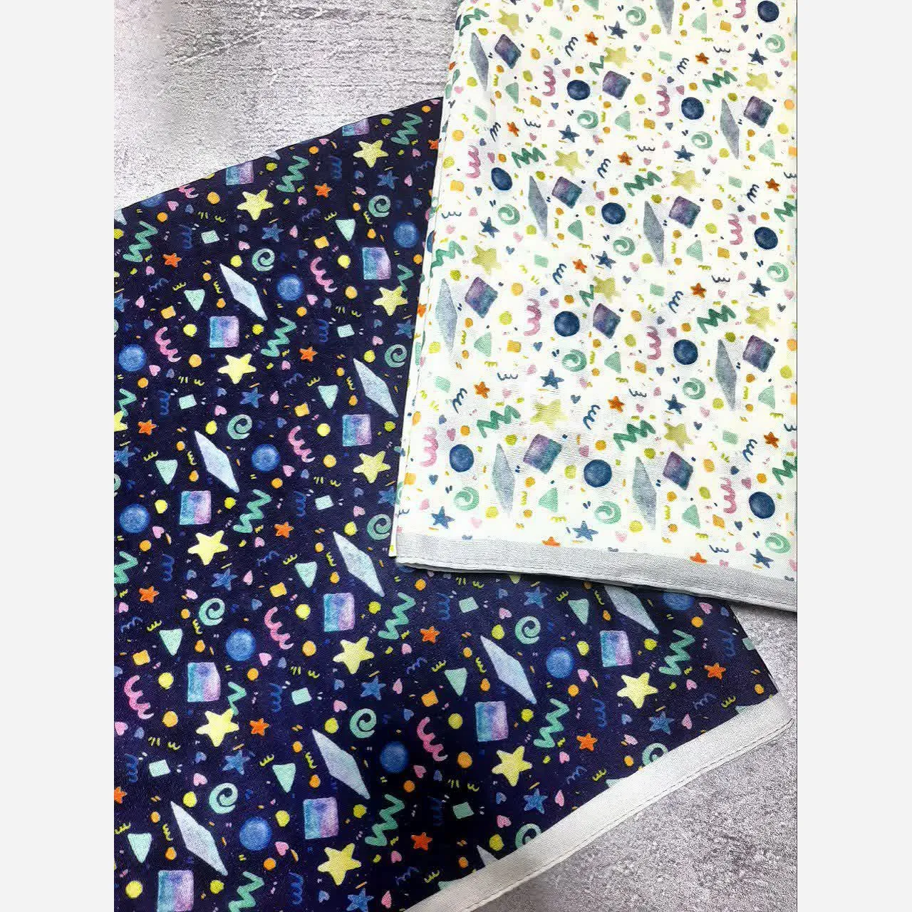 روسری زنانه طرح دار سرمه ای با اشکال هندسی ریز مناسب استفاده روزمره و مهمانی