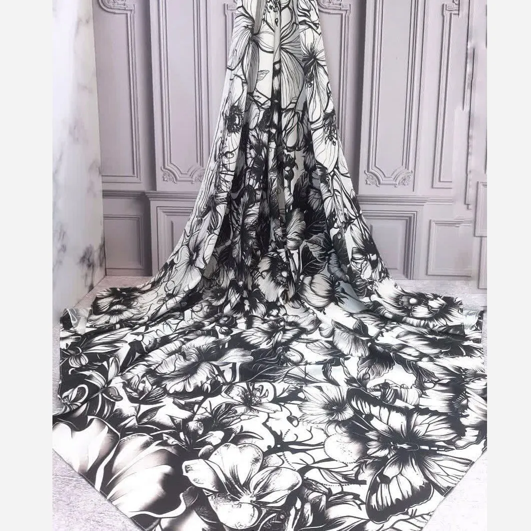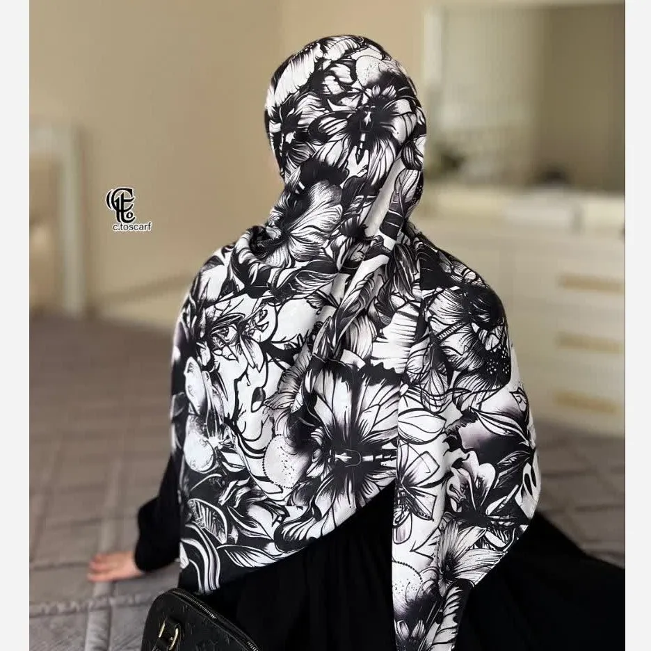 این شال و روسری با طرحی منحصر به فرد از گل و پروانه، جلوهای خاص و چشمنواز به استایل شما میبخشد. ترکیب رنگ سفید و مشکی، زیبایی کلاسیکی را به ارمغان میآورد که به راحتی با انواع لباسها هماهنگ میشود.