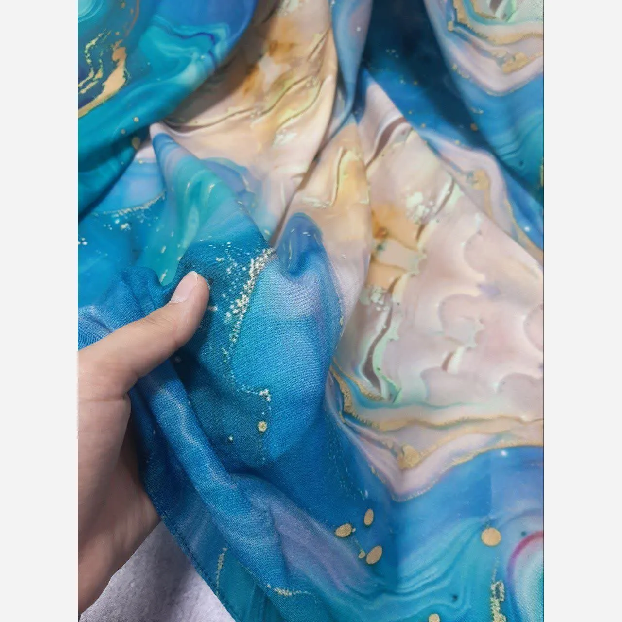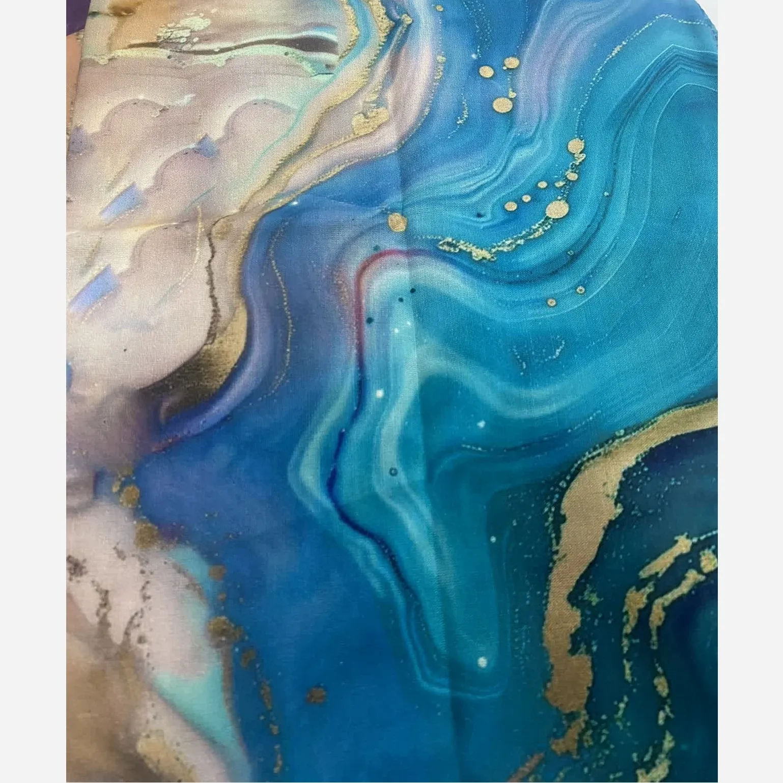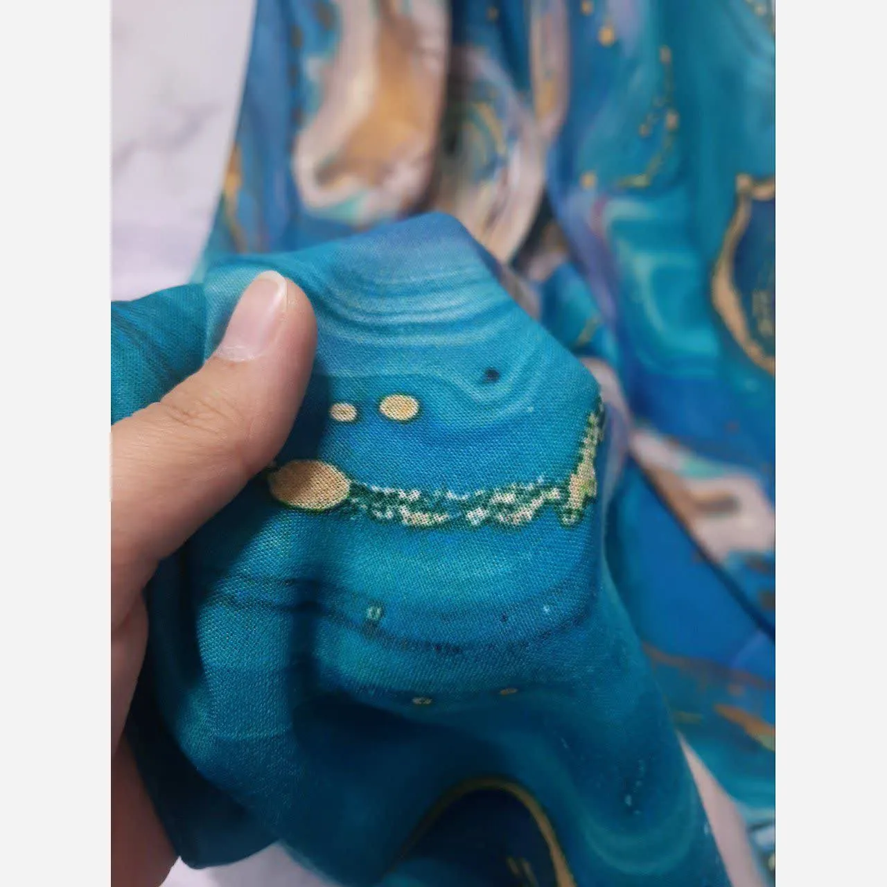روسری طرح اطلس دریایی قواره بزرگ دور دوخت مزونی شیک زنانه