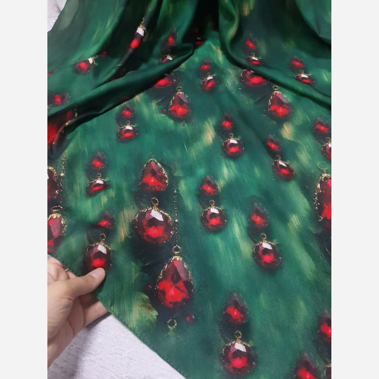این روسری ساتن با طرح یاقوت سبز، جلوهای از اصالت و زیبایی را به استایل شما میبخشد. زمینه روسری با طرح گلهای ریز ظریف تزئین شده و حاشیهای یکنواخت و زیبا، ظاهری چشمنواز به آن داده است. رنگبندی متنوع و هماهنگ این روسری، آن را به گزینهای ایدهآل برای ست کردن با انواع لباسها تبدیل کرده است. با خرید این روسری، میتوانید به راحتی استایل خود را تکمیل و منحصر به فرد کنید.