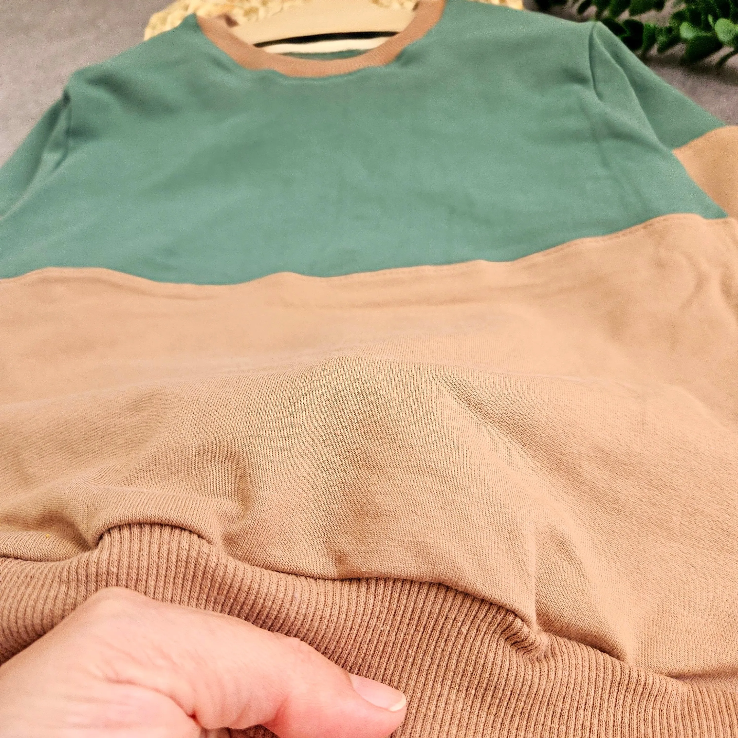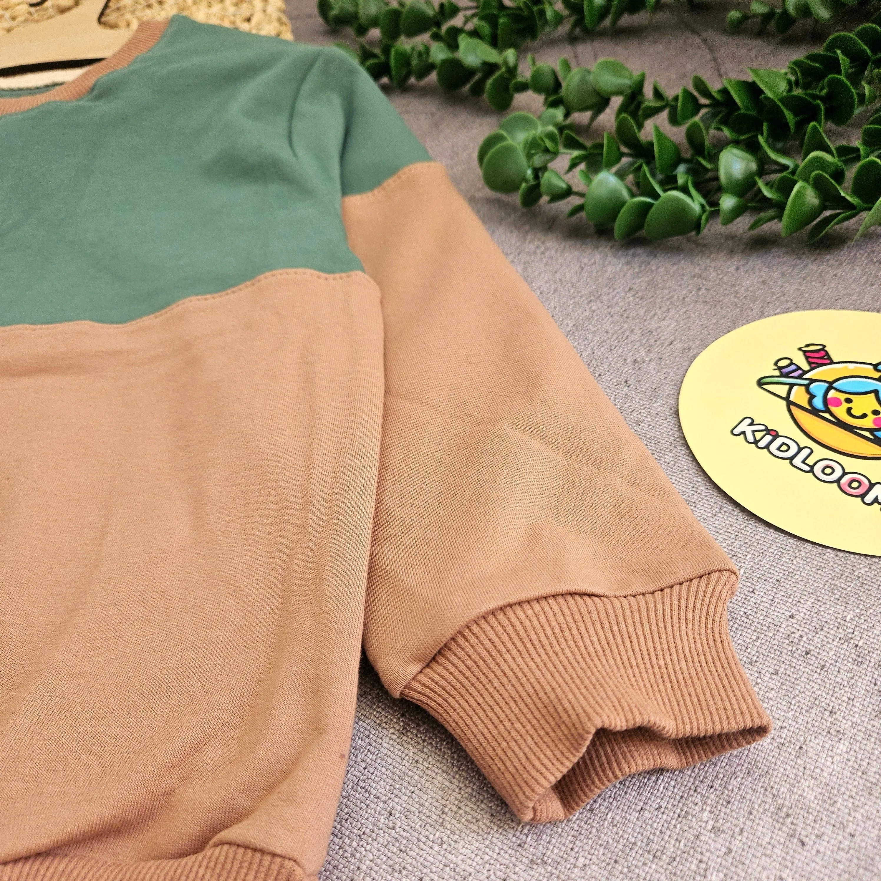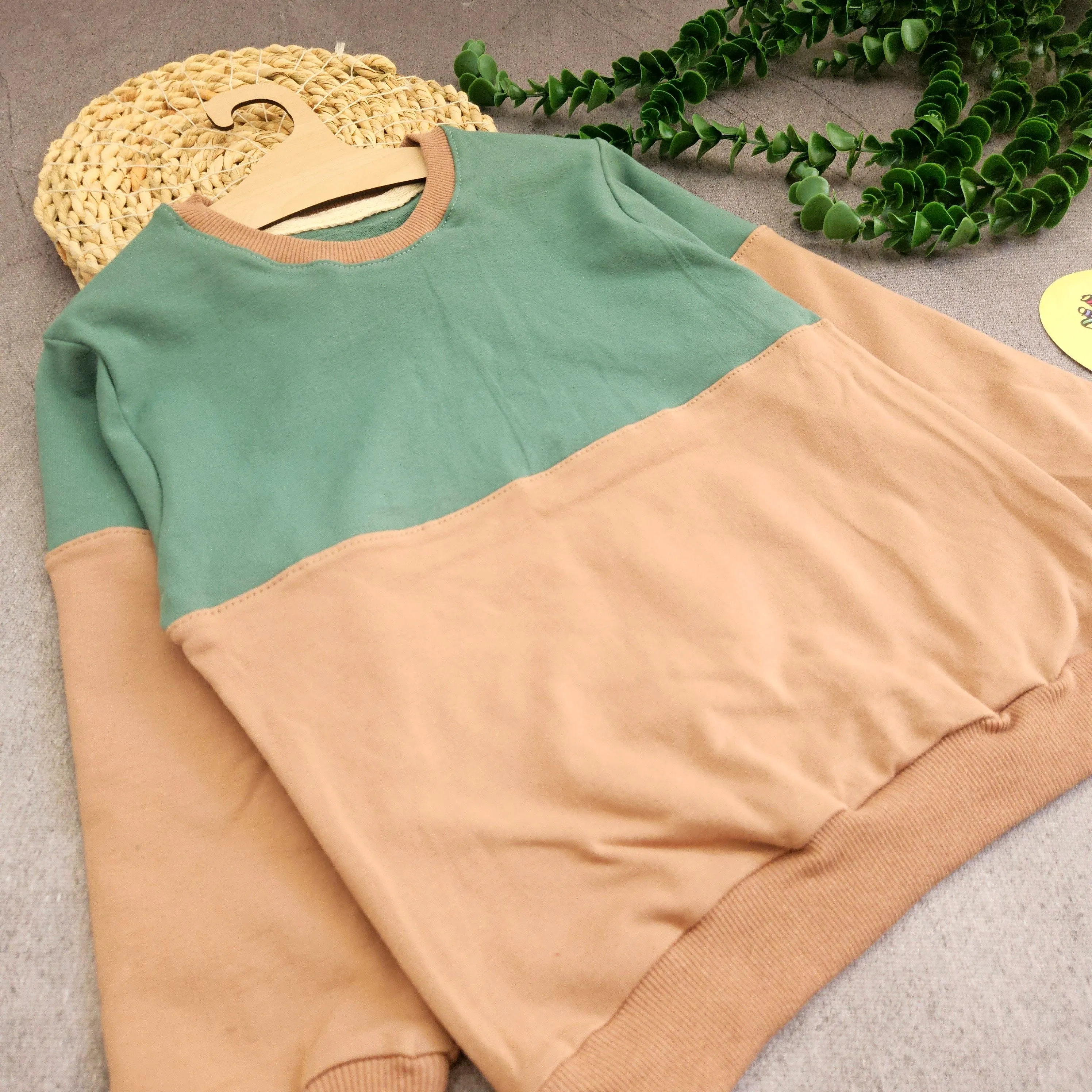 بلوز دورس پنبه لاکرا بچگانه طرح دو رنگ سبز و قهوهای مناسب 1 تا 10 سال