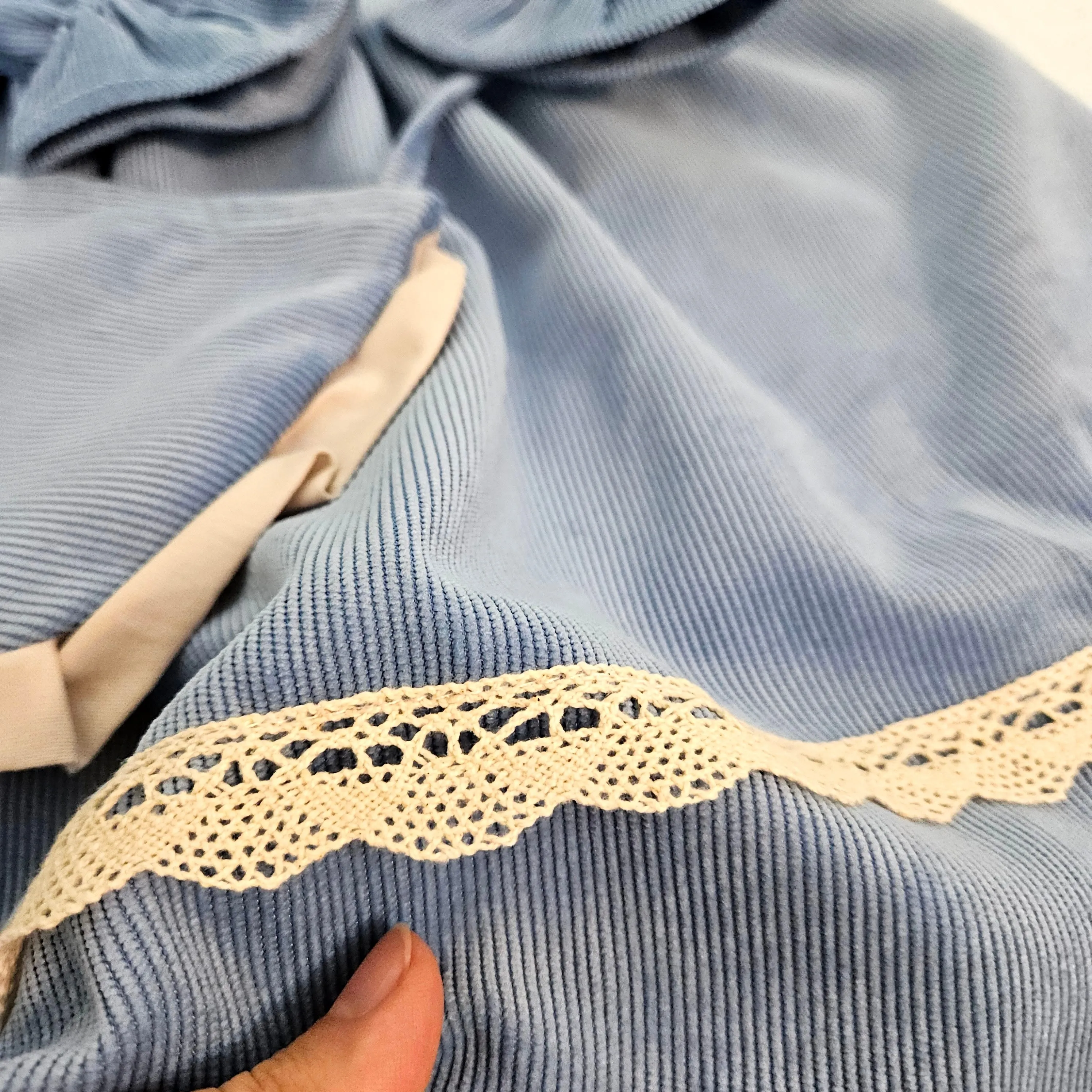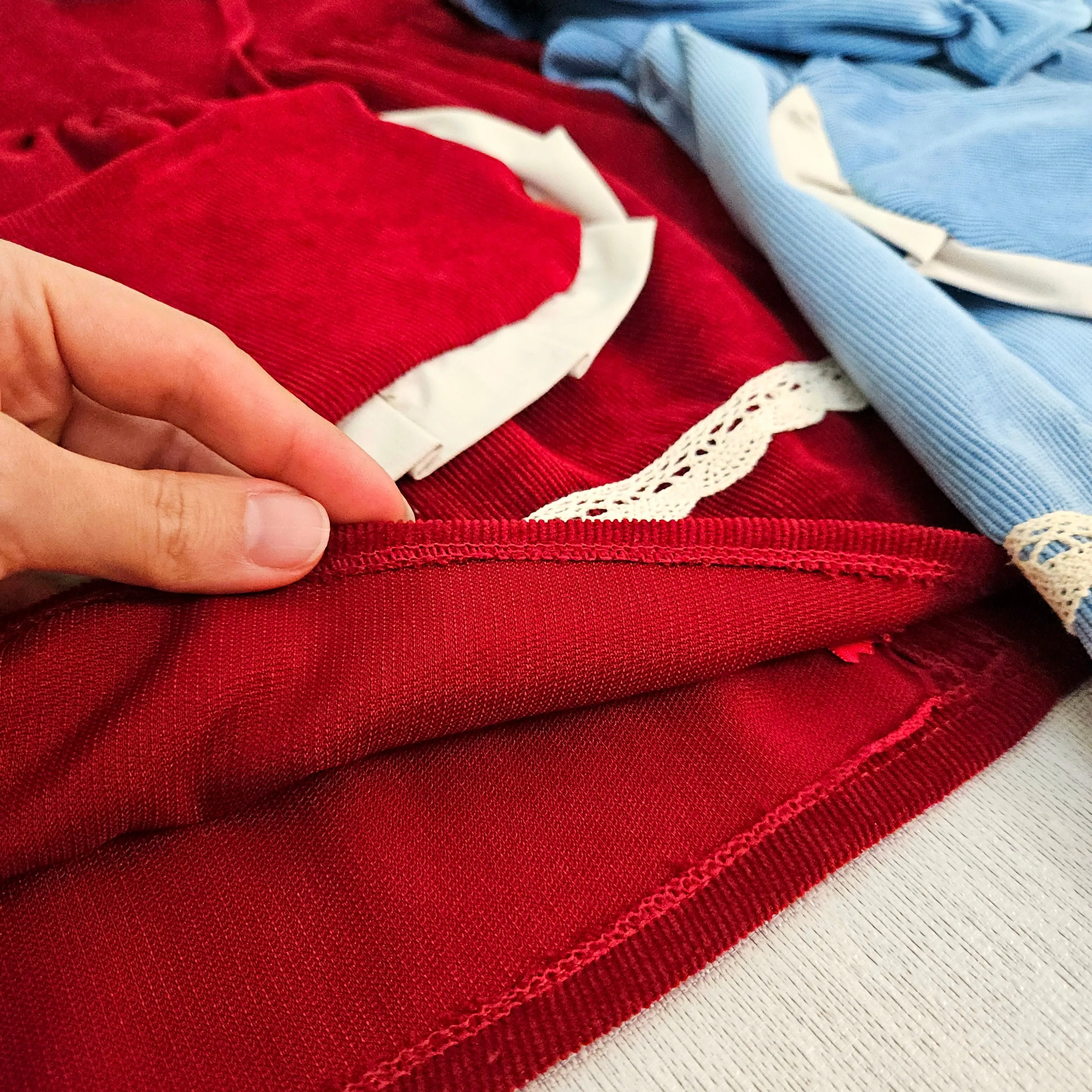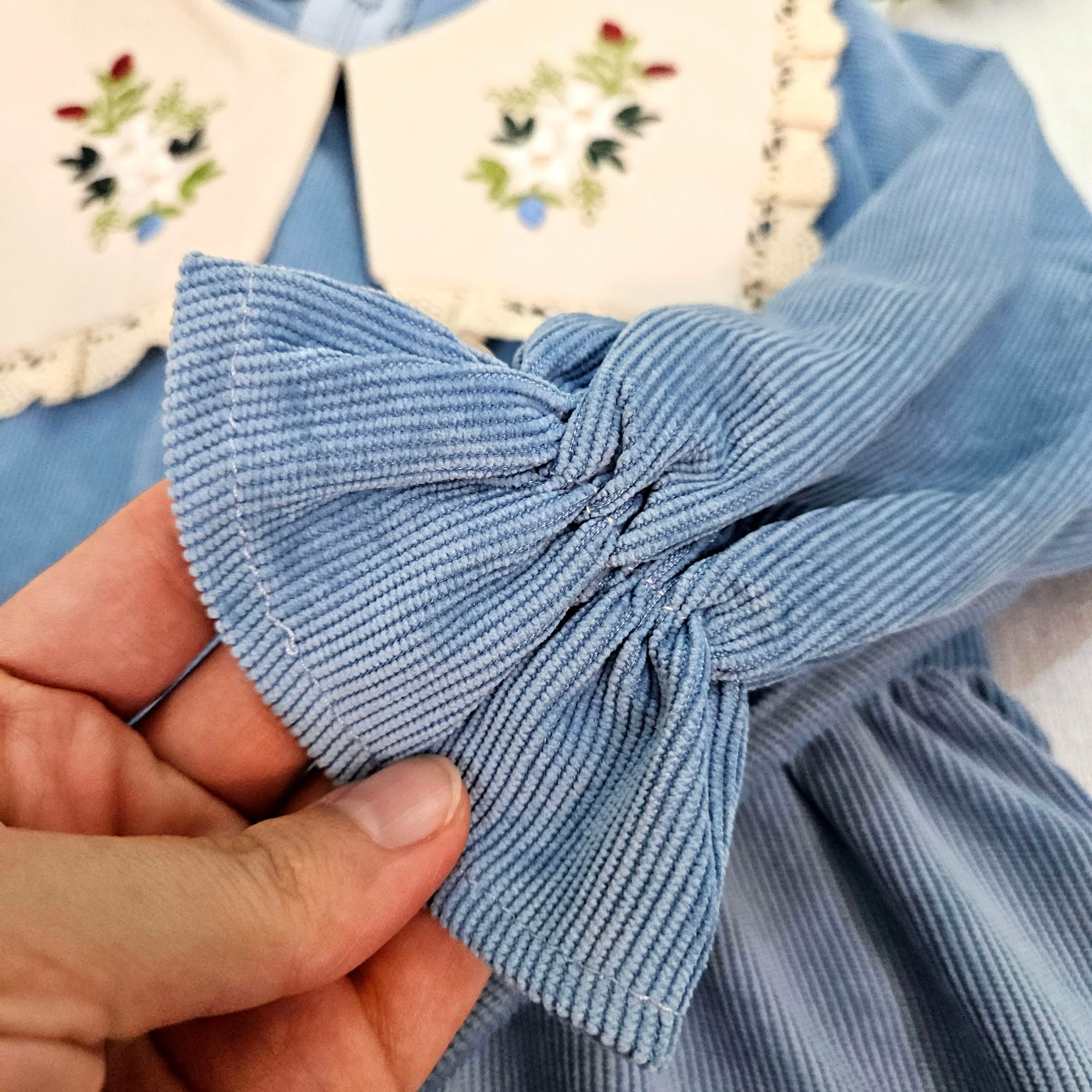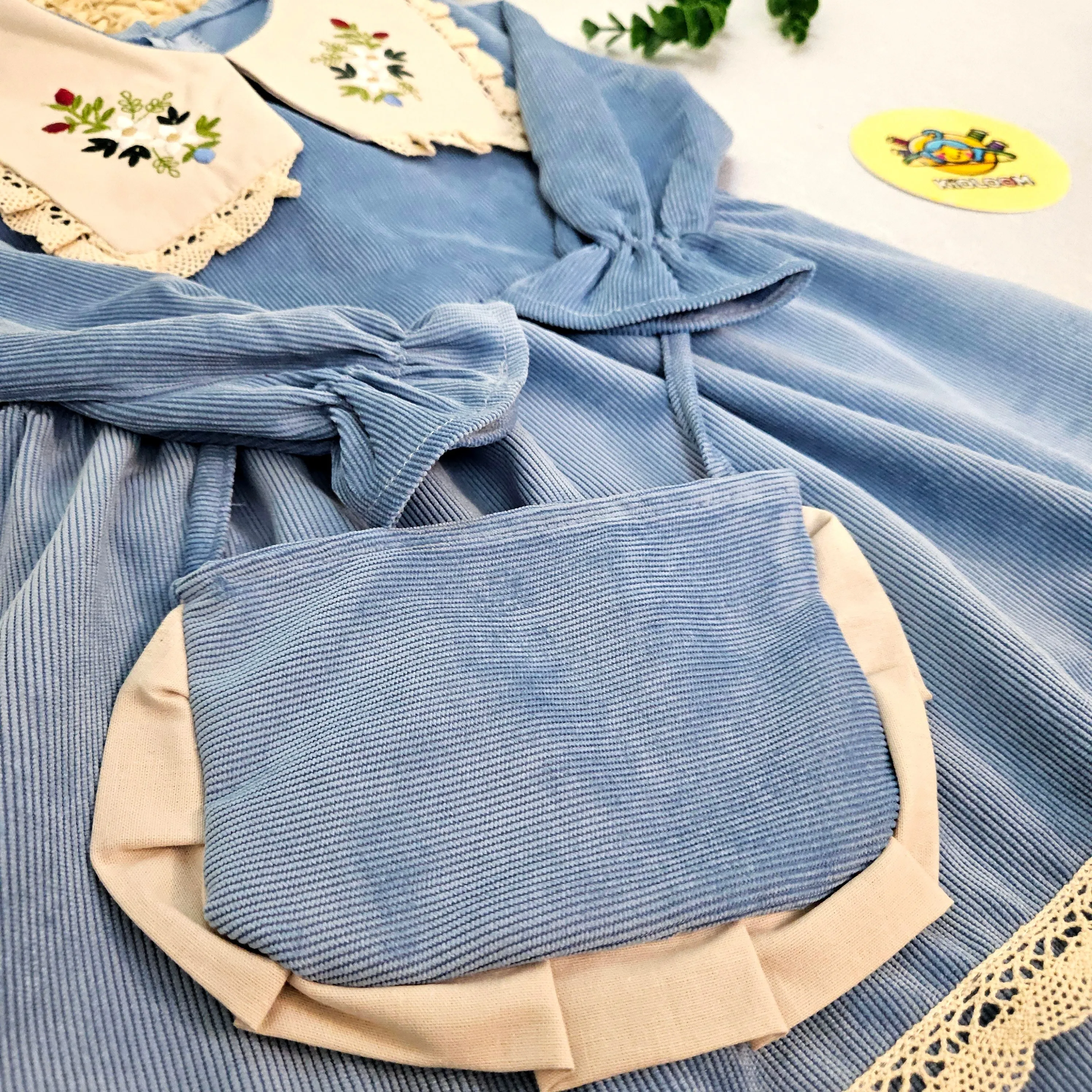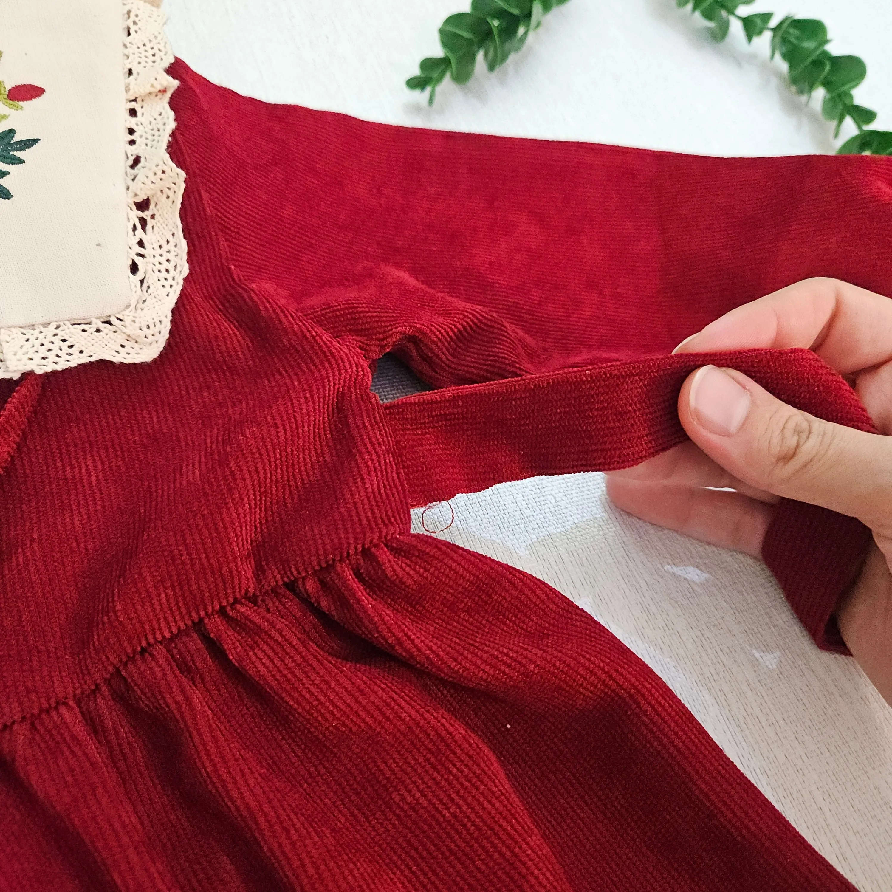 پیراهن مخمل کبریتی دخترانه یقه گلدوزی شده با کیف ست