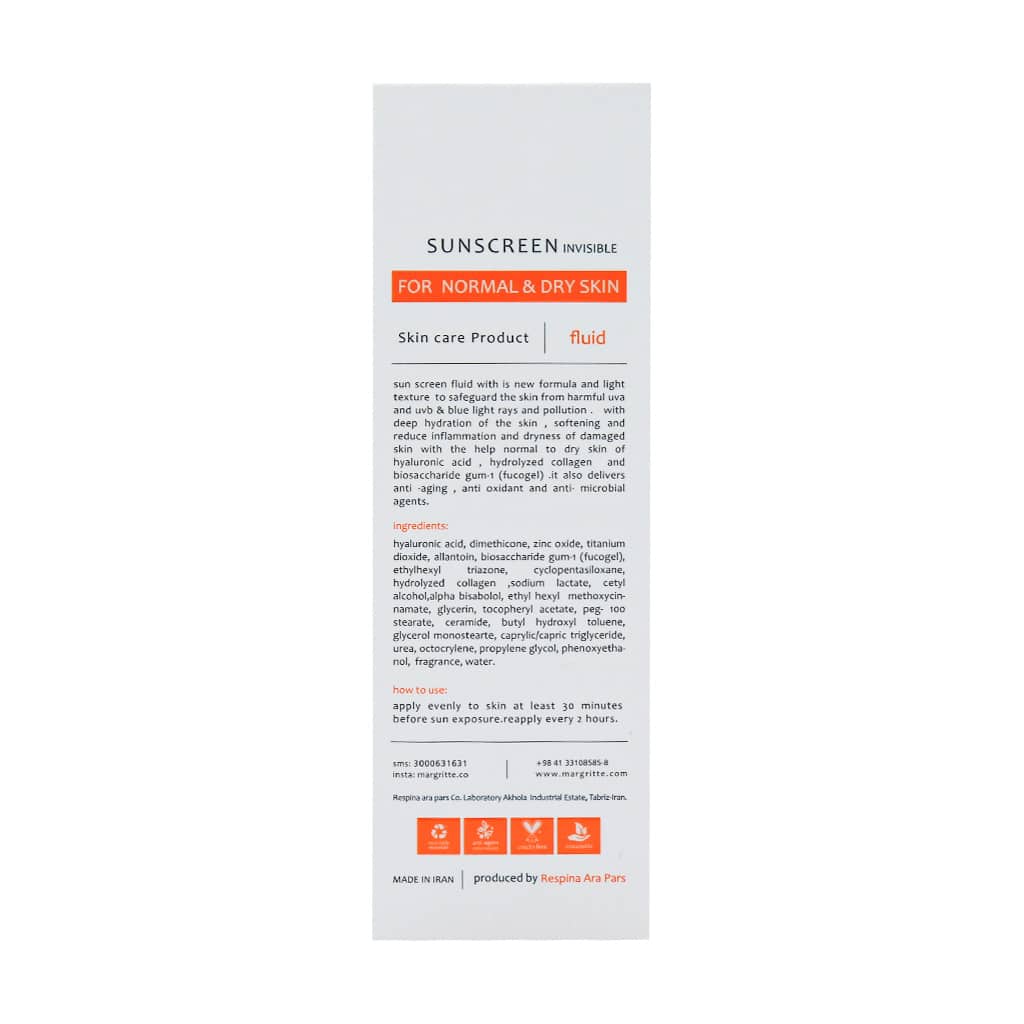 فلوئید ضدآفتاب مارگریت SPF50+ مخصوص پوست خشک | سبک، مرطوبکننده و محافظ در برابر آفتاب