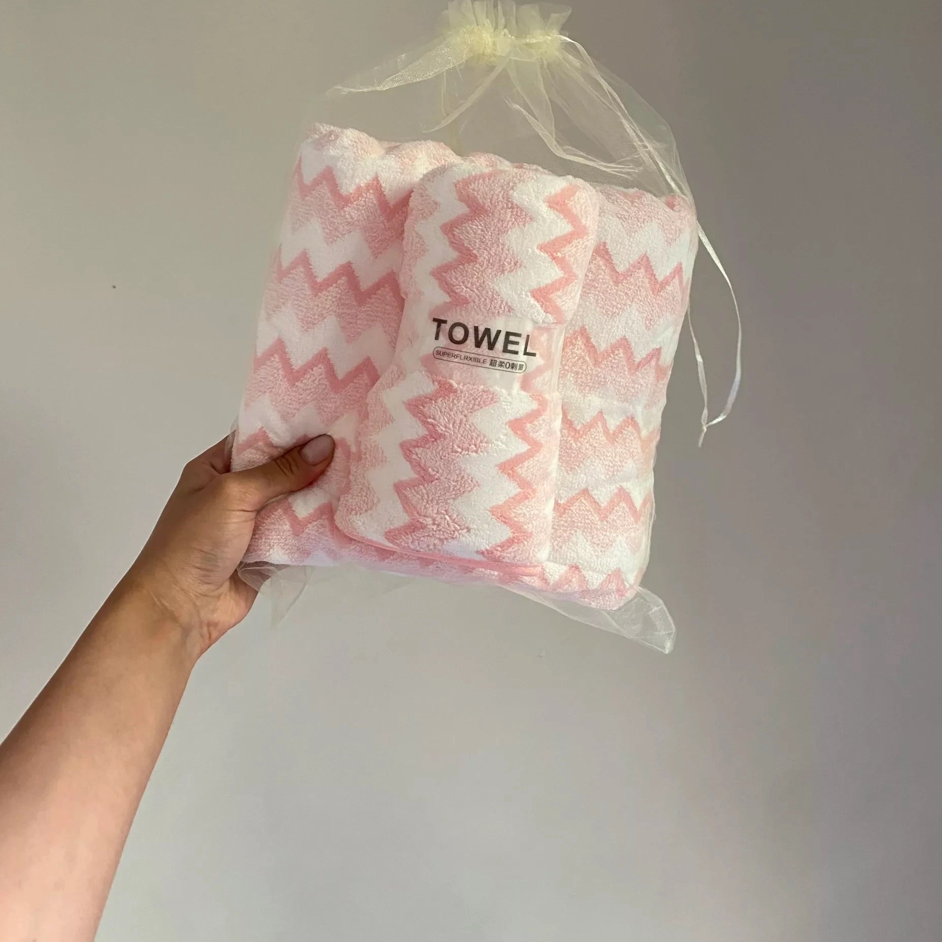 ست حوله حمام و صورت طرح زیگزاگی نرم و آبگیر