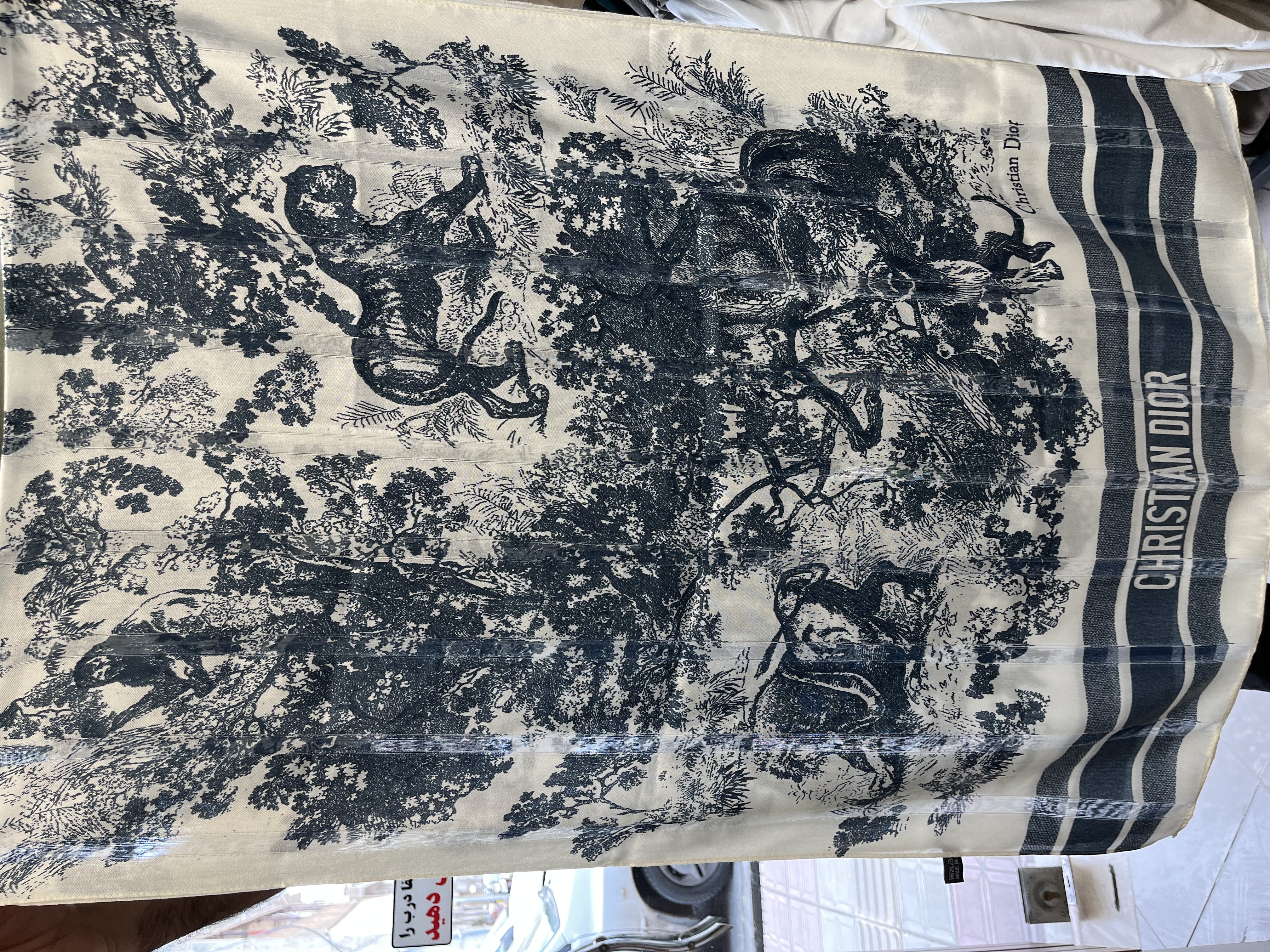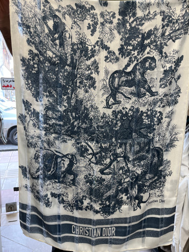 شال توییل طرح دار وارداتی لبه کار دست دوز