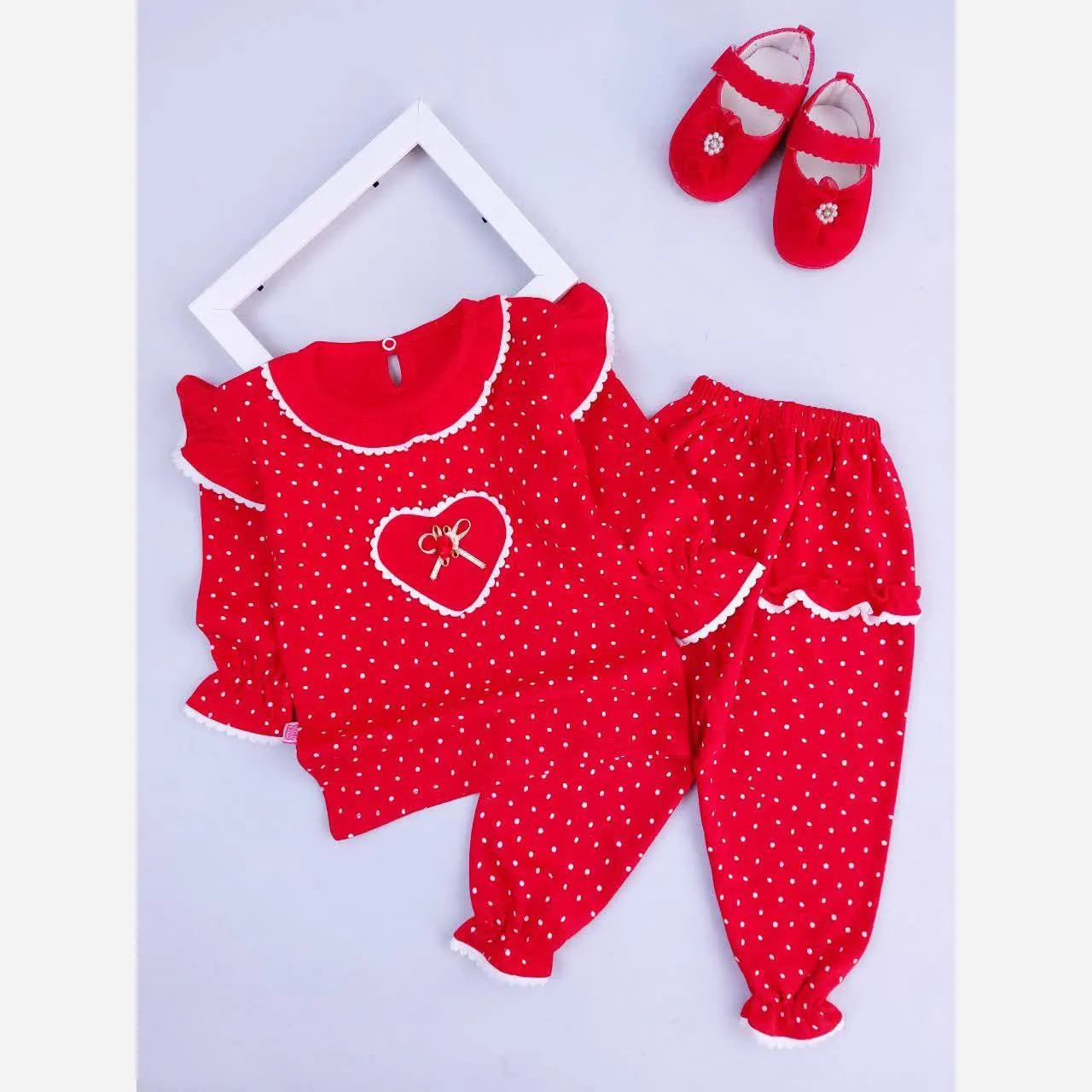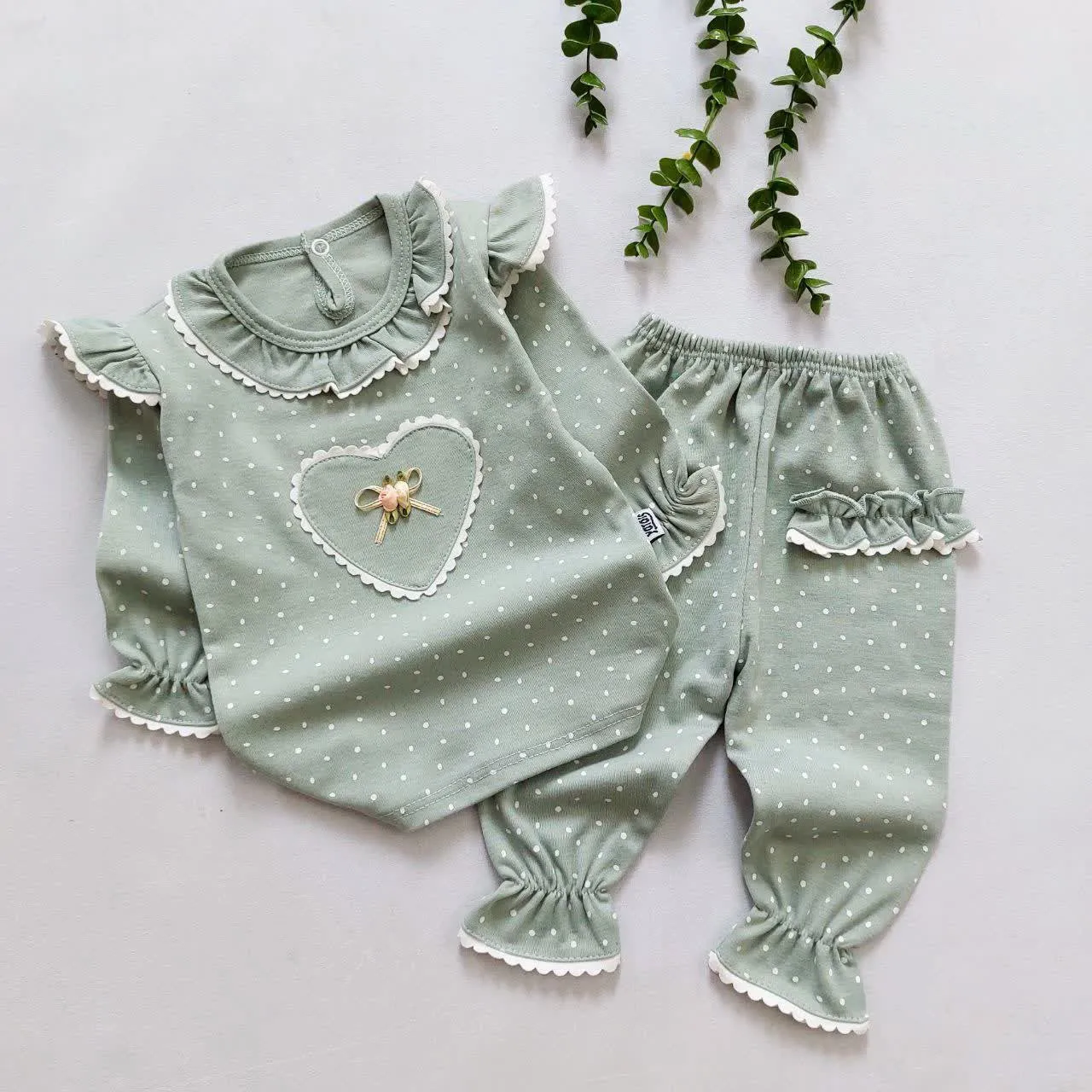 بلوز شلوار خالدار دخترانه طرح قلب | لباس راحتی نوزاد و کودک | جنس پنبه اعلا