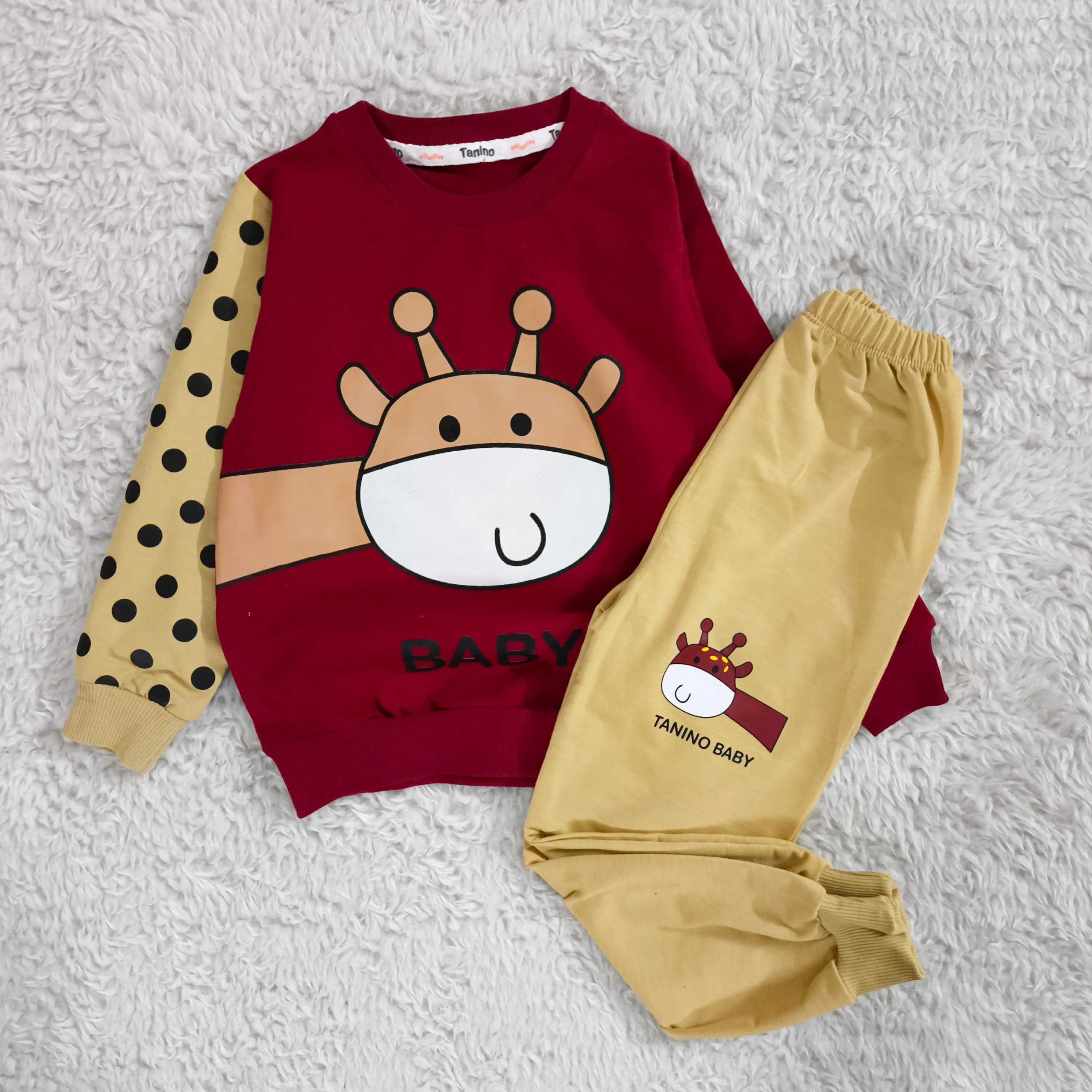 بلوز شلوار پسرانه طرح زرافه خالدار | لباس راحتی بچگانه پنبه دورس